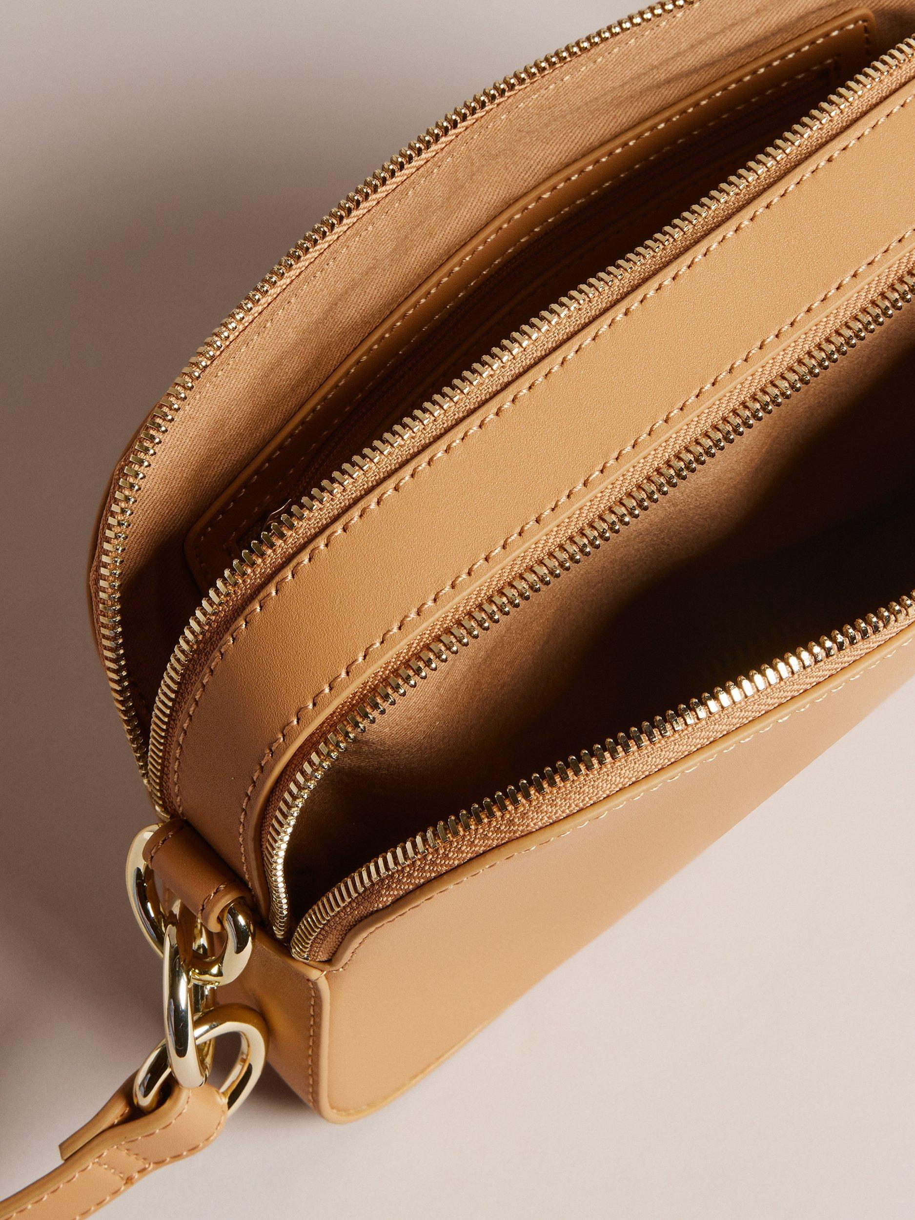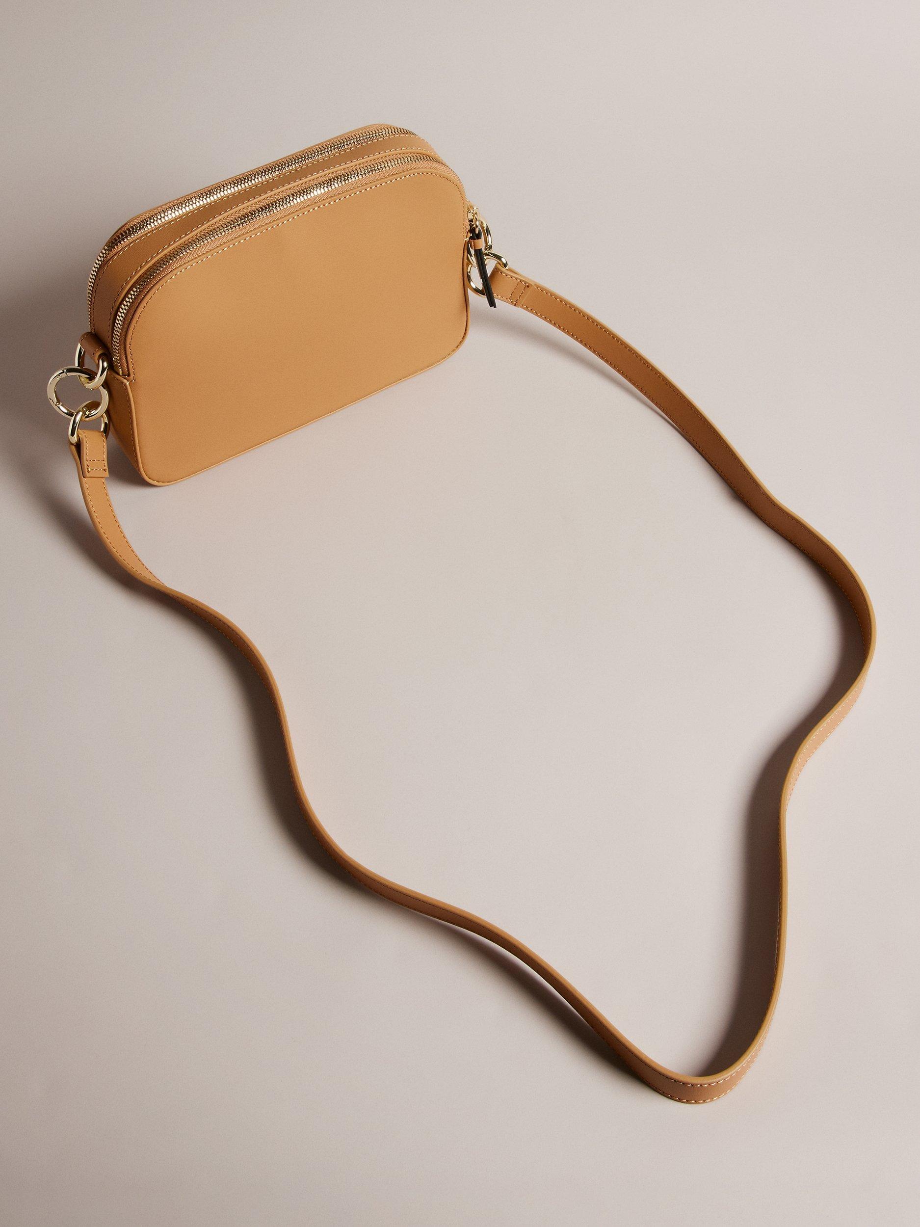 From Ted Baker, this leather camera bag comes with a branded webbing strap and is completed with two zipped compartments.