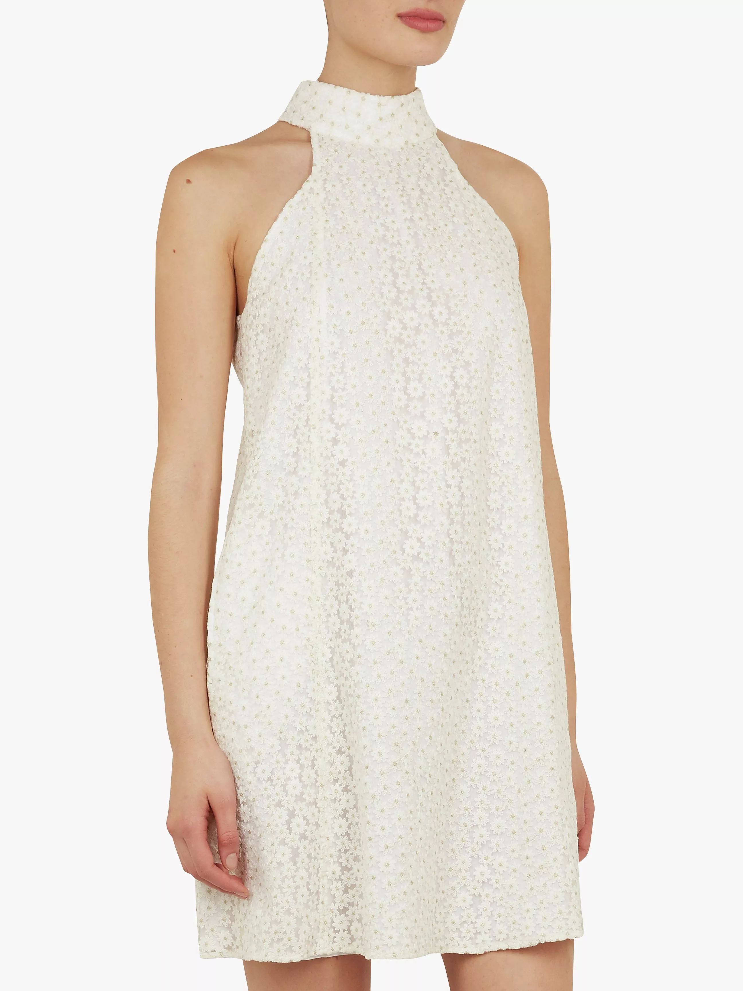 Adorned with delicate lace daisies throughout, this Daysil dress from Ted Baker is a great option if you're looking to add a flourish of floral to your wardrobe. Featuring a halterneck and back zip for ease of wear, this piece pairs well with T-strap heels that elongate your figure and further emphasise the dress's overall profile.