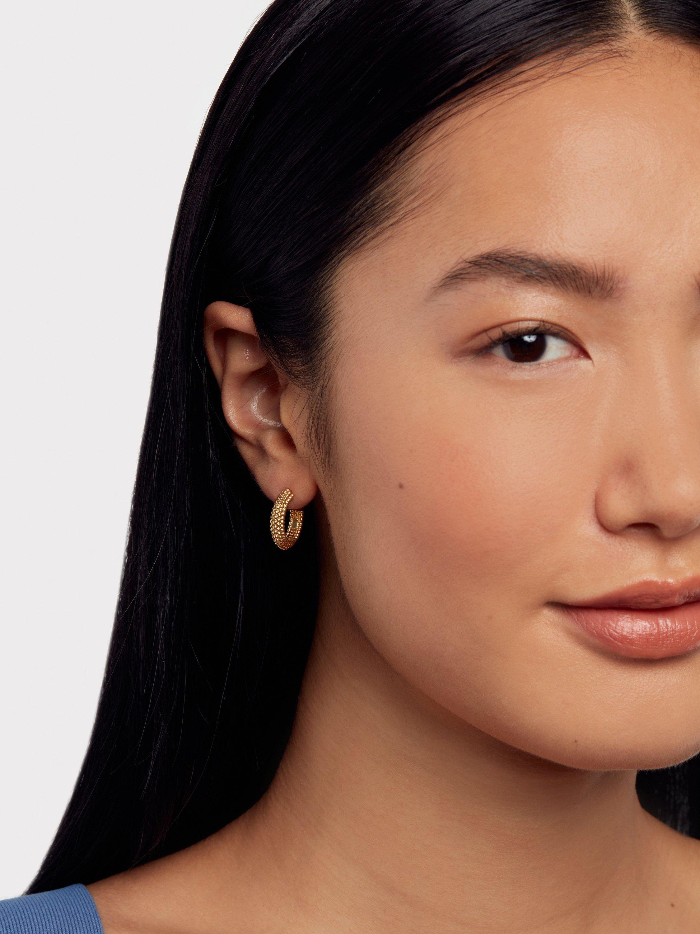 A contemporary take on a classic, try the Ted Baker Dotetta Hoop Earrings. A bespoke textured finish that reflects light, creating depth and shine, finished with gold-tone plating.