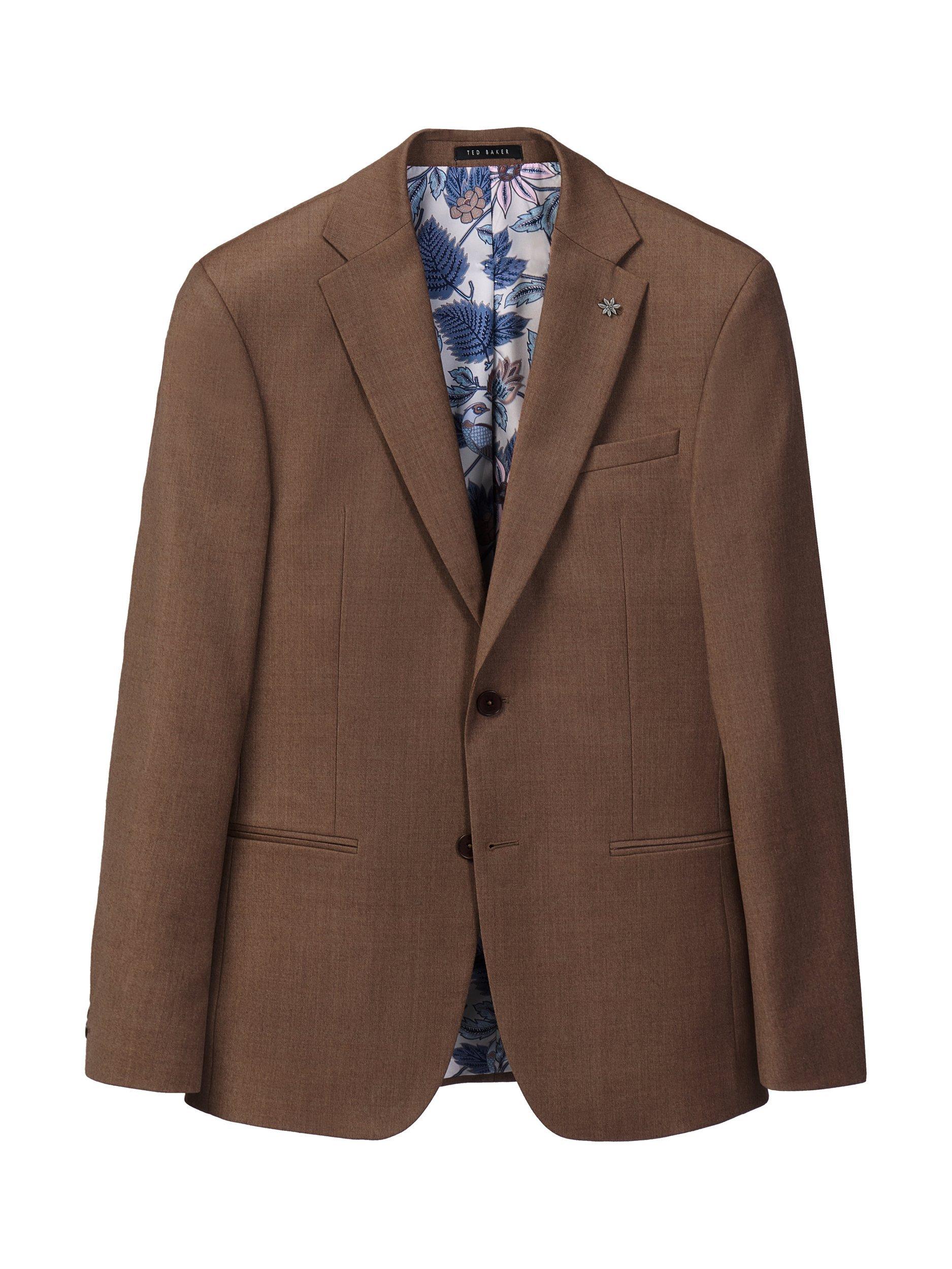 The Eliot sflannel suit jacket features a rich wool-blend with a hint of stretch for natural warmth and comfort. Soft touch flannel in a seasonal shade delivers a flattering drape across the body. Cut to a contemporary slim fit with an exclusive Ted Baker recycled bird print lining and premium curved facing, pair with the matching trousers for business meetings or a winter wedding. Finished with the signature flower lapel pin, the beautiful bird print lining also doubles up as a pocket square.
