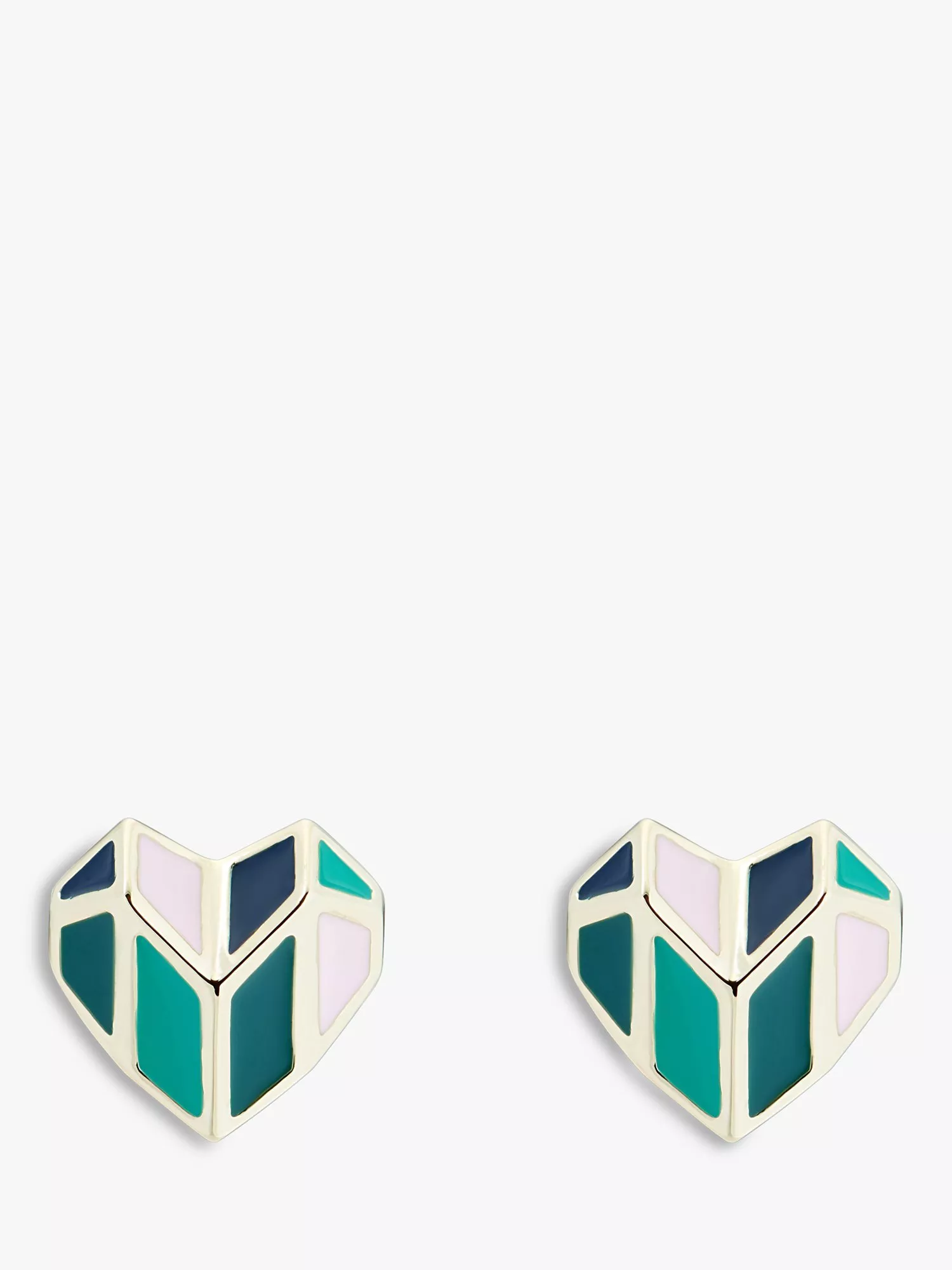 Ted BakerEnamel Heart Textured Stud Earrings, Pale Gold/Multi