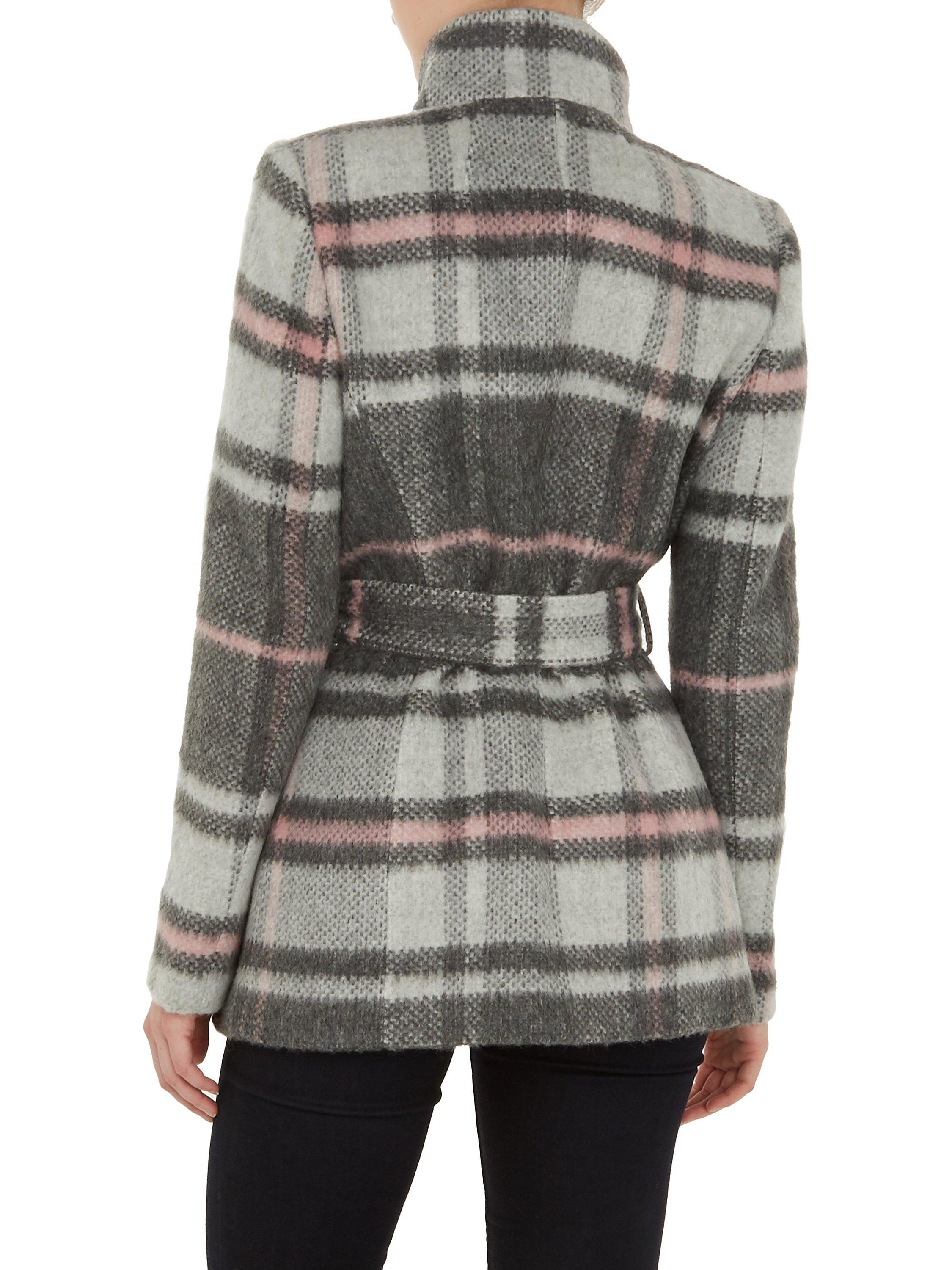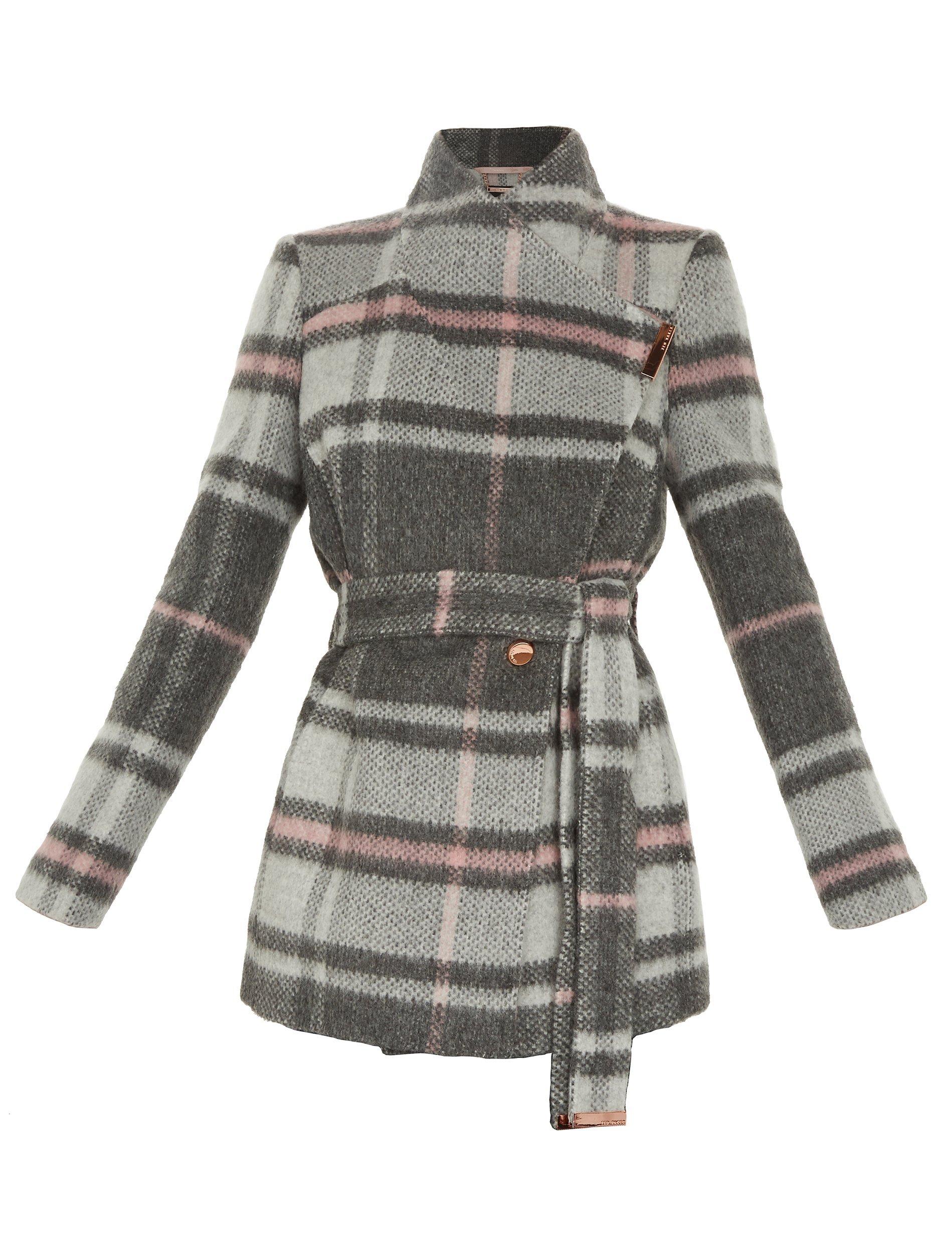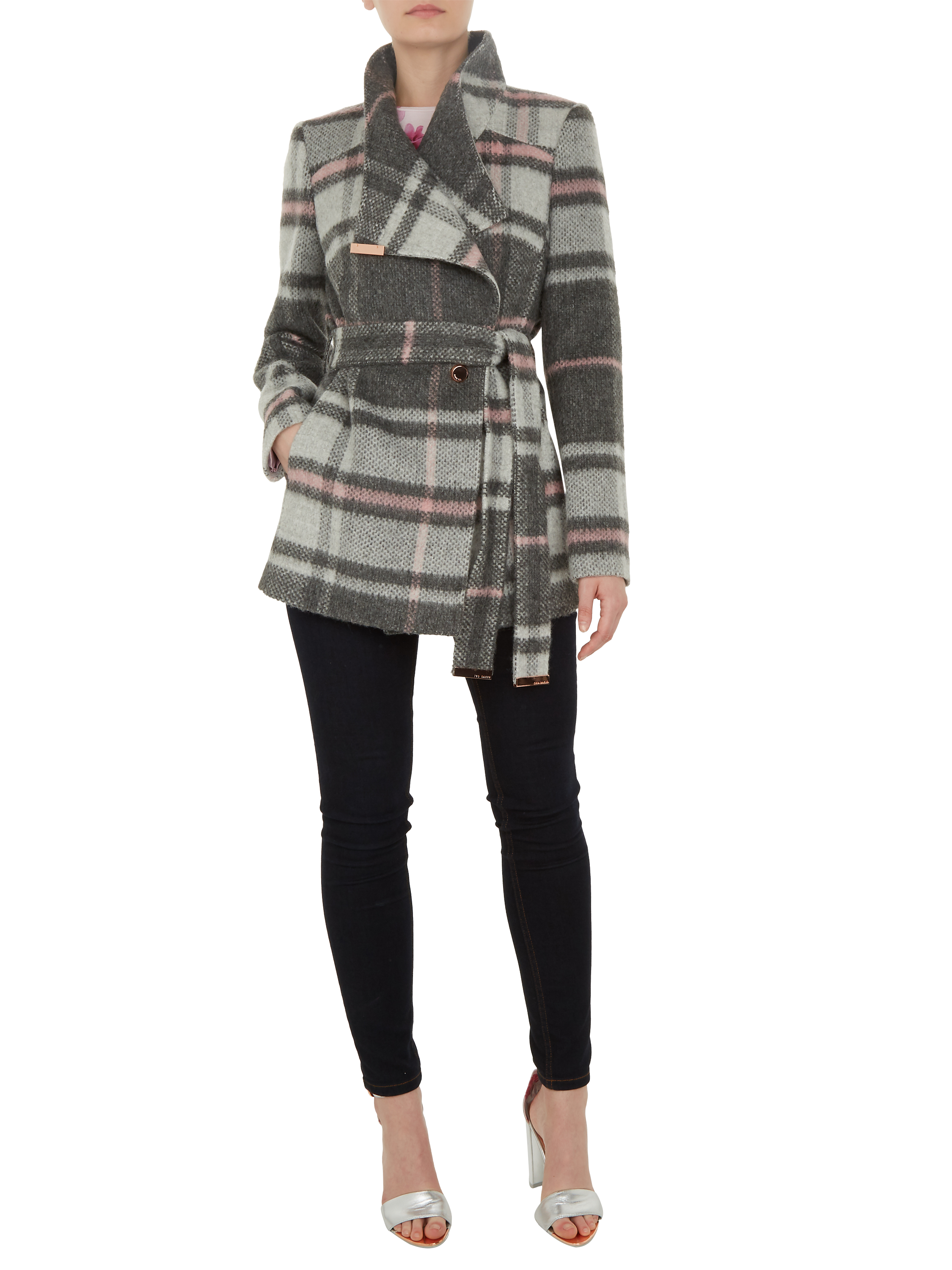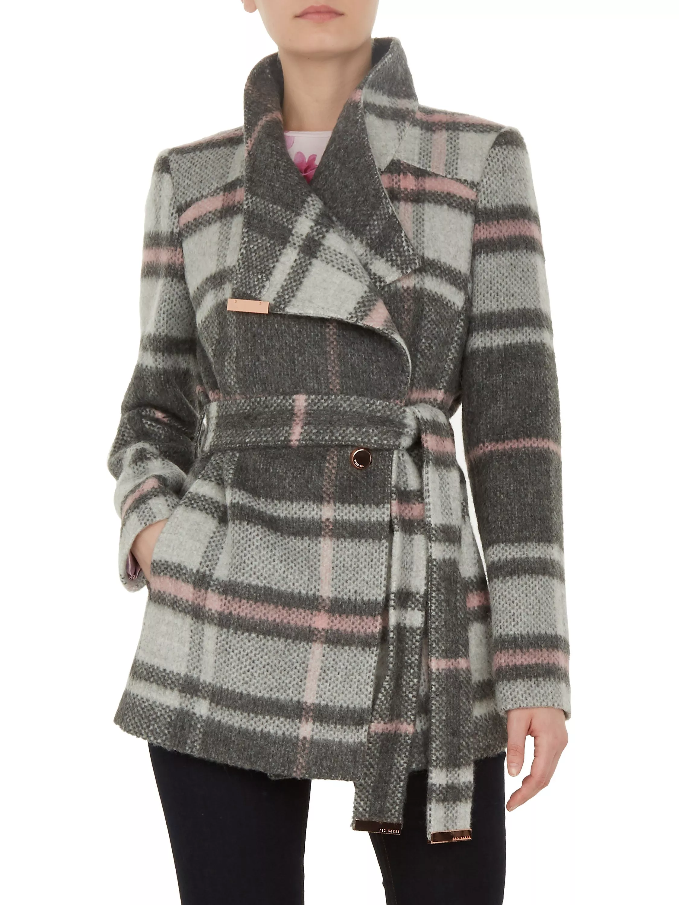 Arrive in style in this Fredde Short Check Wool Wrap Coat from Ted Baker.