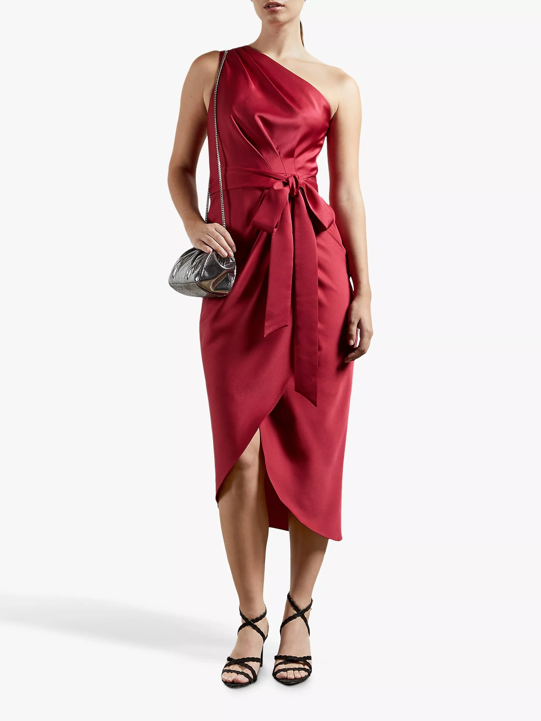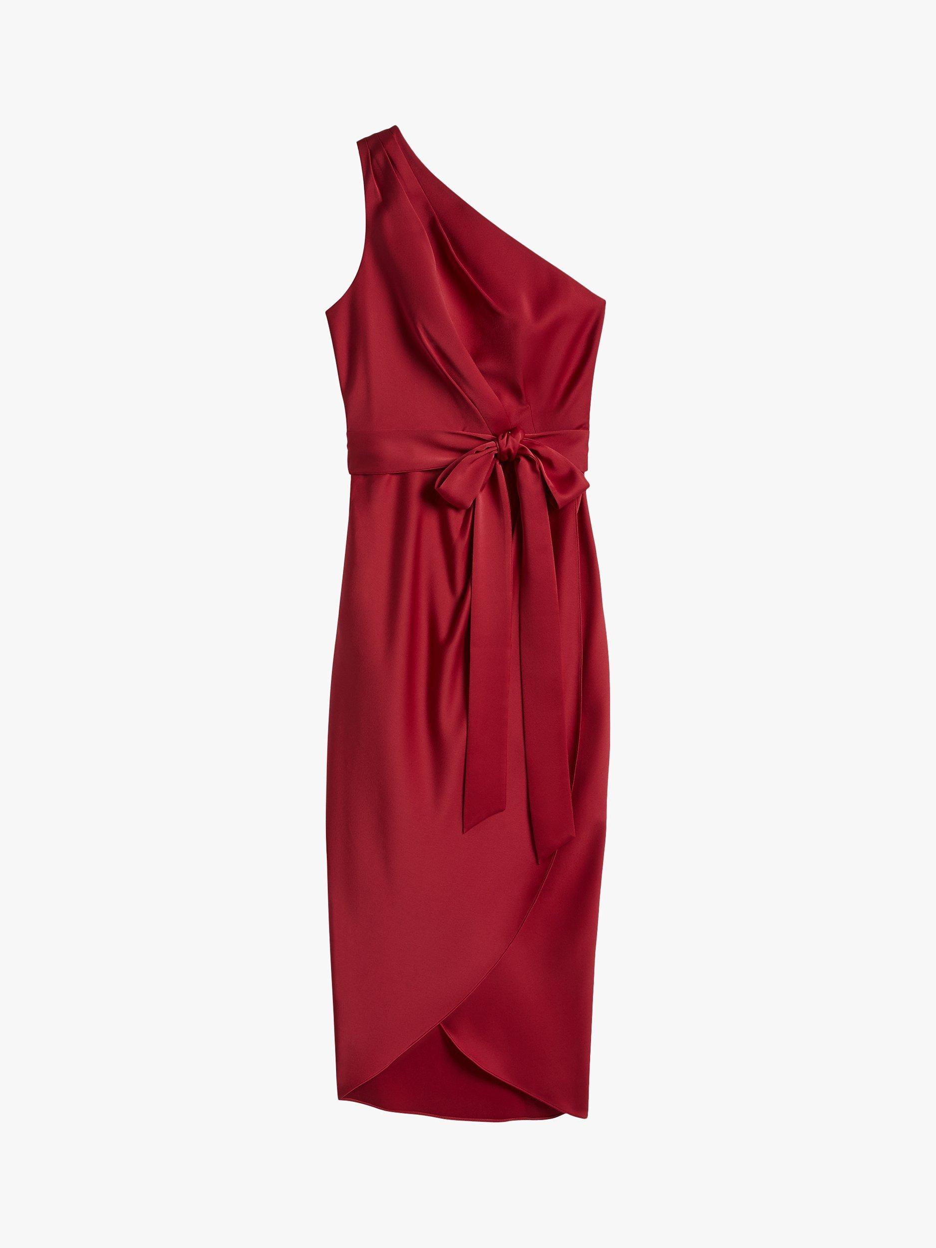 Perfect for weddings, the races and summertime occasions, this Ted Baker Gabie dress is designed in a flattering wrap-over pencil shape that contours your body, defined by the tie waist and Roman-inspired one-shoulder detail. Playful but sophisticated, zip it up through the side and pair it with barely-there heels.