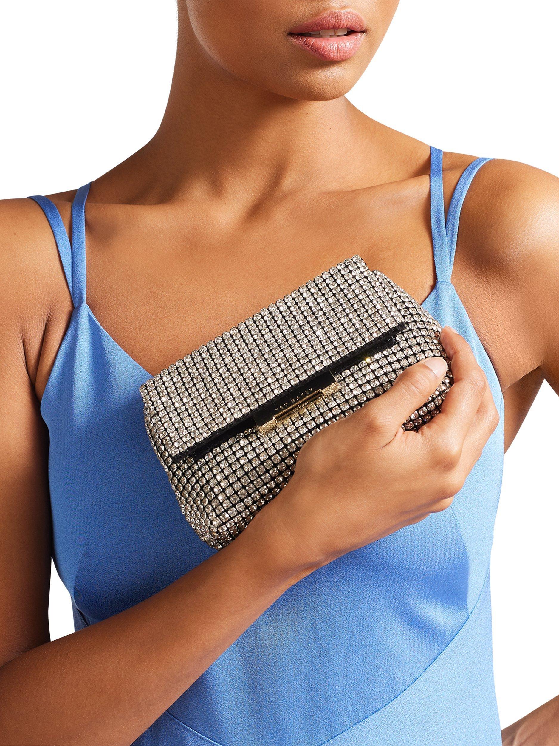 From Ted Baker, this cross-body bag features all-over crystal embellishment. Complete with a chain shoulder strap, clasp fastening and a useful internal slip pocket.