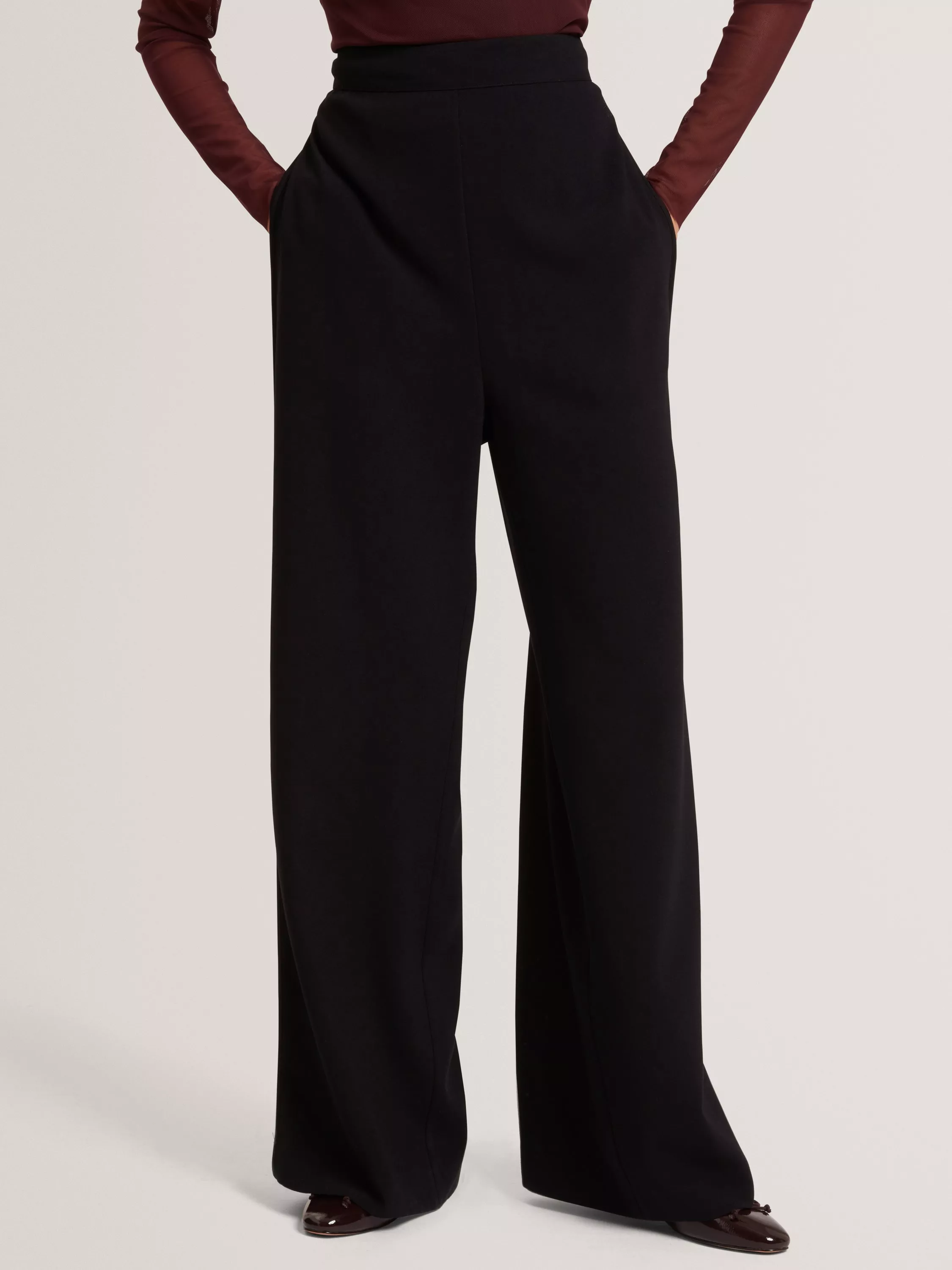 Confidence starts in the stance with this pair of wide-leg trousers by Ted Baker. They feature a mid rise with an elasticated waist, piping details and a regular length.