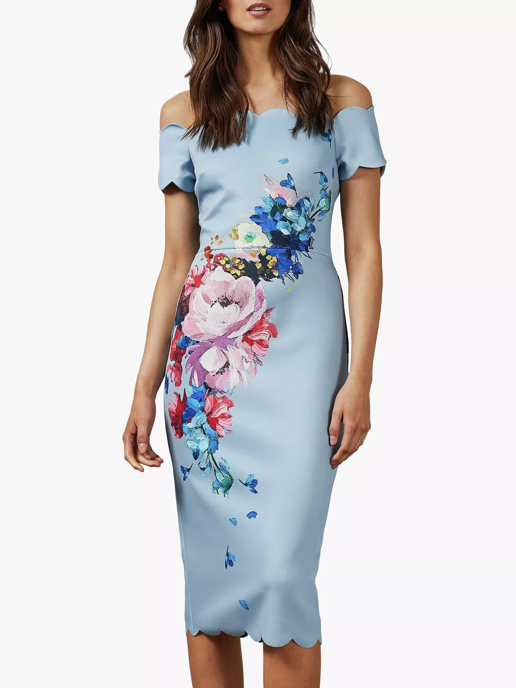 Inject a floral flourish into your wardrobe with this Hailly dress from Ted Baker. Designed with scalloped hem details for a distinct edge, this dress is fitted towards the waist for a form-flattering silhouette.