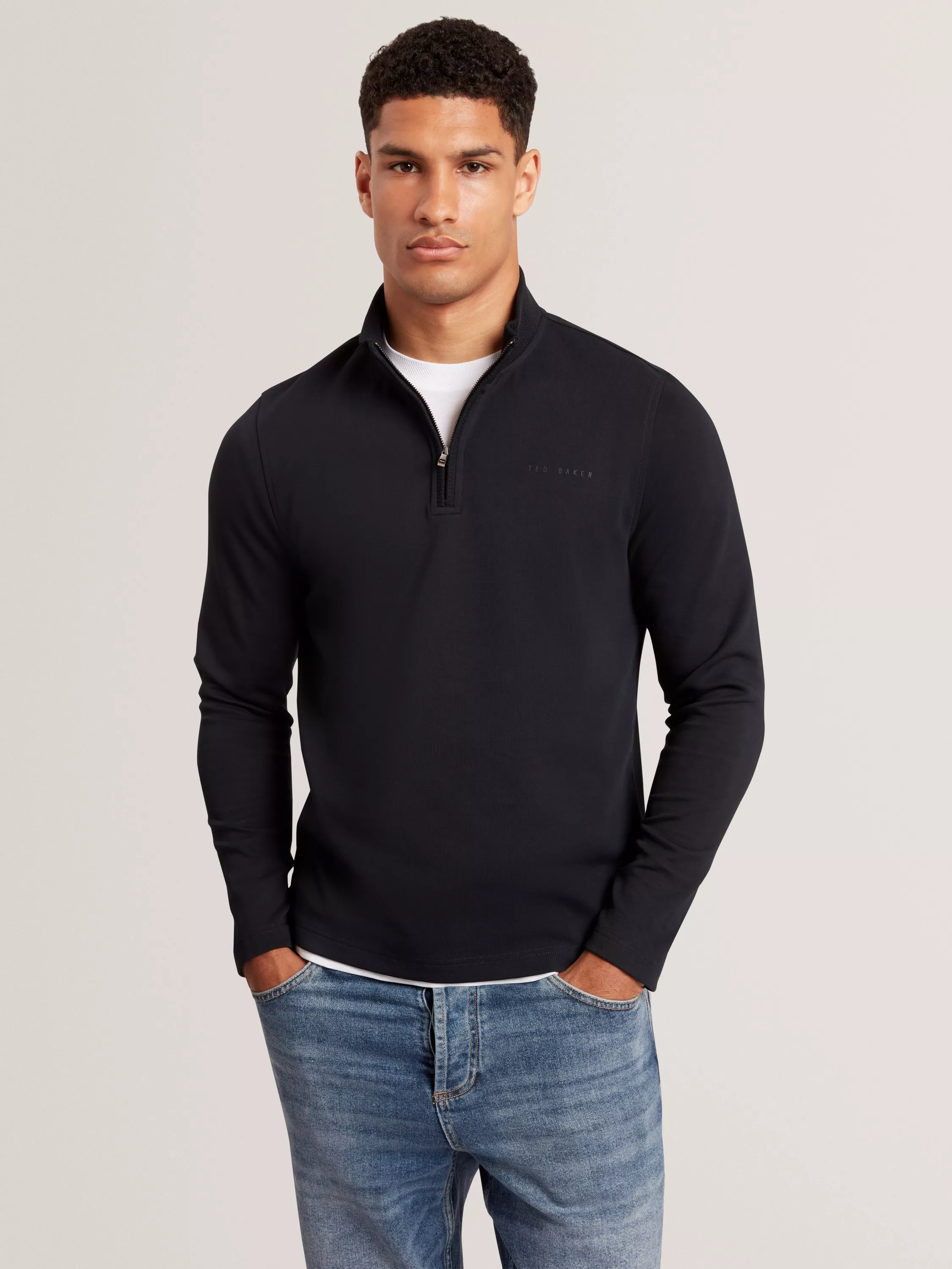 A versatile half-zip jumper cut from a stretch-friendly, cotton-blend fabric and finished with Ted Baker's logo at the chest.