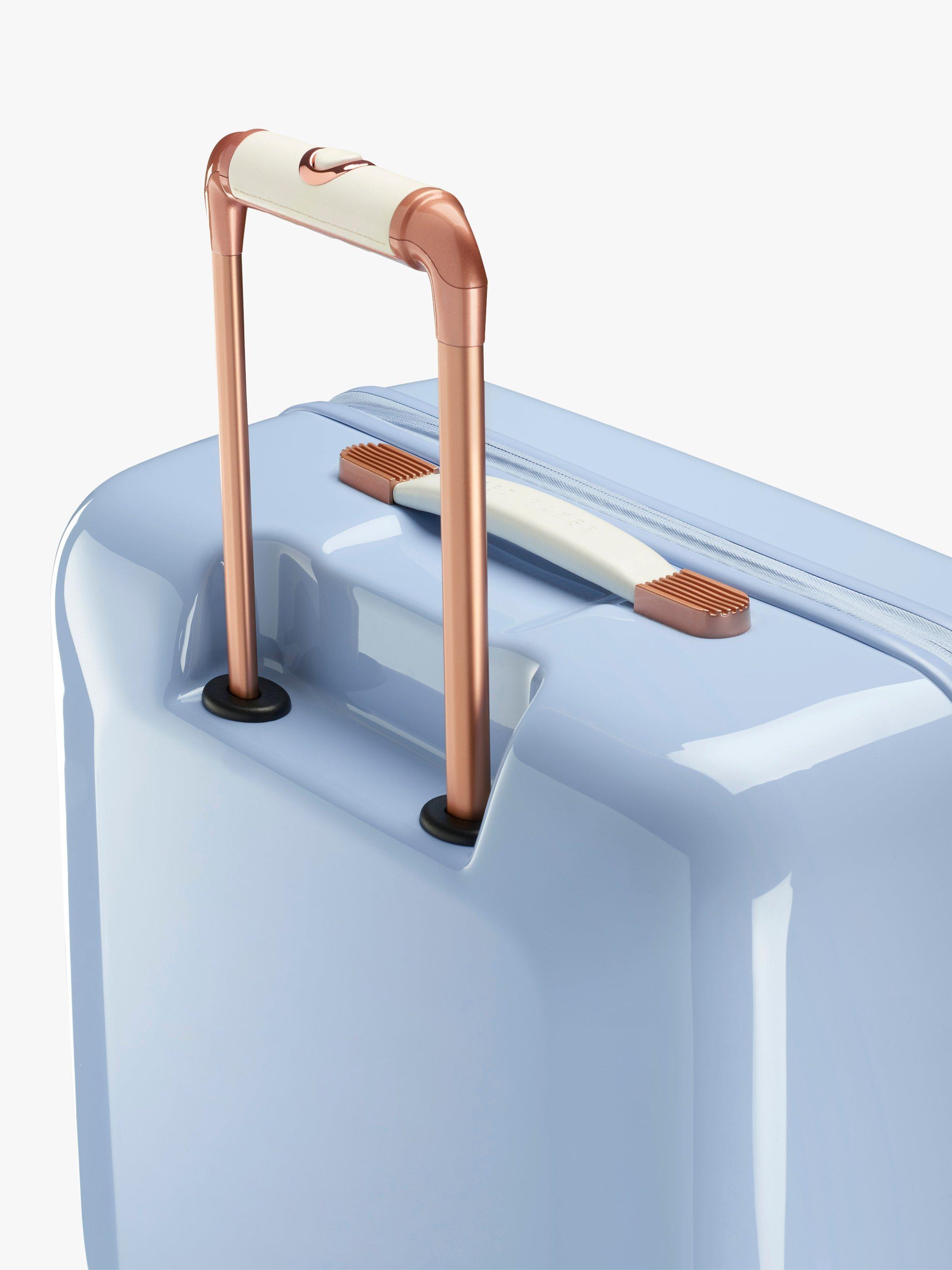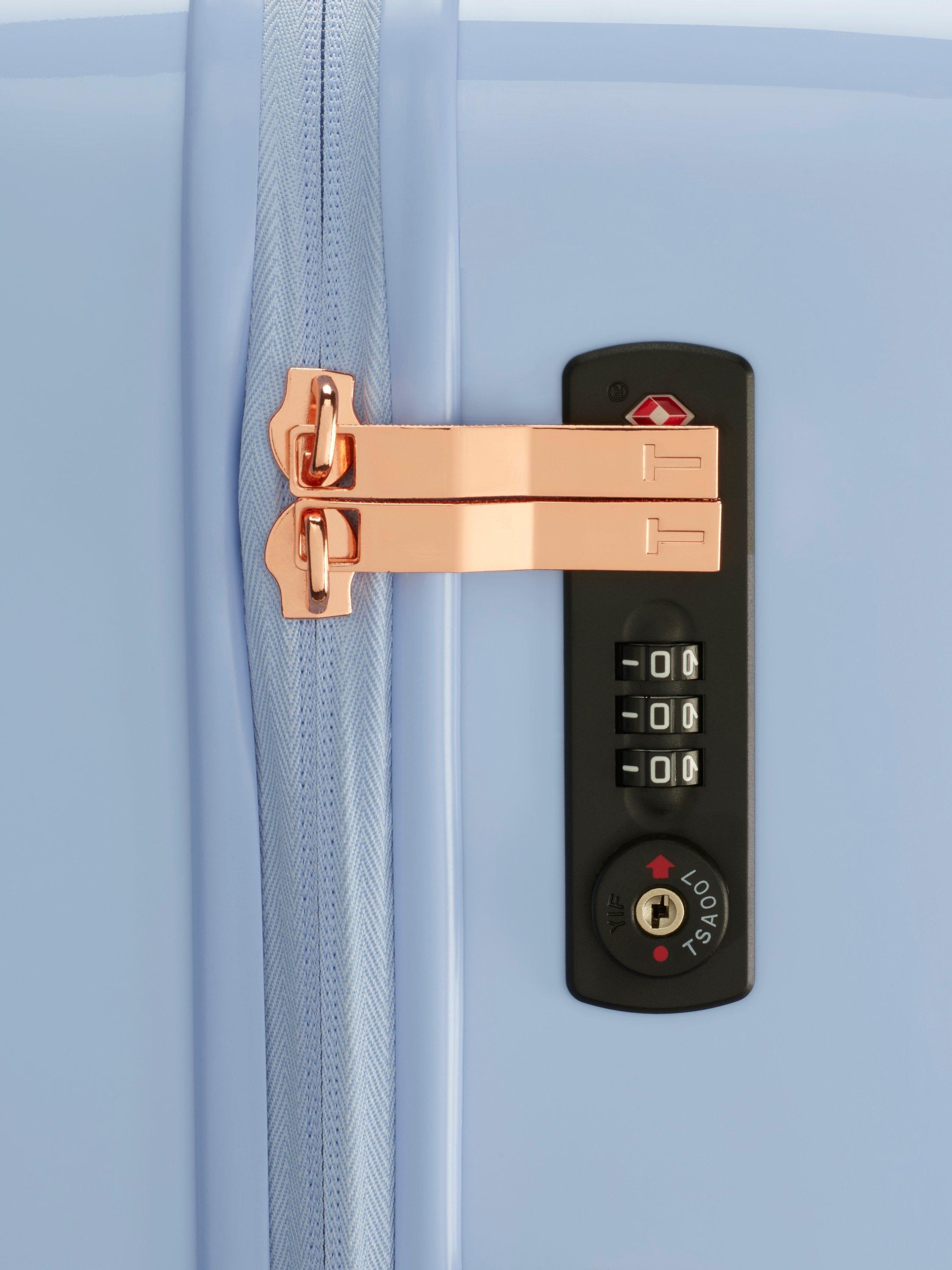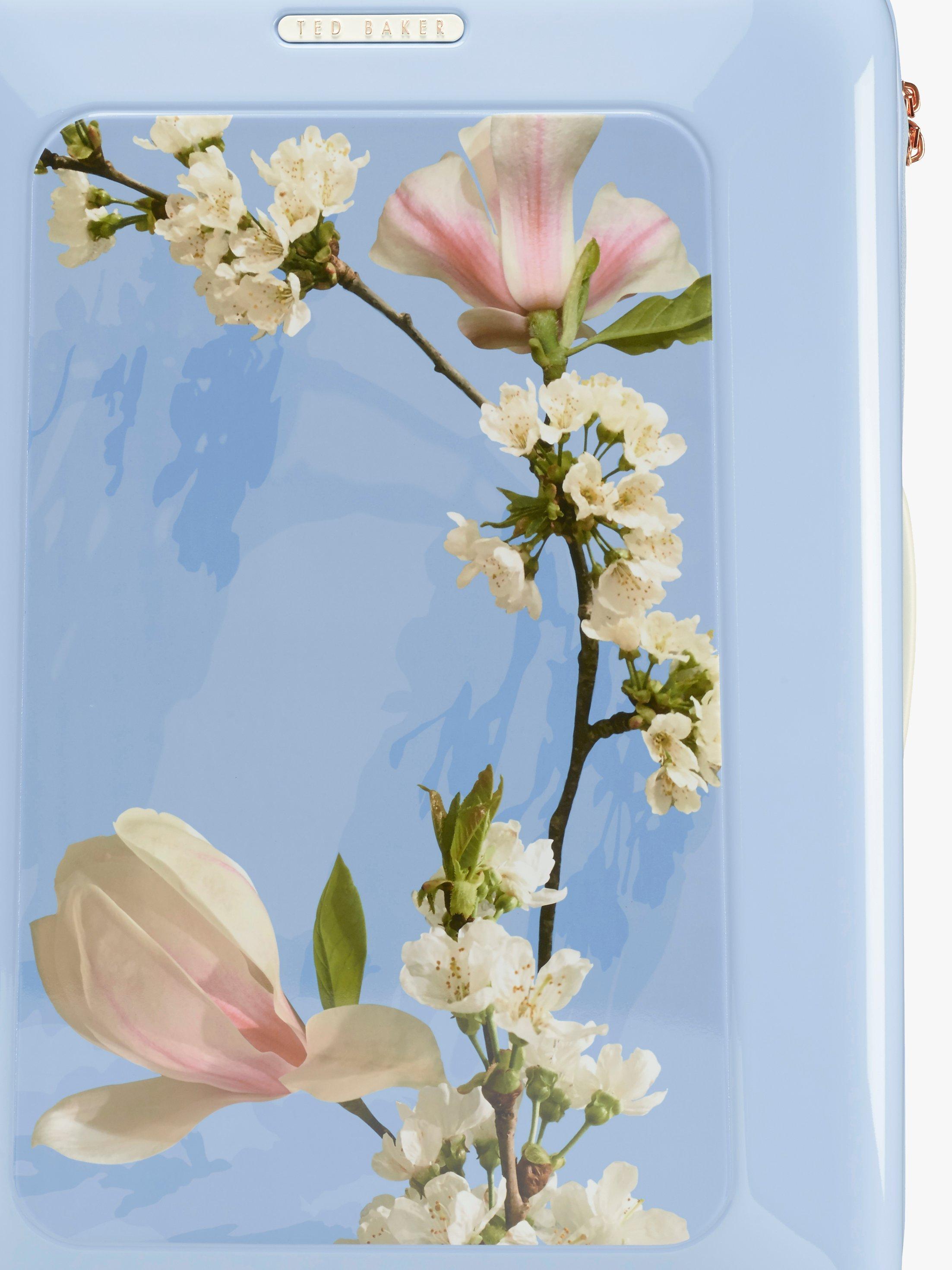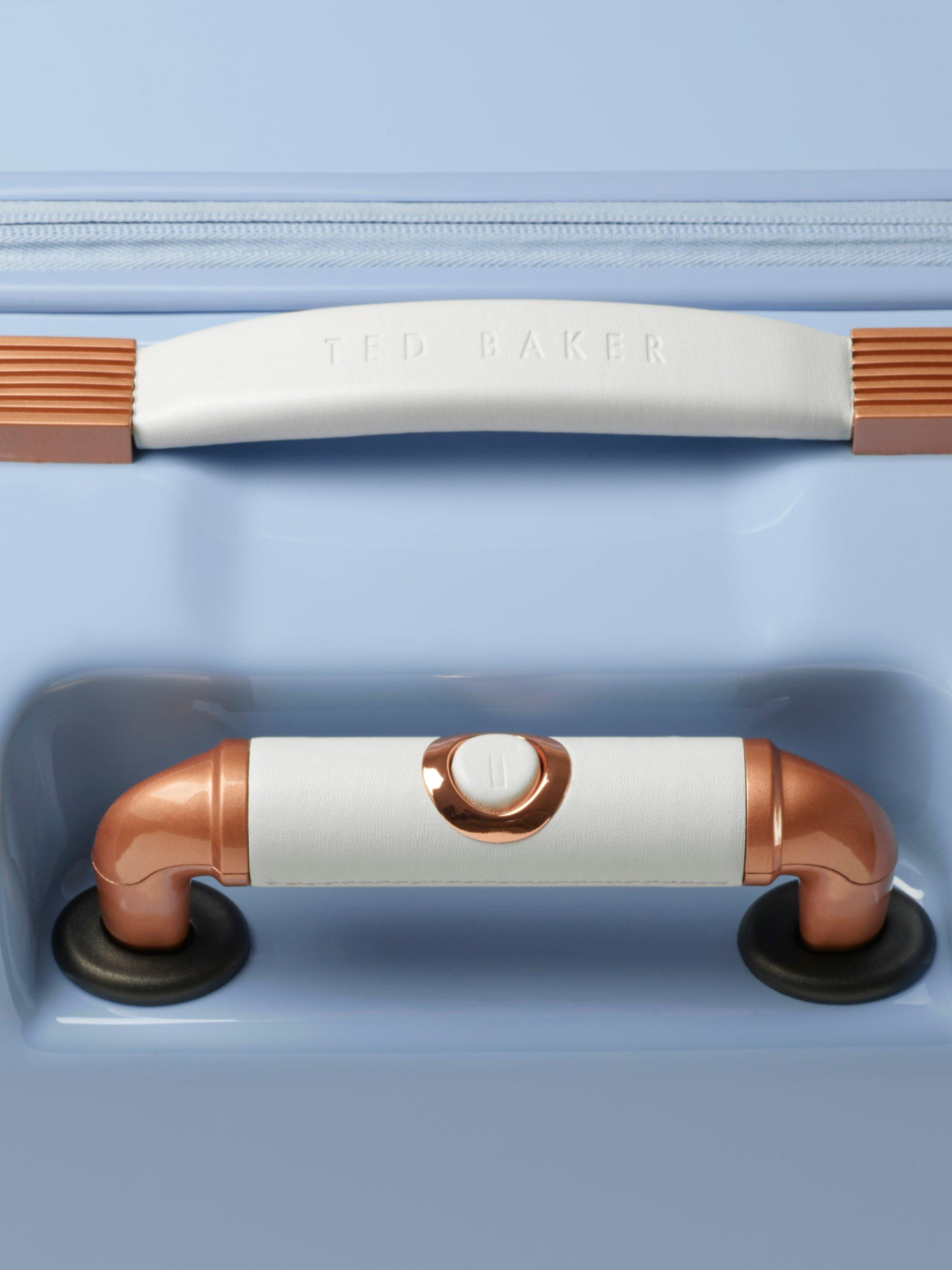 Travel in style with this Ted Baker Harmony Suitcase. Designed to be lightweight, this features a HD Ted Baker printed front panel, strong trolley system and double rolling wheels. All hardware comes in signature rose gold.