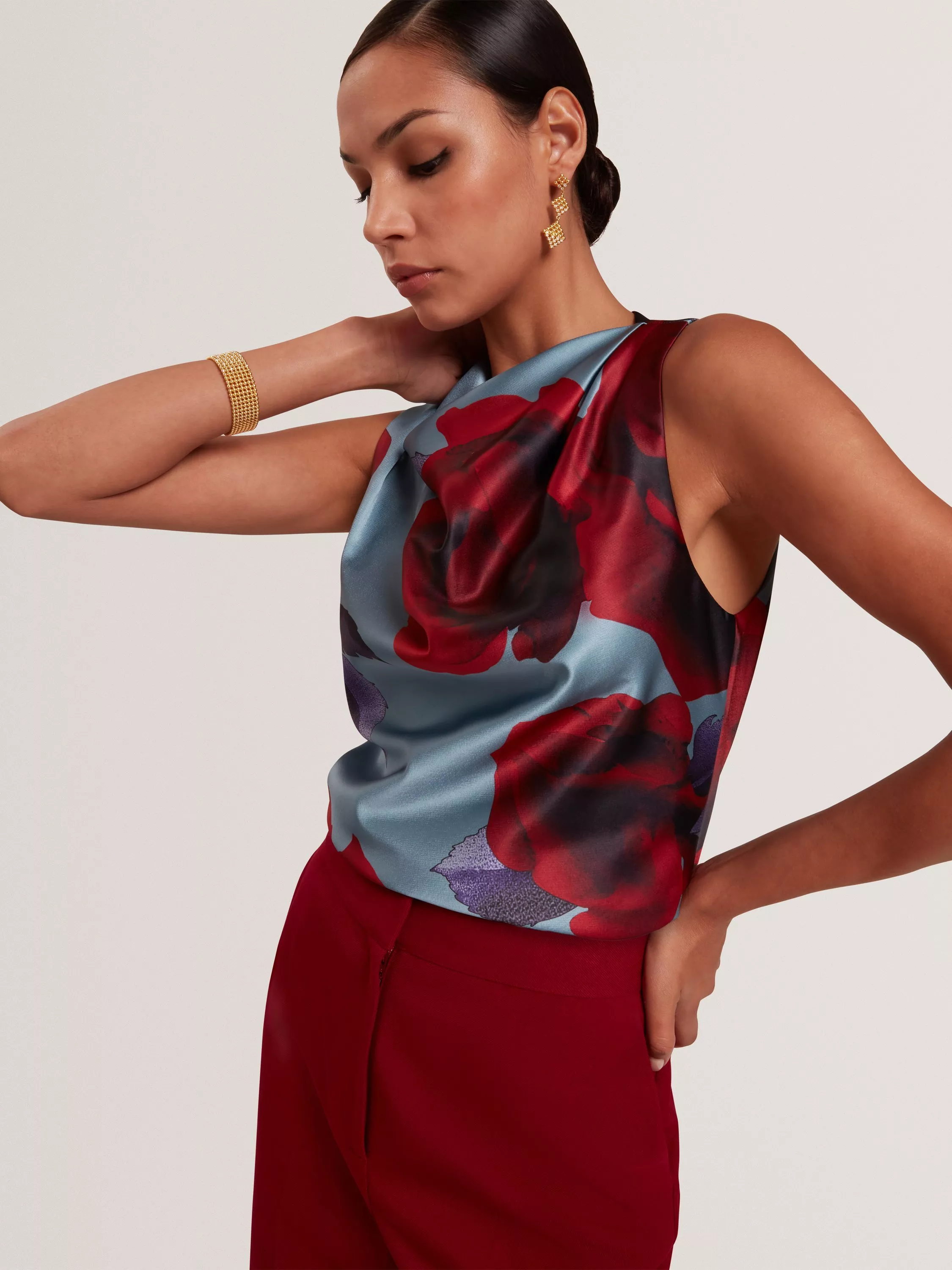 A sleeveless blouse by Ted Baker. Featuring a graceful draped cowl neck, it will brighten your wardrobe with its pretty floral print. Style that goes from laid-back to lively without missing a beat.