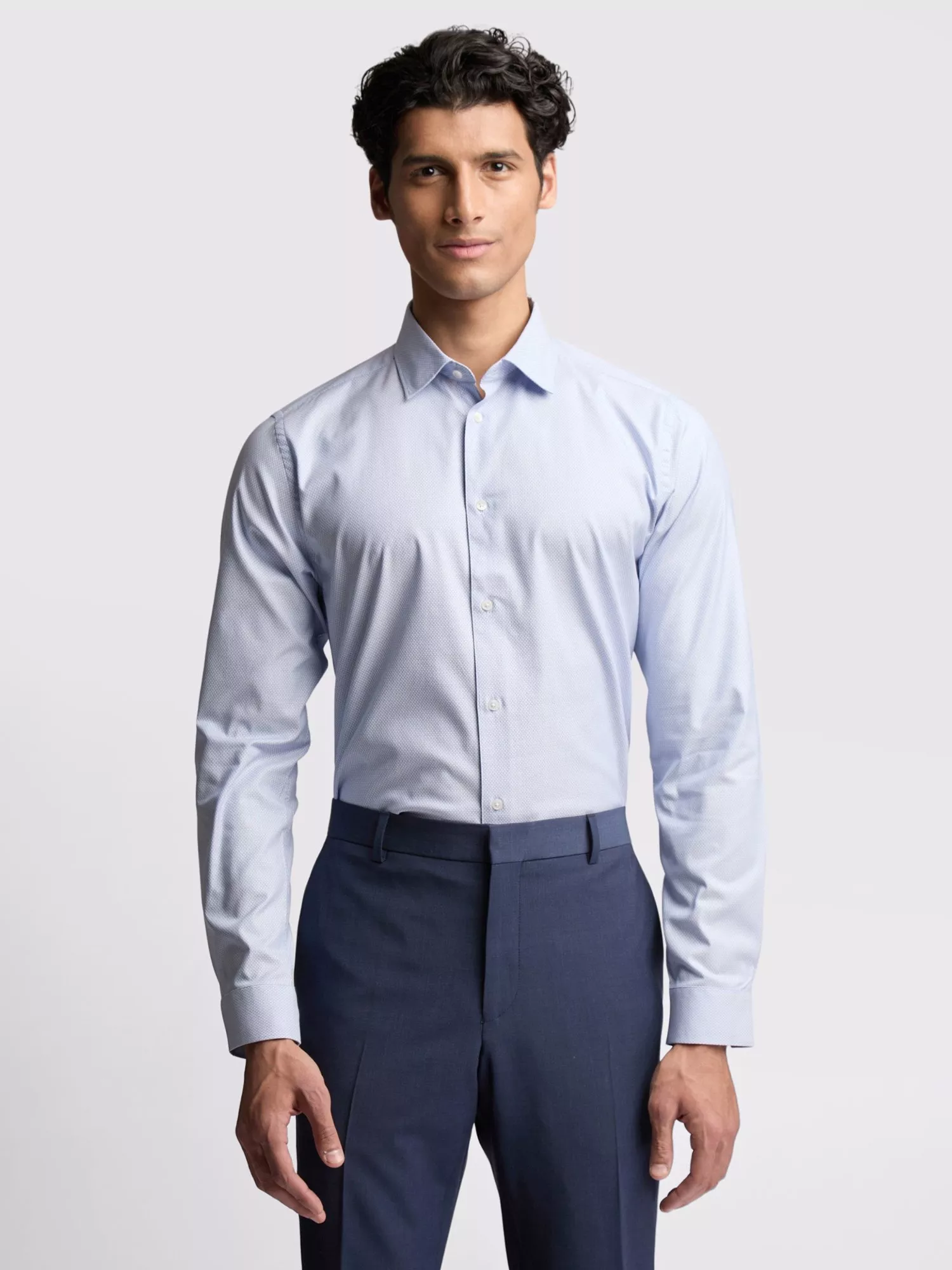 Featuring a semi cutaway collar and single adjustable cuffs, this cotton-blend shirt also has enough stretch to ensure day-long comfort.
