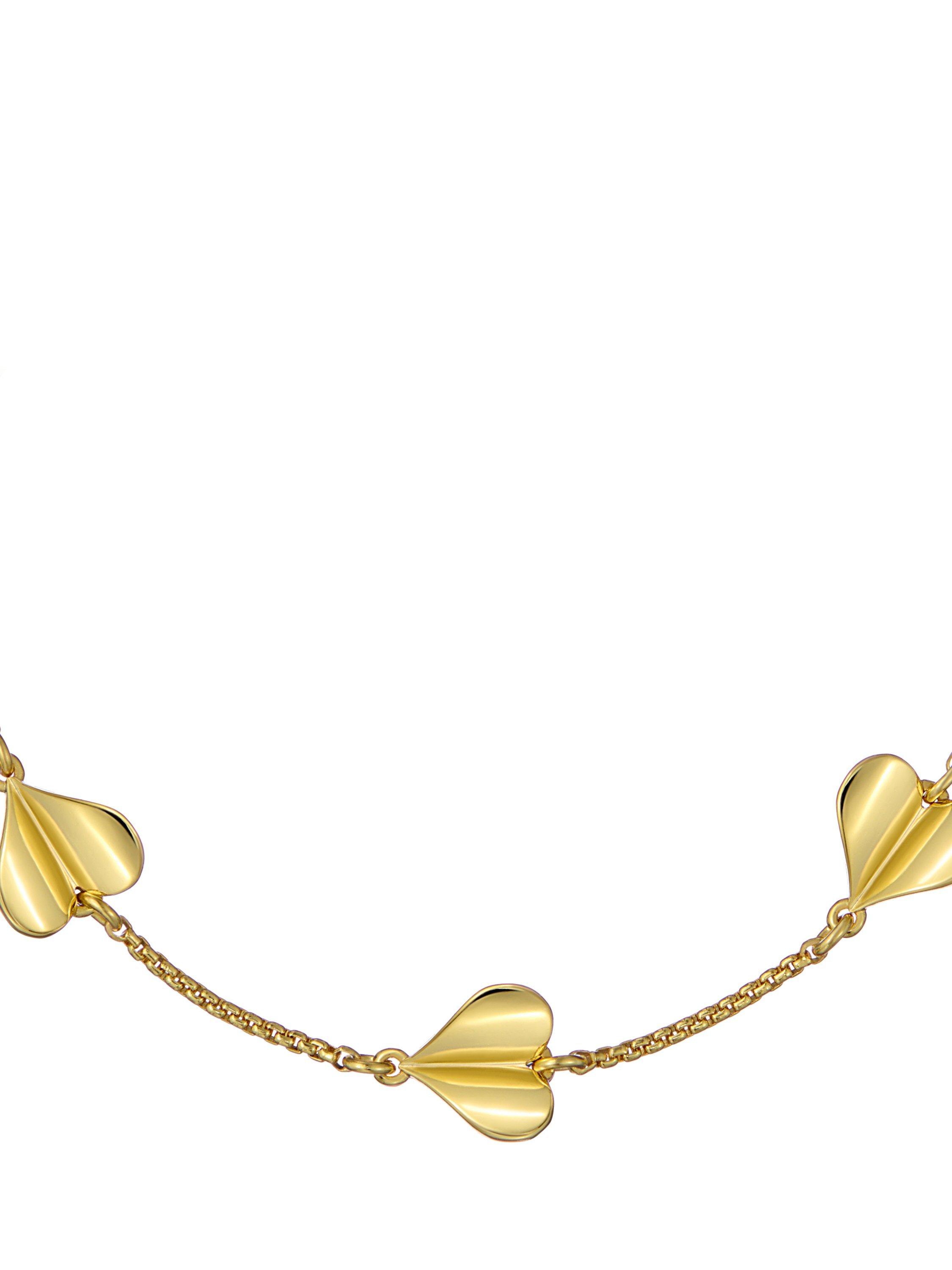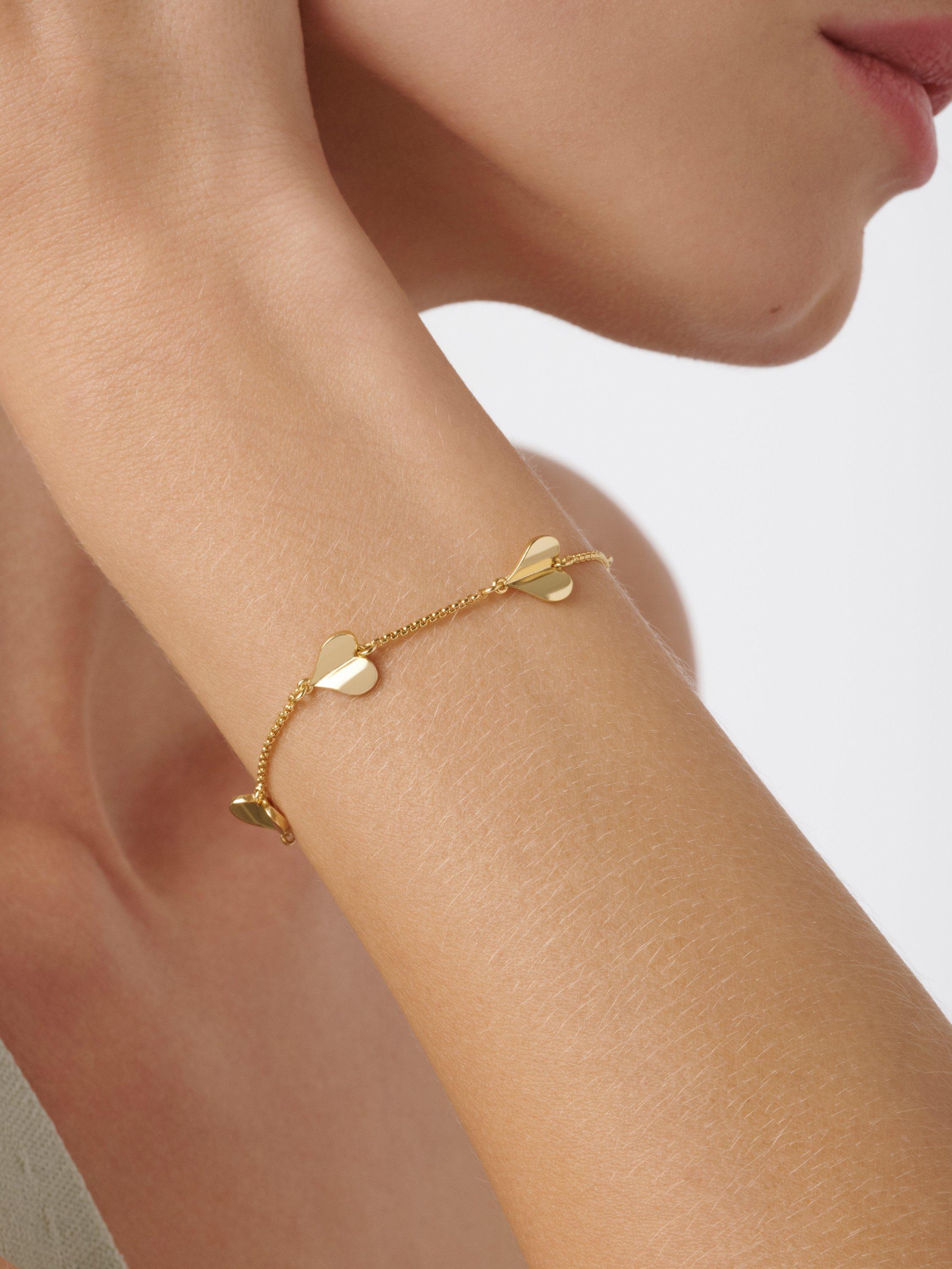 The gold-tone chain features delicately bent hearts that appear to flutter, adding a subtle sense of movement and charm. With a sliding adjuster for a comfortable, customisable fit, this bracelet can be worn solo or layered with other pieces for a stylish look.