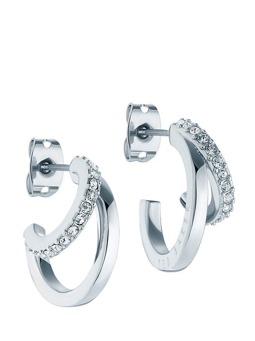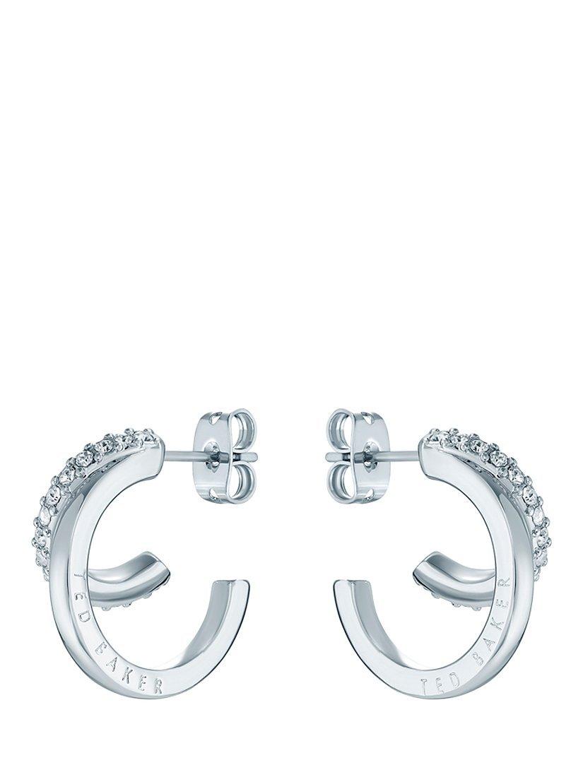 These women's double hoop earrings from Ted Baker feature two hoops in one for an illusion silhouette. One hoop features a row of sparkling crystals, while the other hoop showcases laser-engraved Ted Baker branding. Crafted with precision, they offer a delicate fusion of crystals and gold-tone plating. Secured with a butterfly back and suitable for pierced ears only.