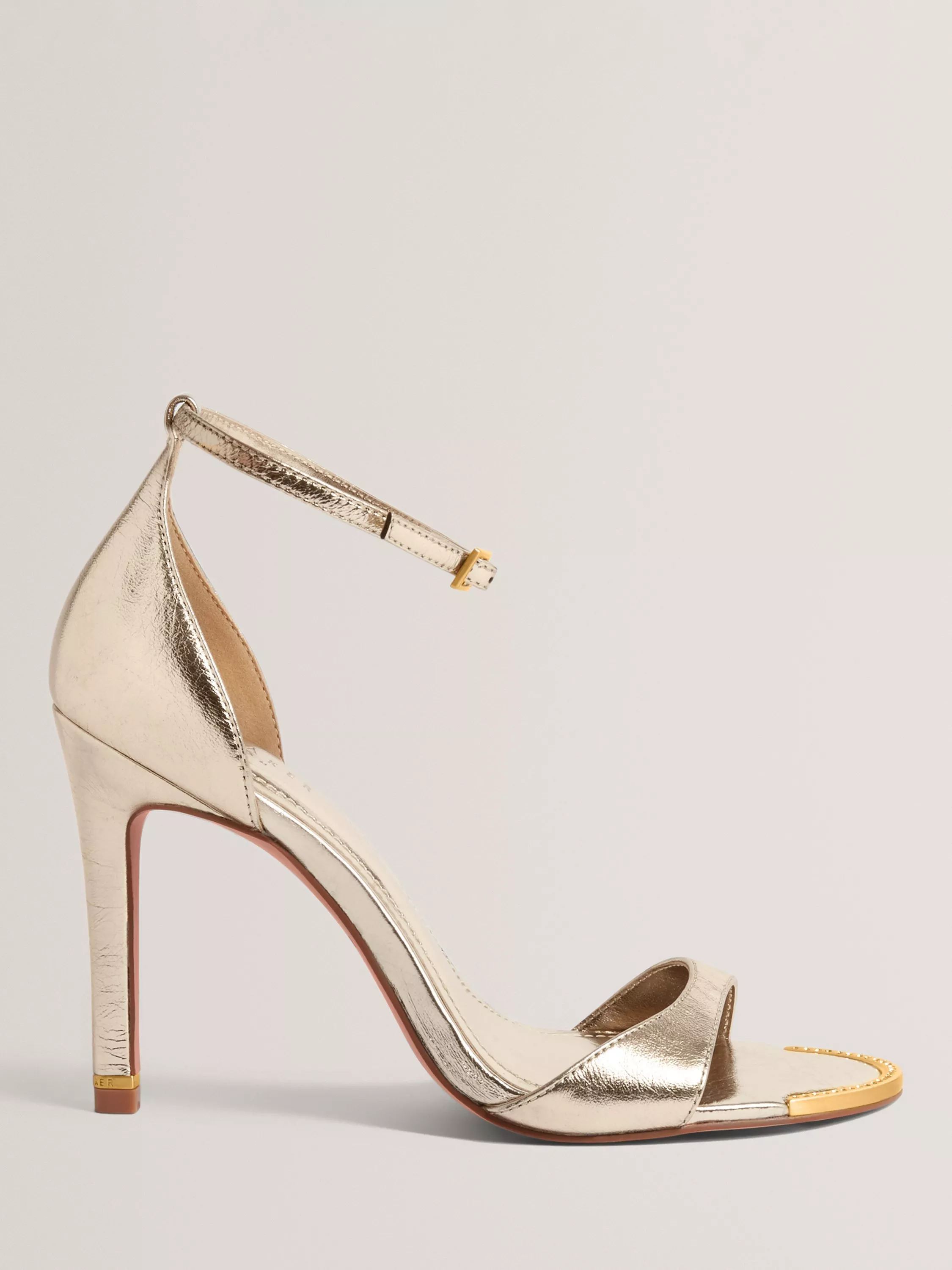 With a striking stiletto heel and metallic finish, these leather heeled sandals add a clever twist to your style. The open toe keeps things playful while the secure buckle ensures you move confidently wherever you go.