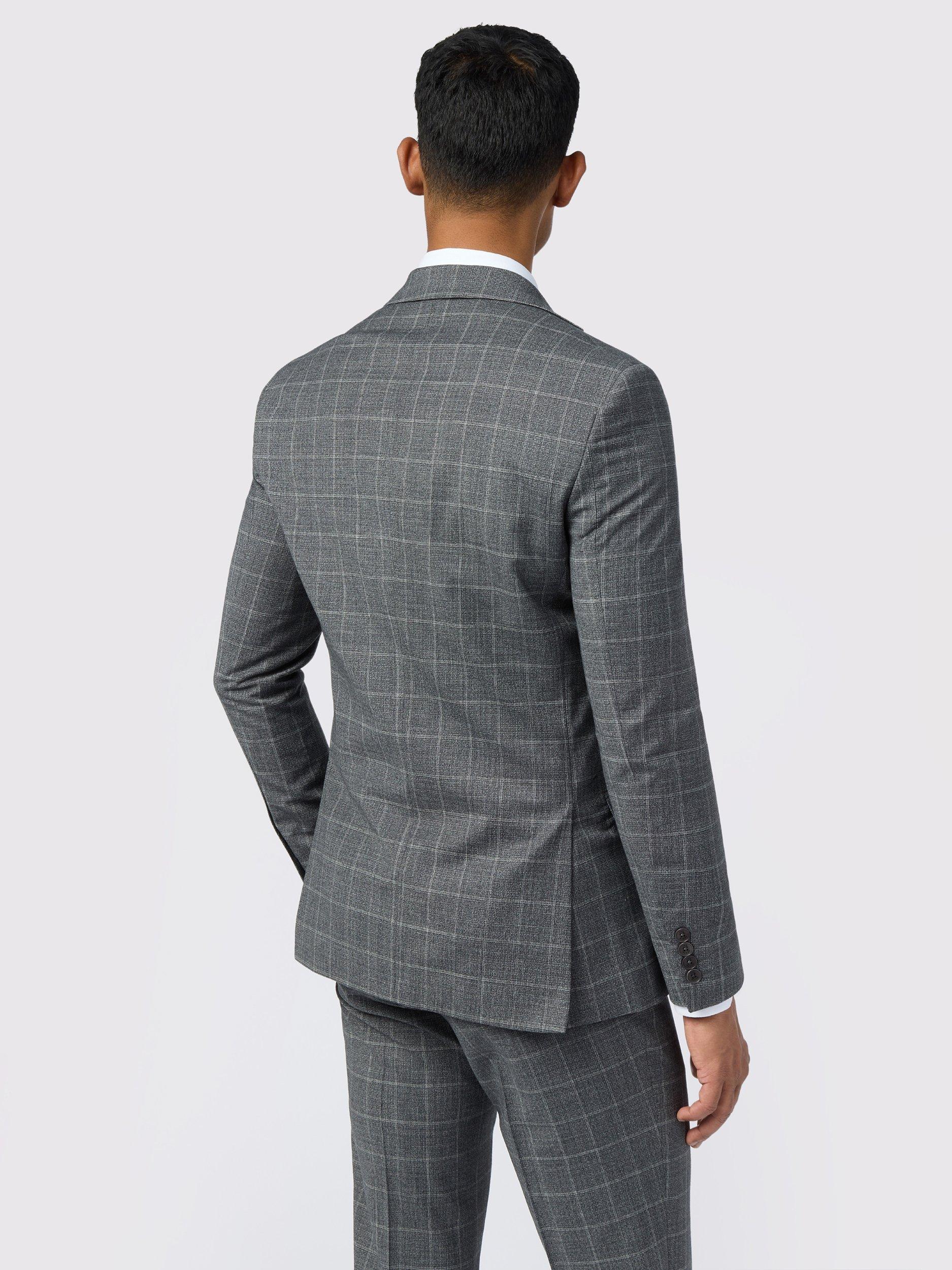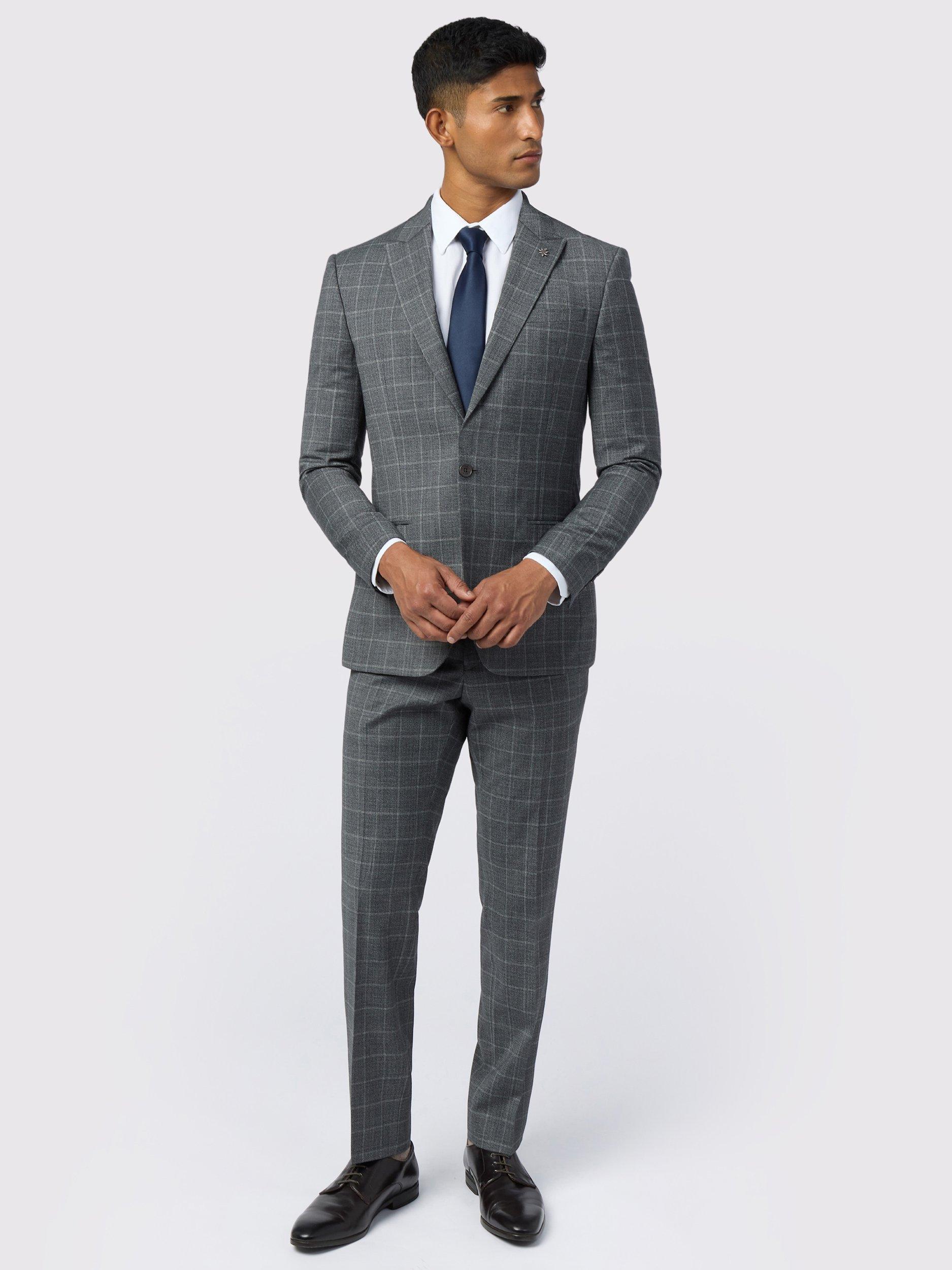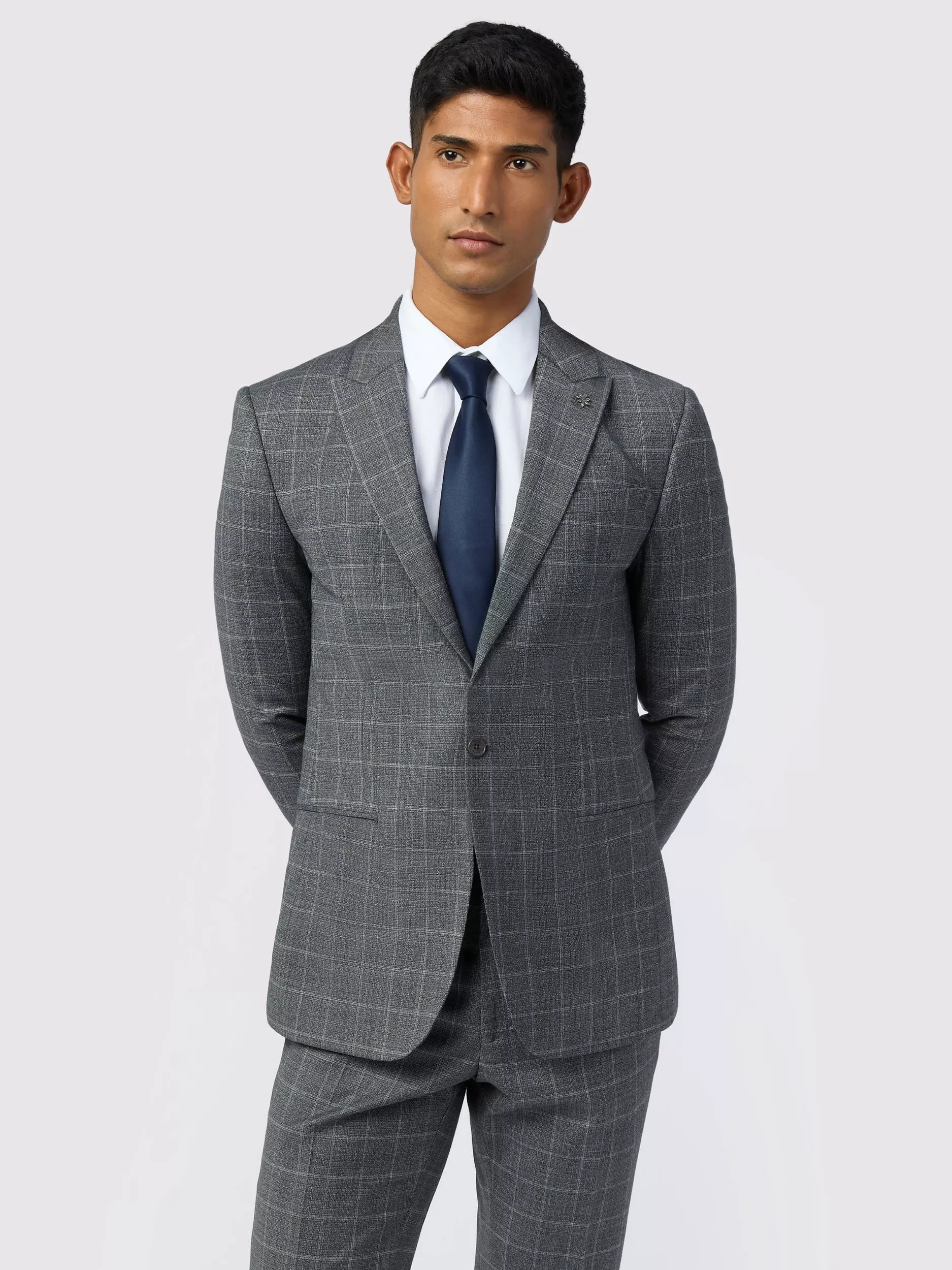 The Hilson suit jacket features a rich wool-blend with a hint of stretch to ensure ease of movement. Complete with a subtle check, this piece also boasts an ornate bird print lining with a built-in pocket square, as well as a flower lapel pin.
