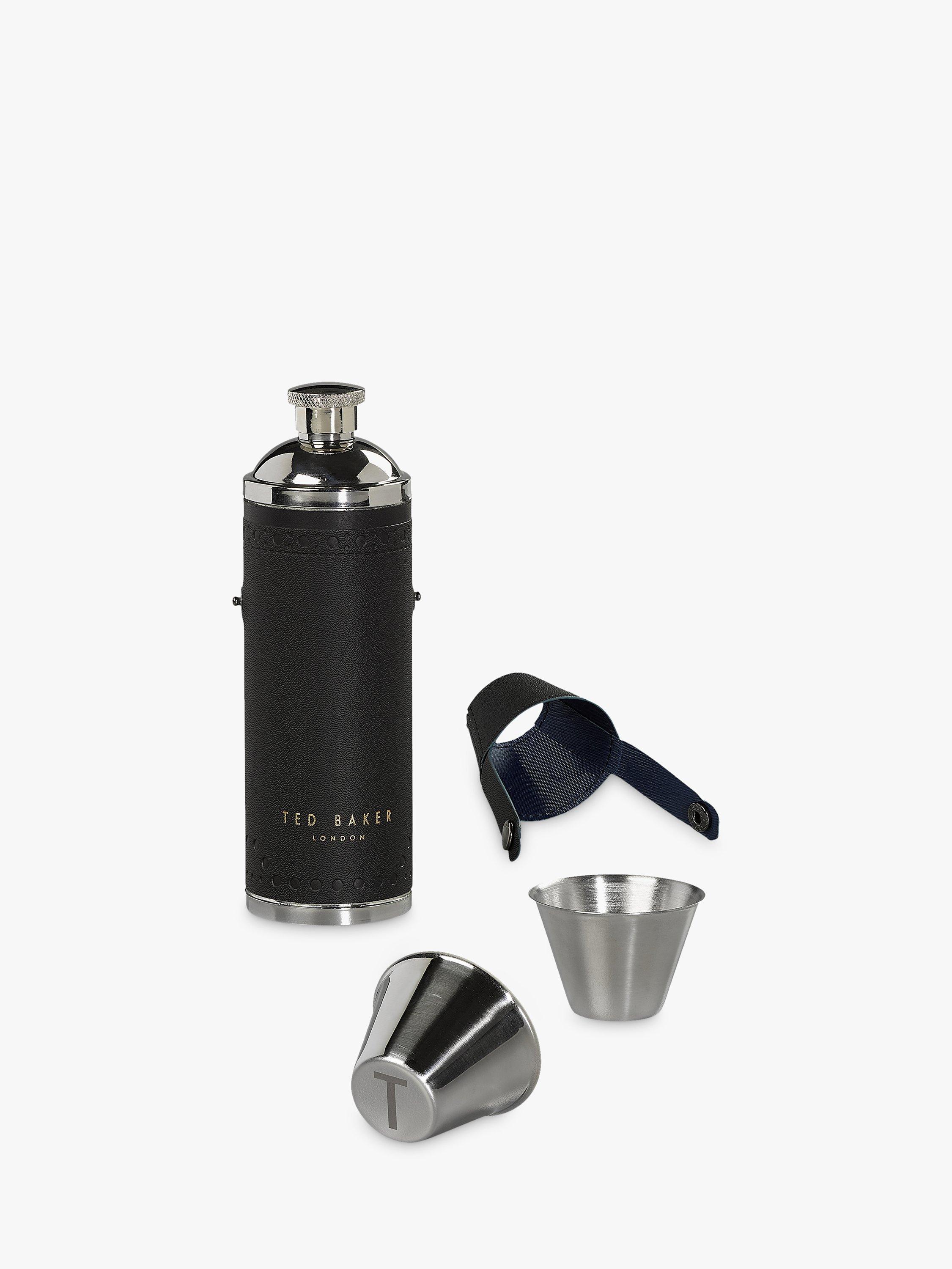 Complete with soft touch faux-leather casing, the drinkware accessory is complemented by a protective, black Brogue Monkian print sleeve with Ted Baker branding. Stylish and practical, it features a screw top lid with two stainless steel shot cups stored in the cap and is ideal for enjoying your favourite tipple on the go.