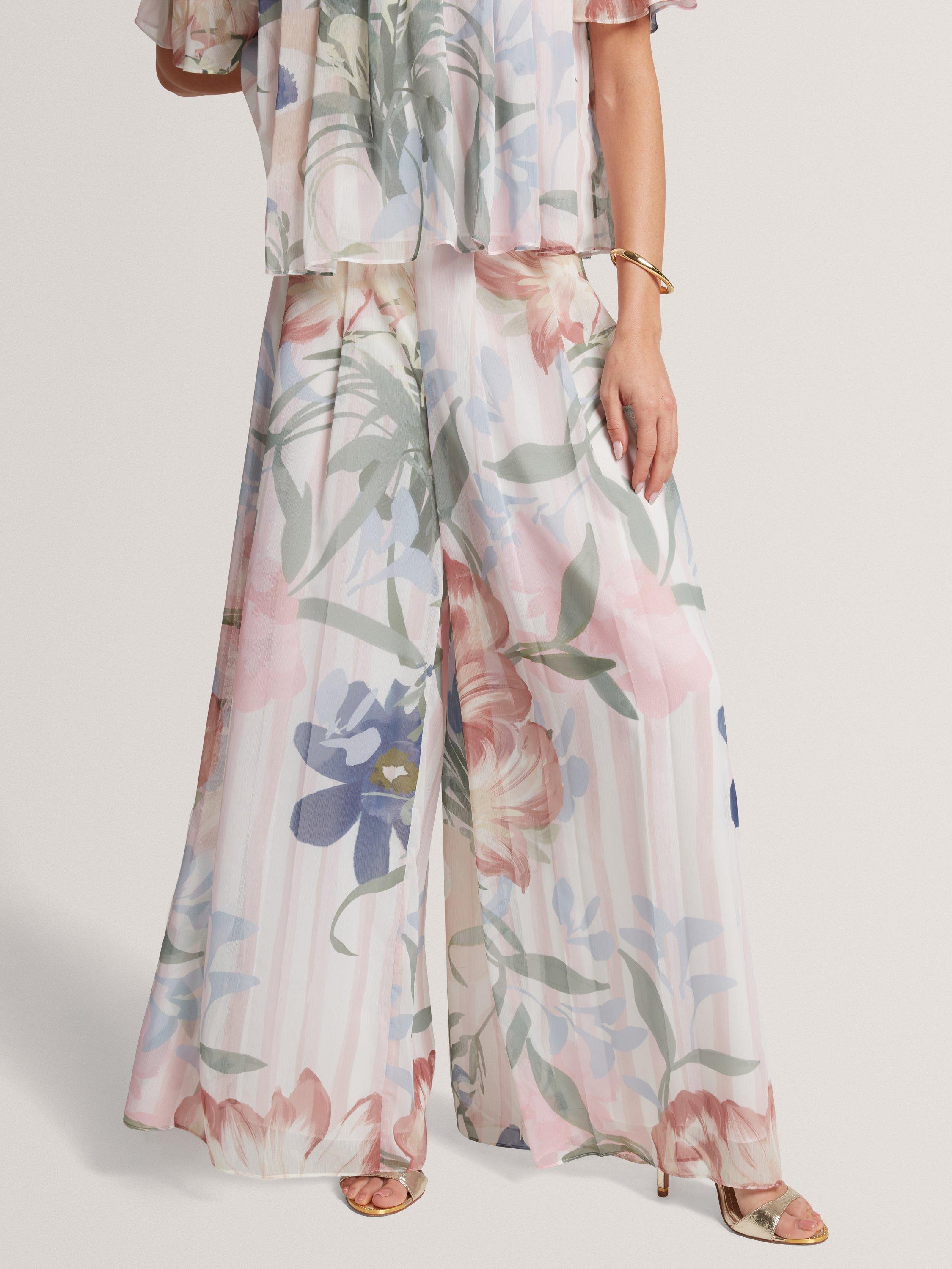 Featuring a sheer floral-printed overlay and elegant pleating, the Hurta trousers offer floaty movement for a playful spring-summer look.