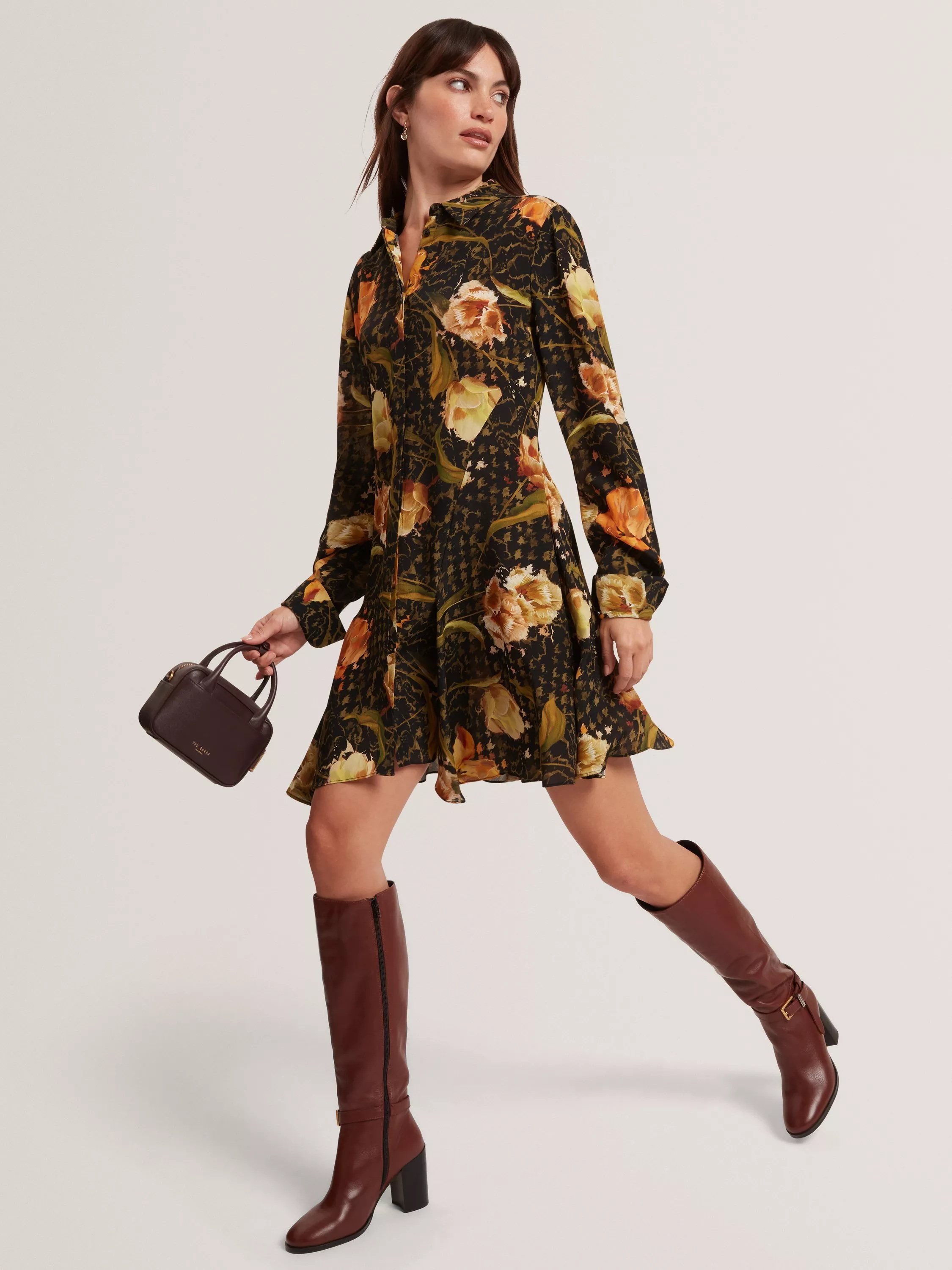 This floral mini shirt dress helps you express yourself wherever the day takes you. Its smooth viscose fabric feels great, while the collar and long sleeves keep your style sharp for work, parties, and everything in between.