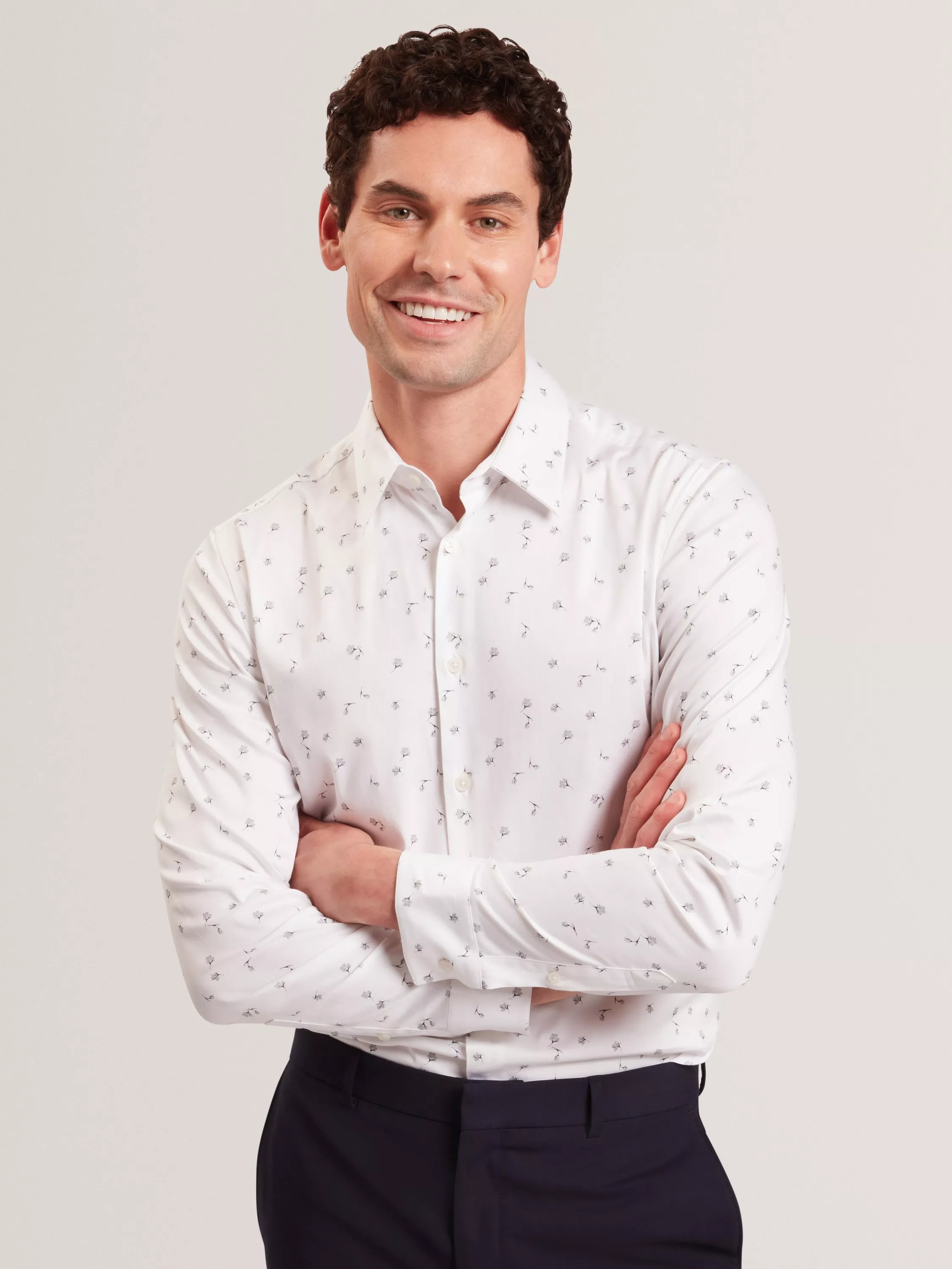 Delicate florals enrich this classic shirt with a statement-worthy look and feel. The soft cotton-blend construction also ensures you can move freely throughout the day.