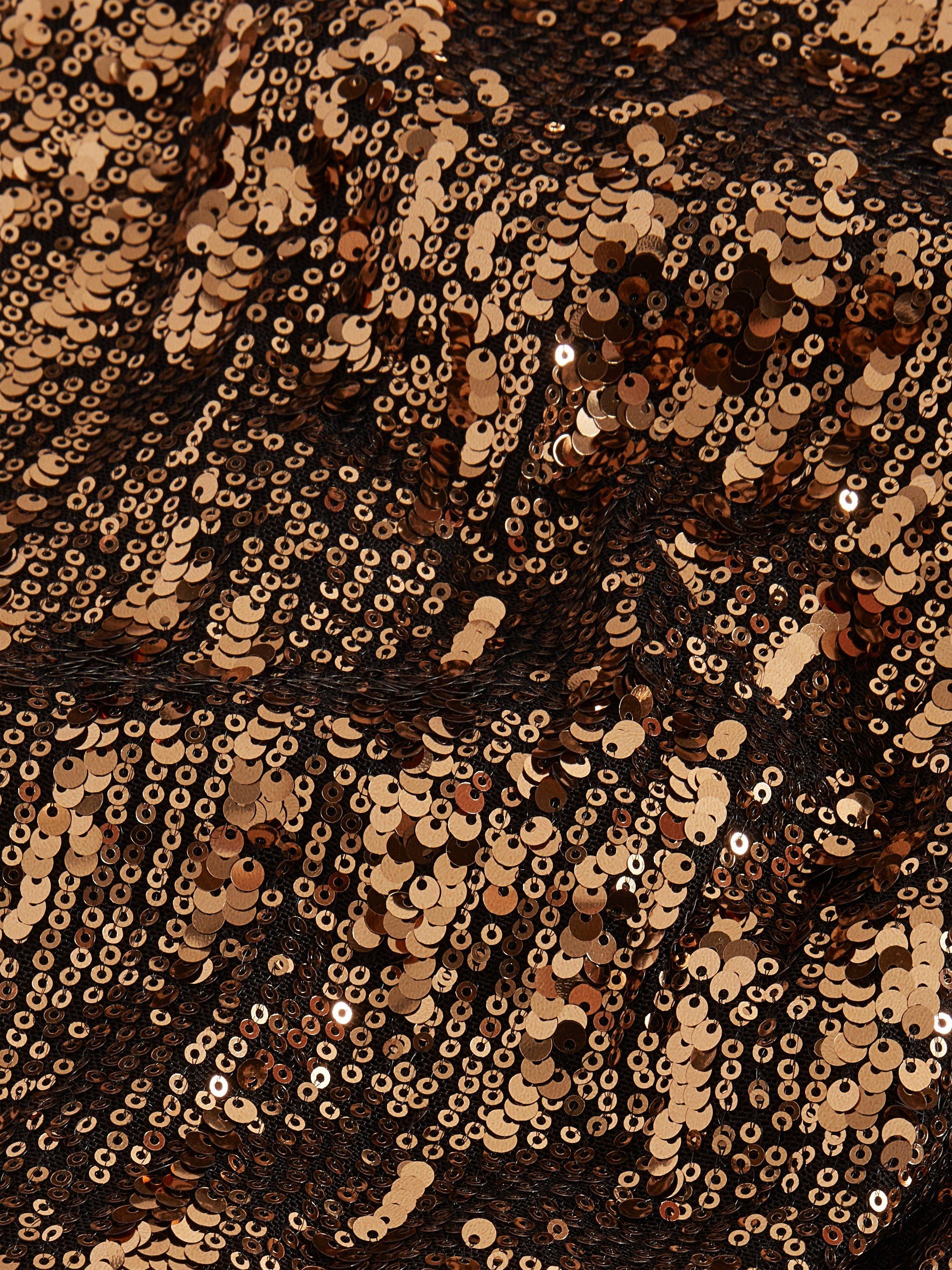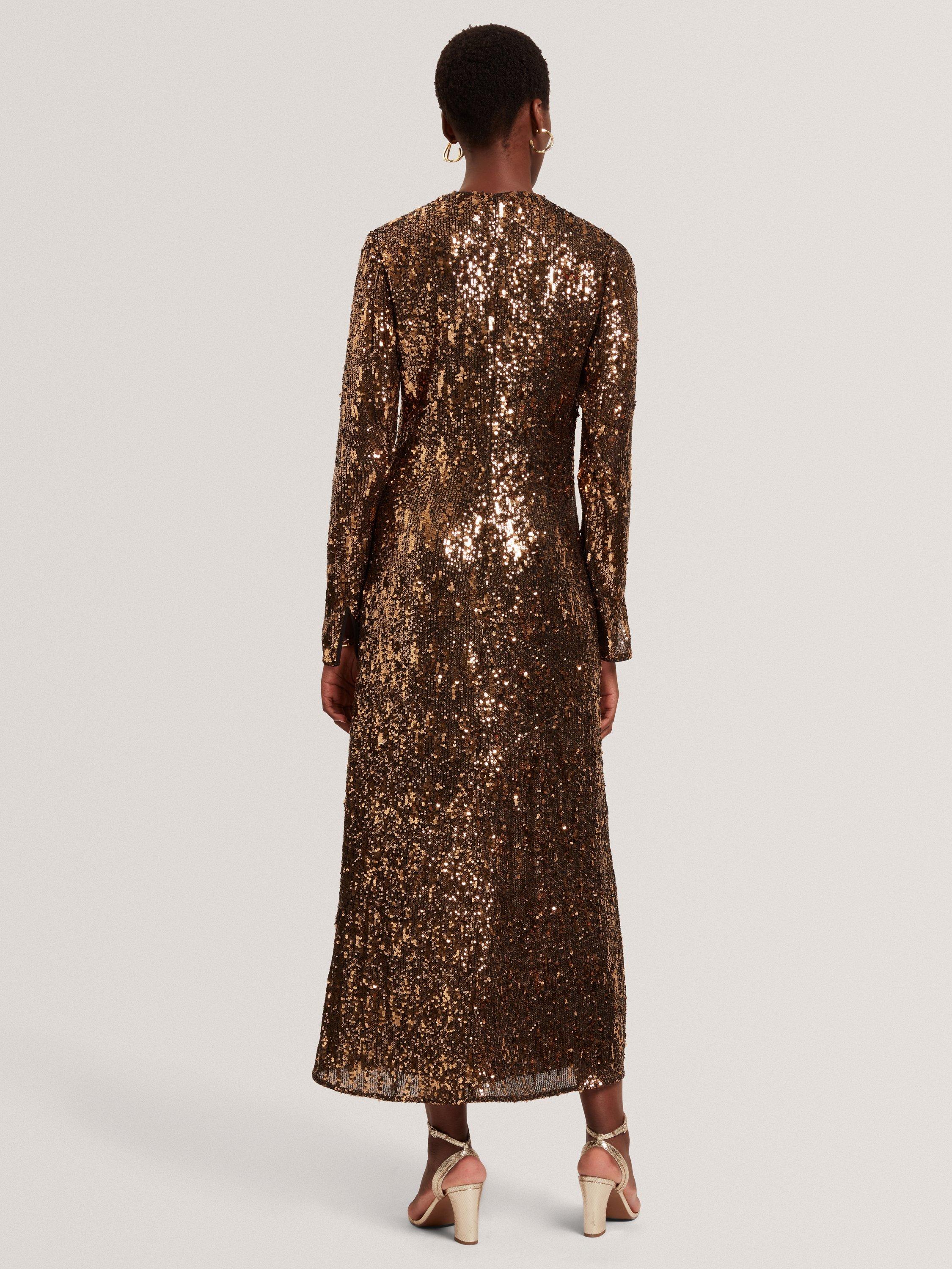 Slip into this sequined long dress for instant impact. Its A-line shape moves as you do, catching the light while keeping you comfortable from day to night.
