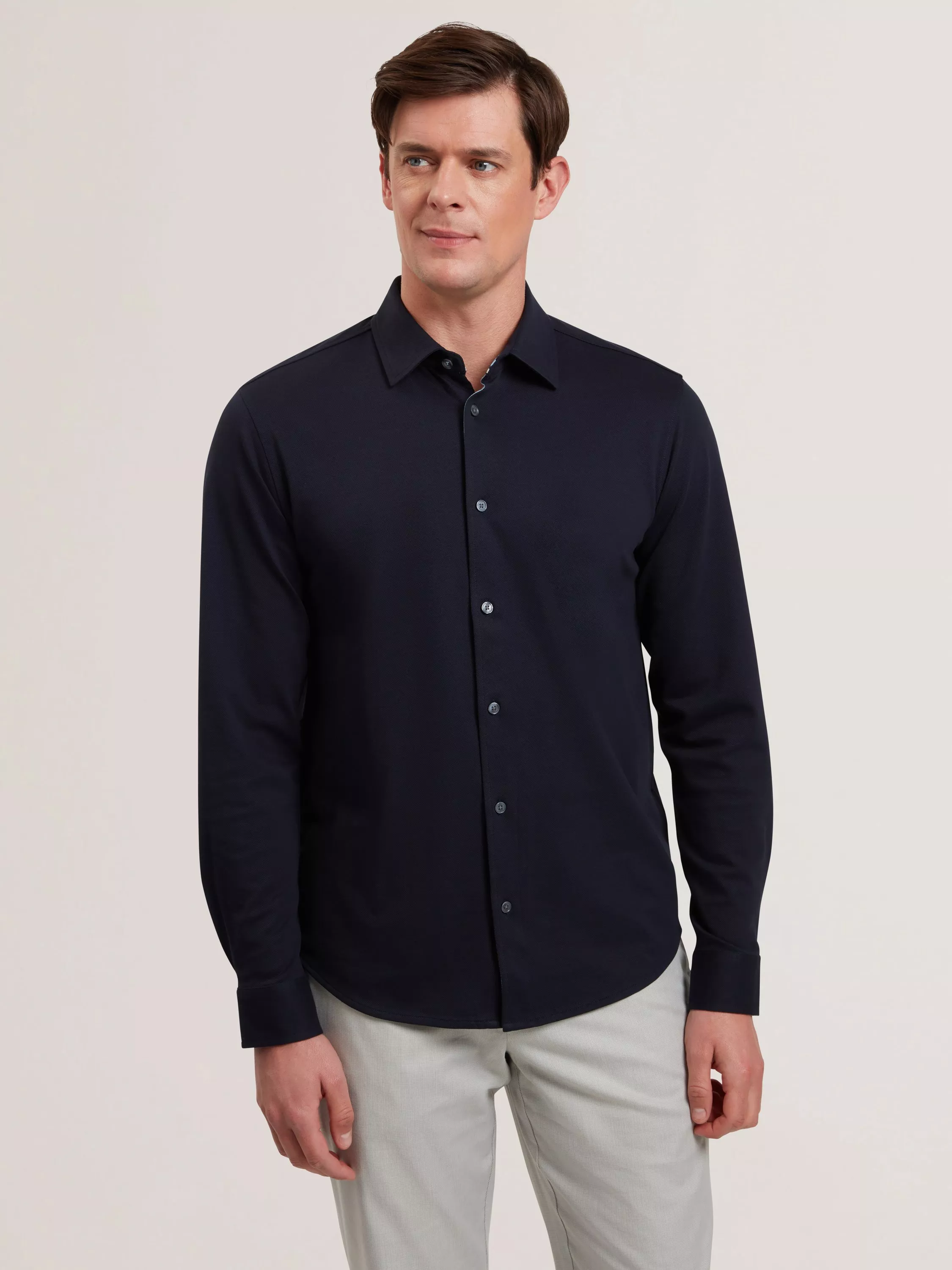 Regular fit cotton pique jersey shirt for easy wear and styling options.