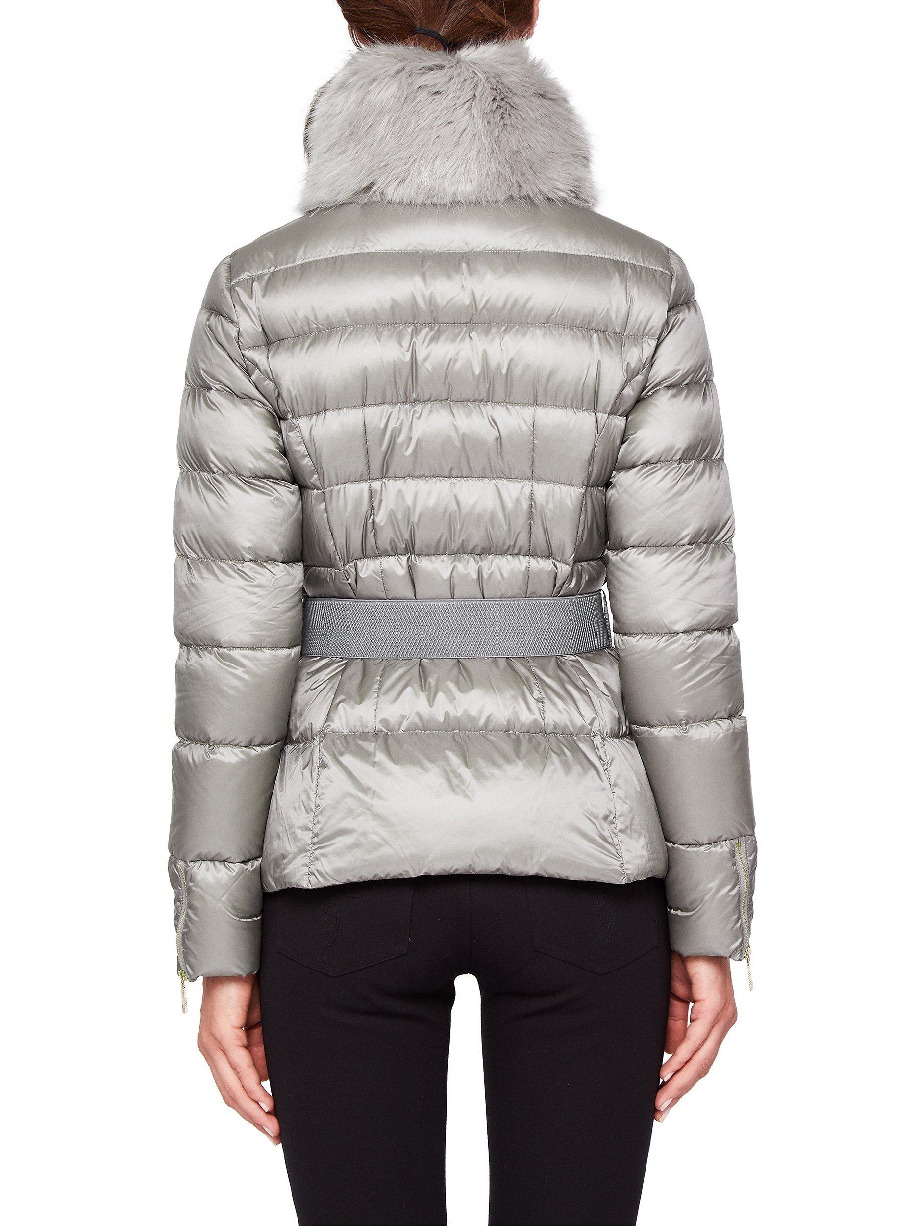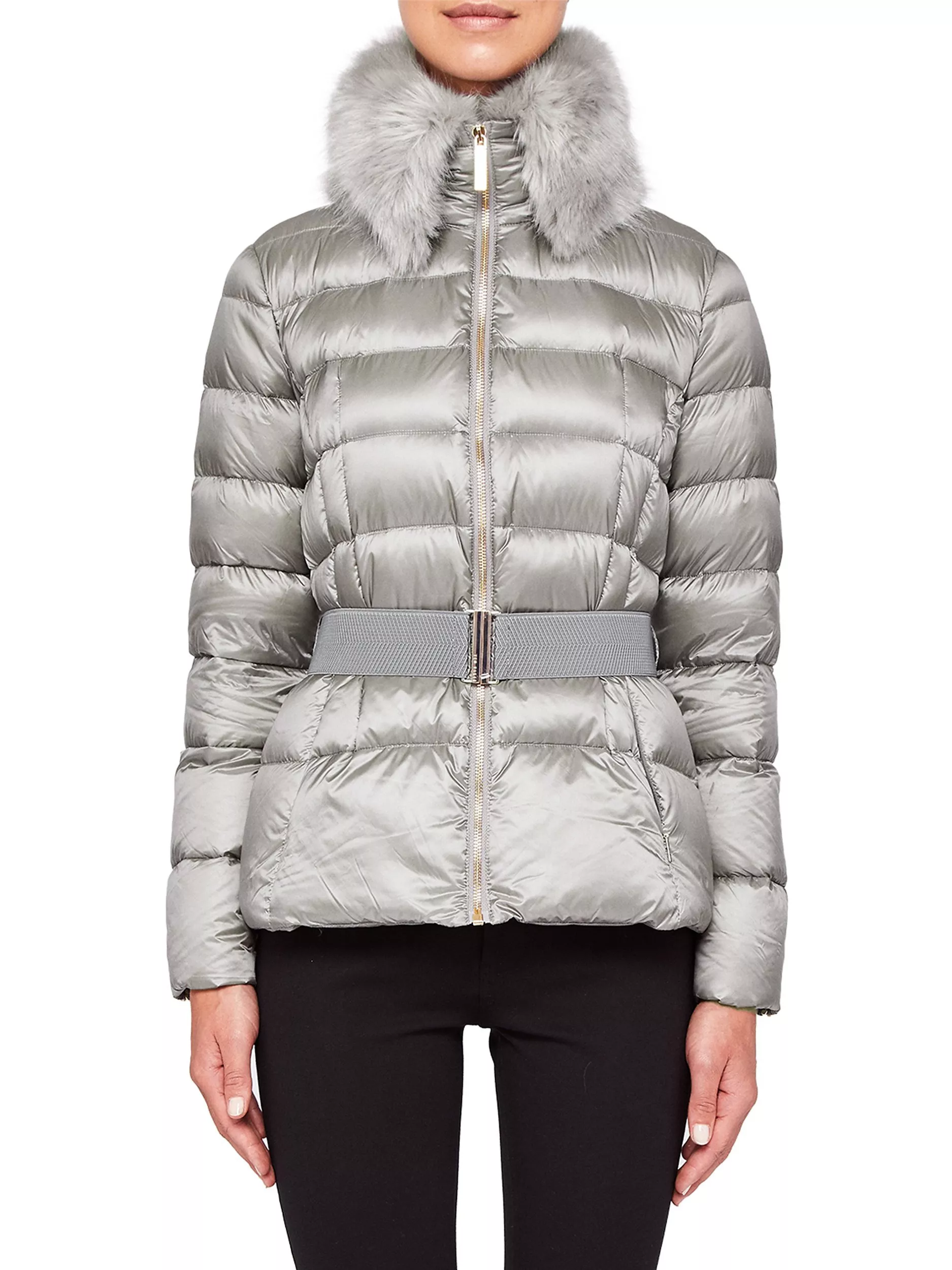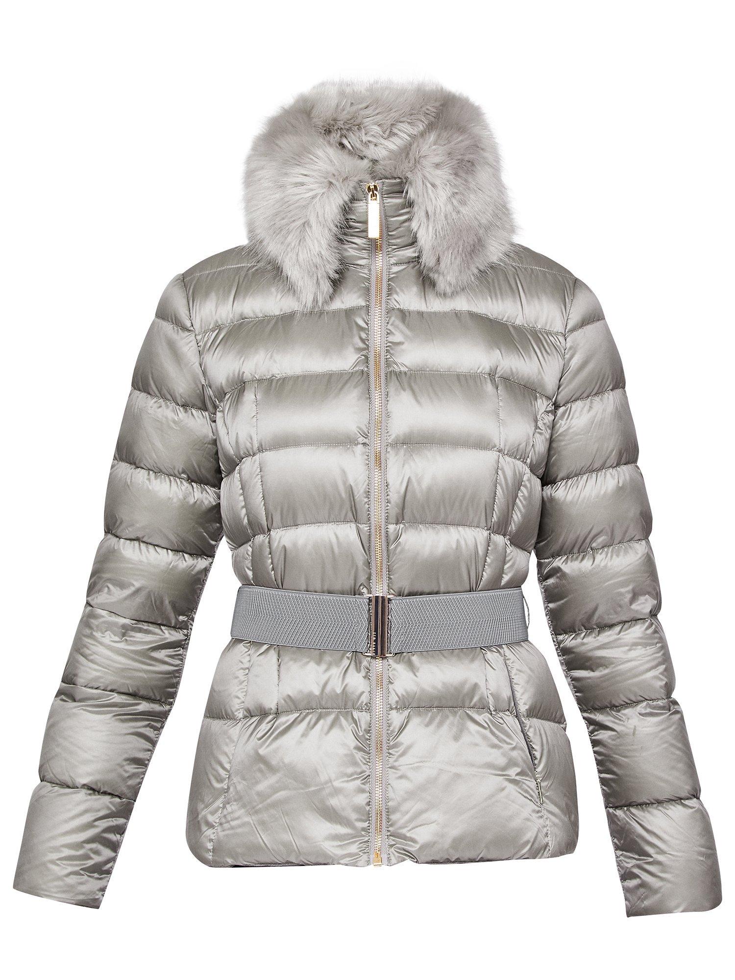 Designed with an on-trend faux fur collar, this quilted jacket features a belted waist to cinch you in and flatter you silhouette. The zipped cuffs add edge, along with the statement zip up front.