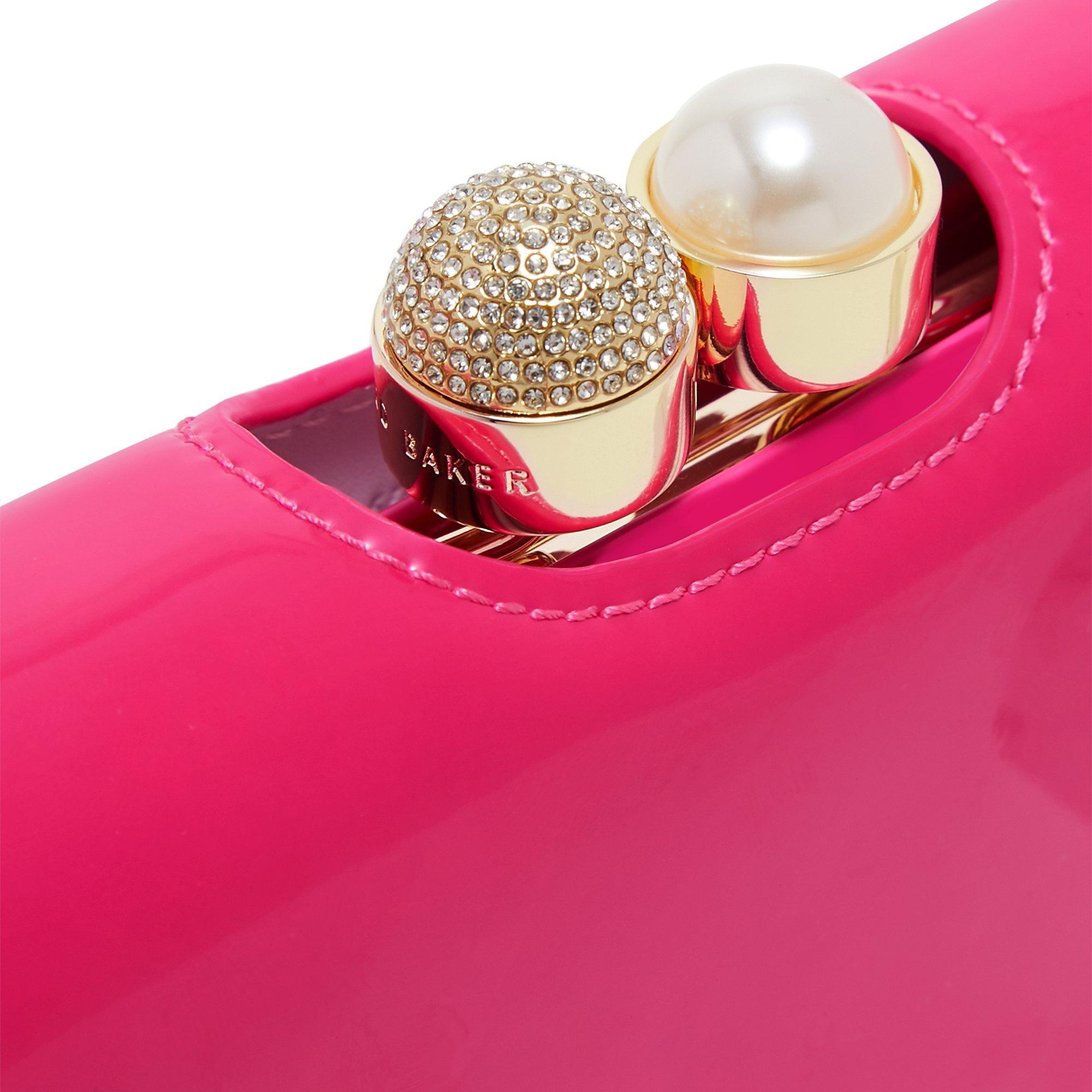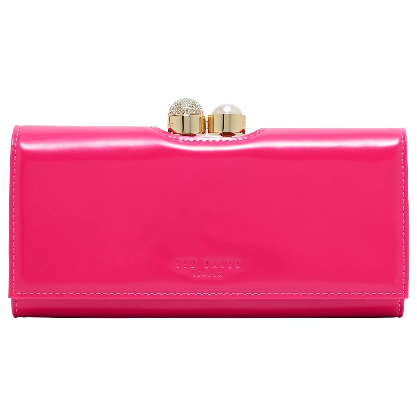 Crafted from leather with a smart patent finish, this lovely Kattia purse from Ted Baker features an opulent crystal and pearl clasp.