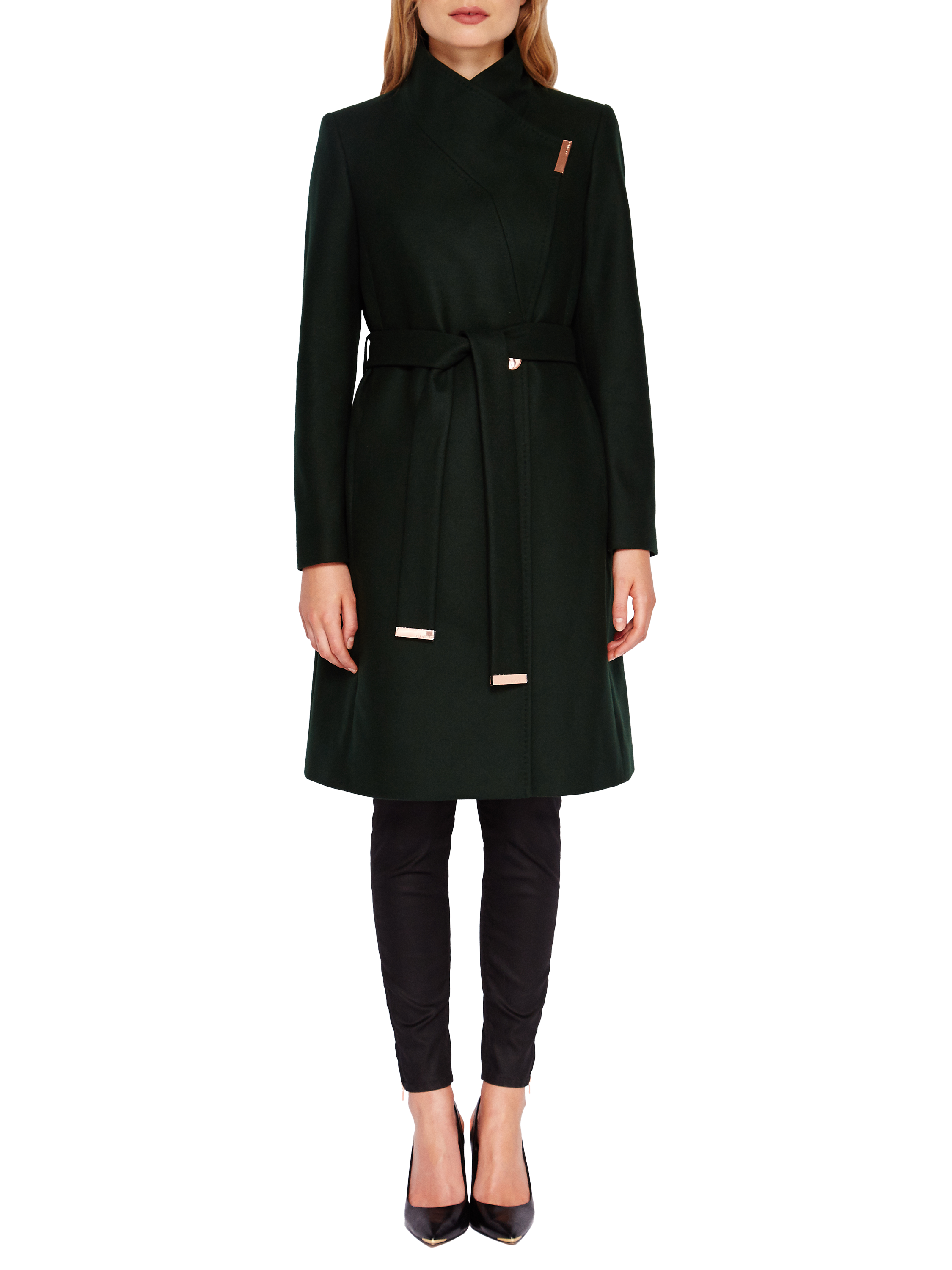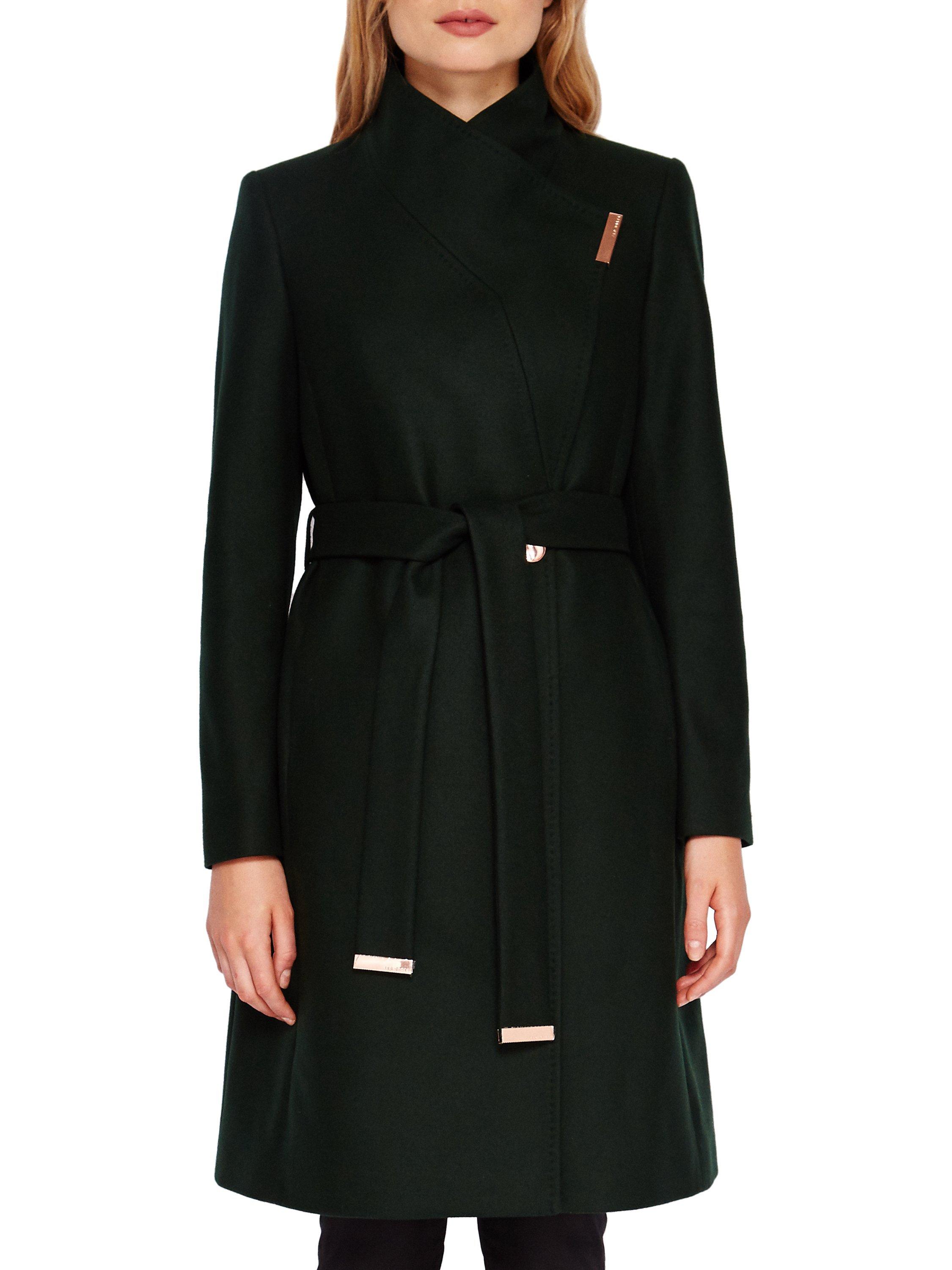 Ted Baker Kikiie Wrap Front Coat, Dark Green