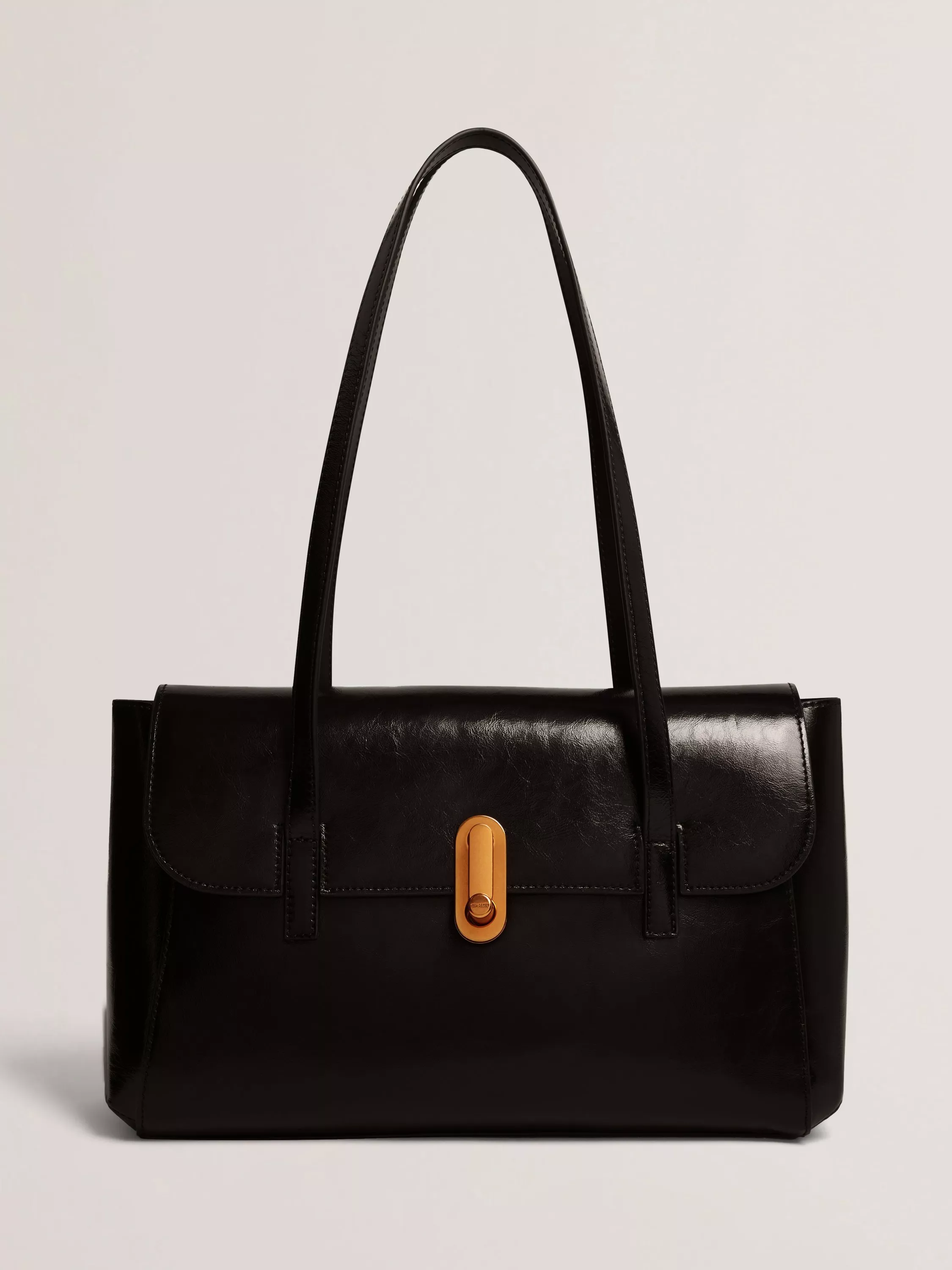 A leather shoulder bag, featuring a secure twist lock fastening and soft cotton lining. Designed to fit your day with style and practicality, it's ready for wherever your plans take you.