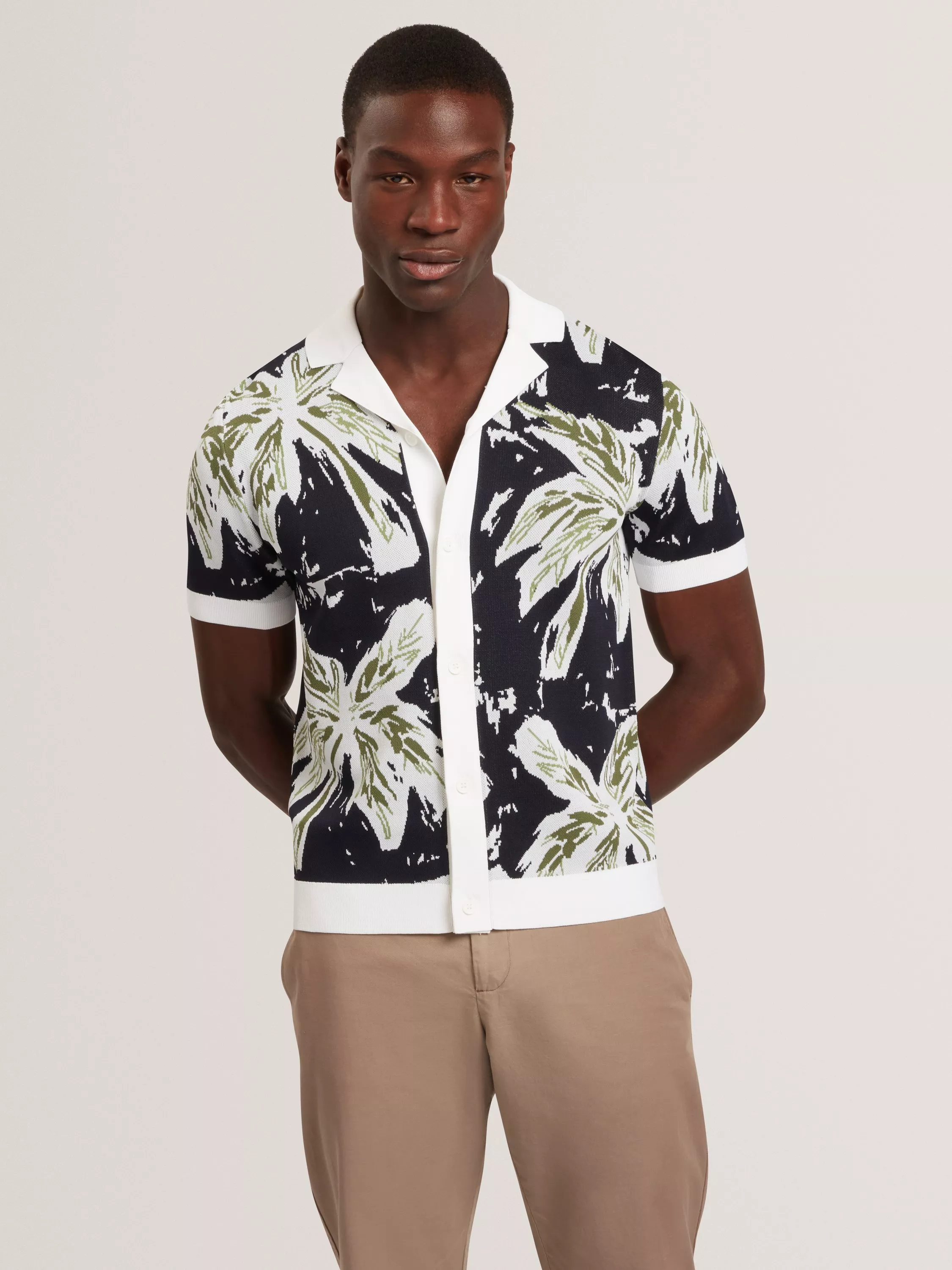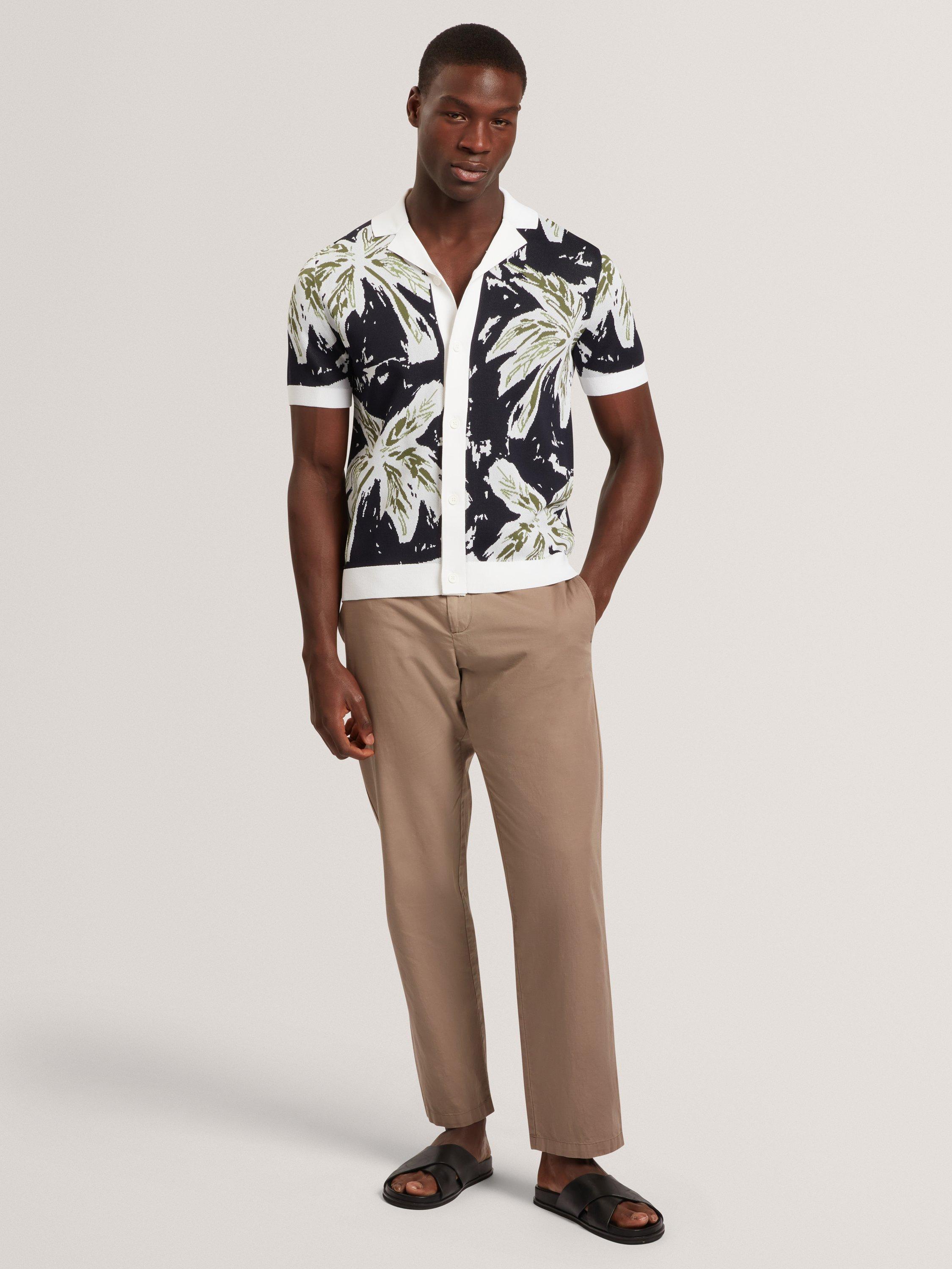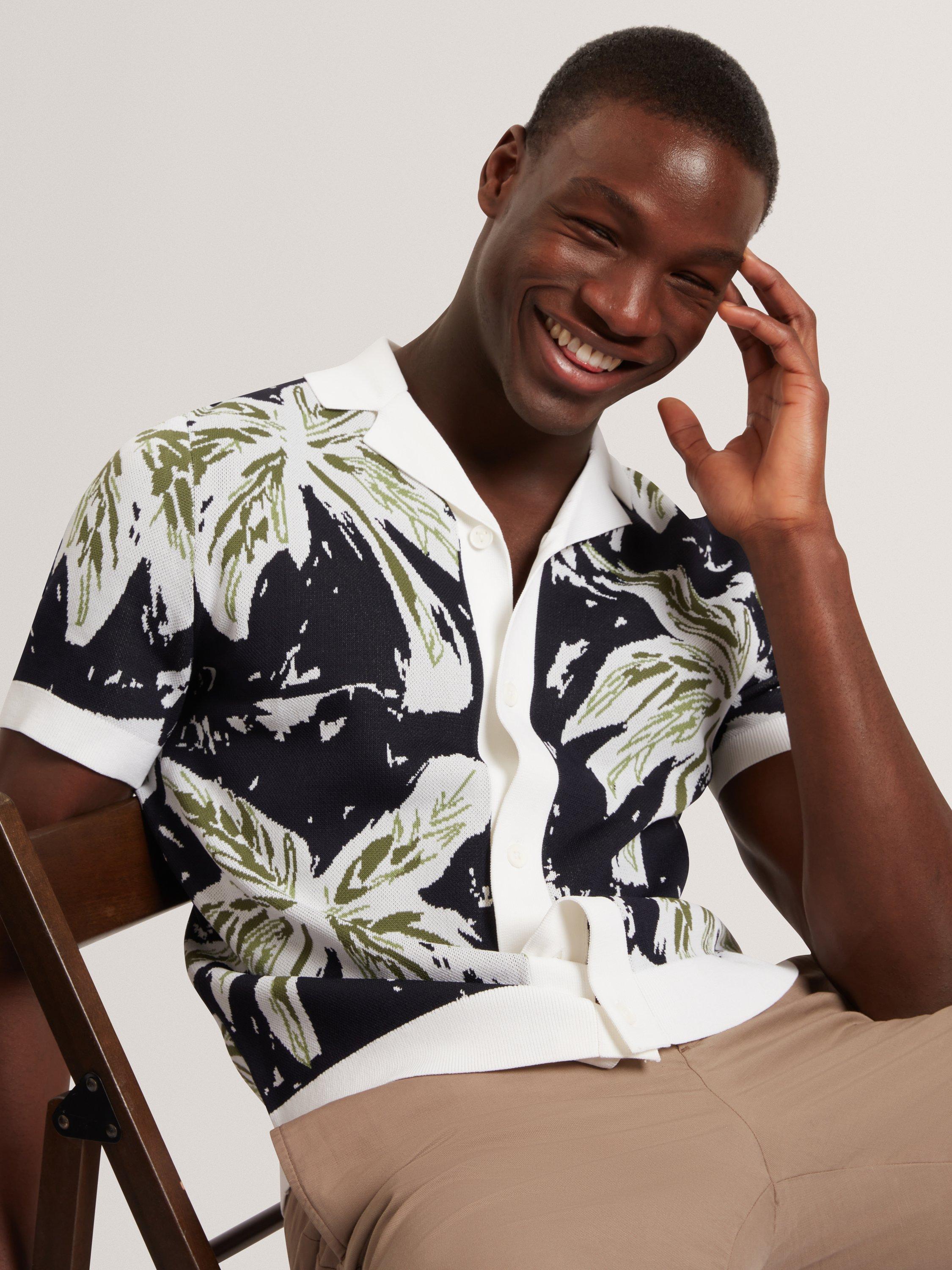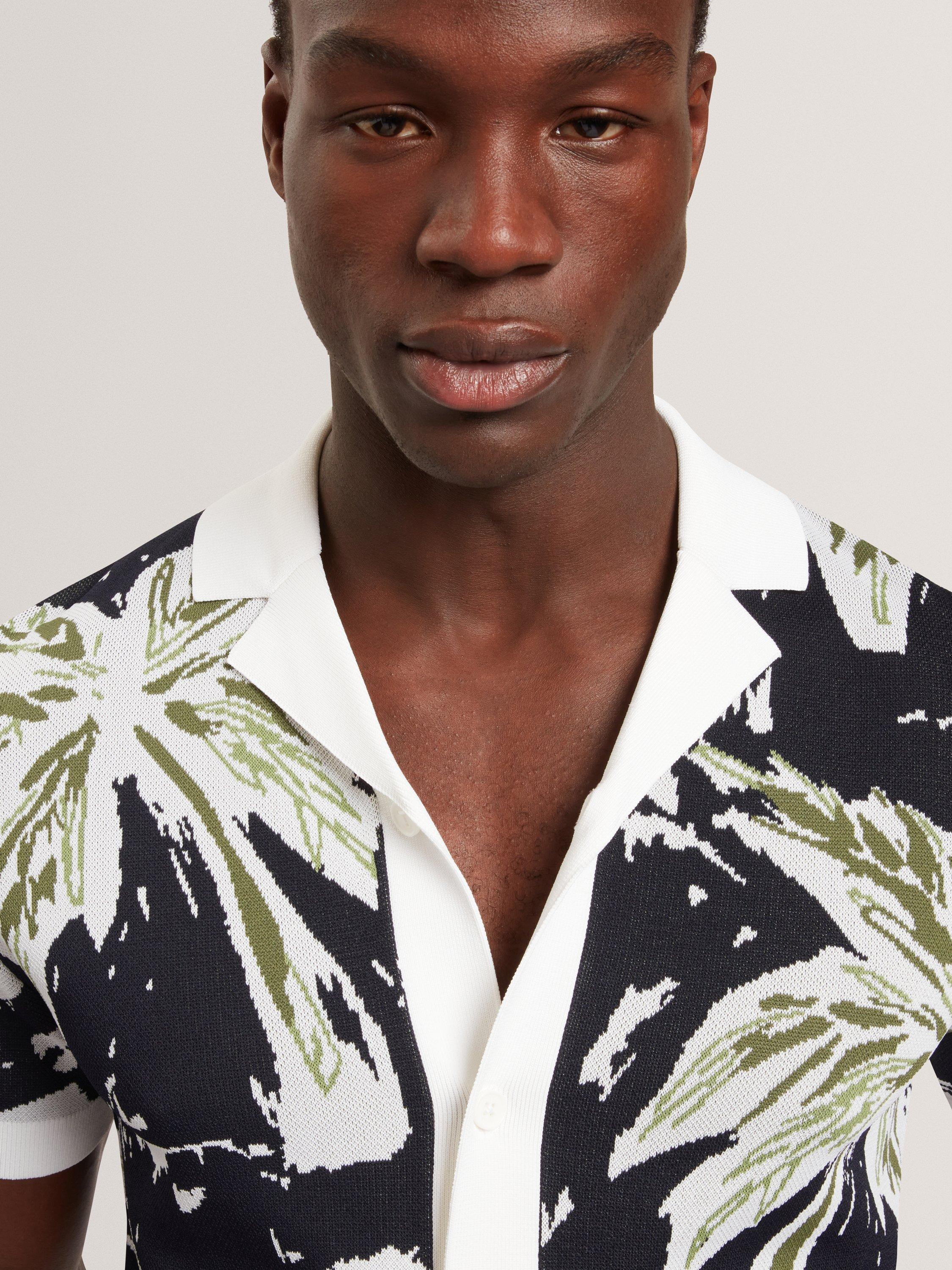 This short sleeve knitted leaf shirt adds sharp detail to your wardrobe. The regular fit keeps you comfortable in both formal and casual settings.