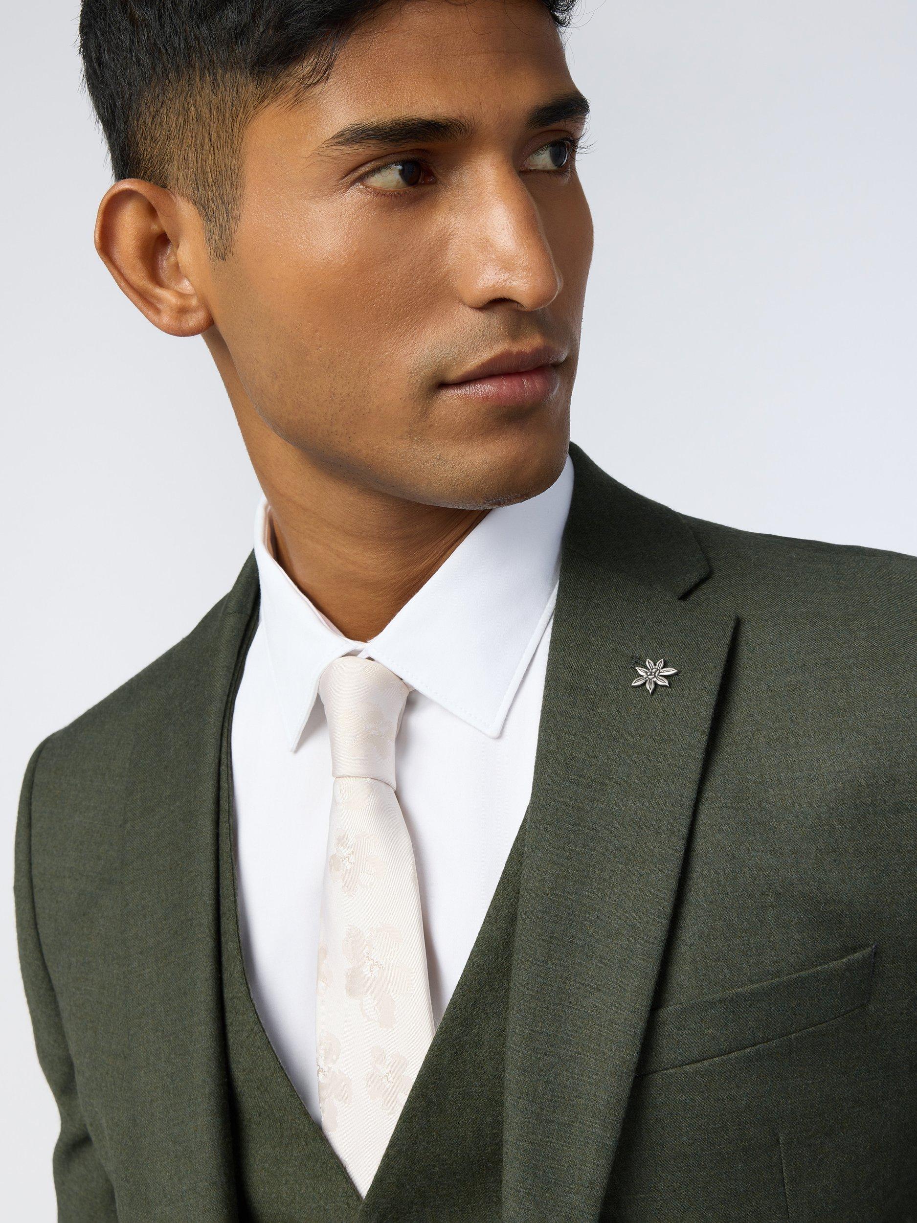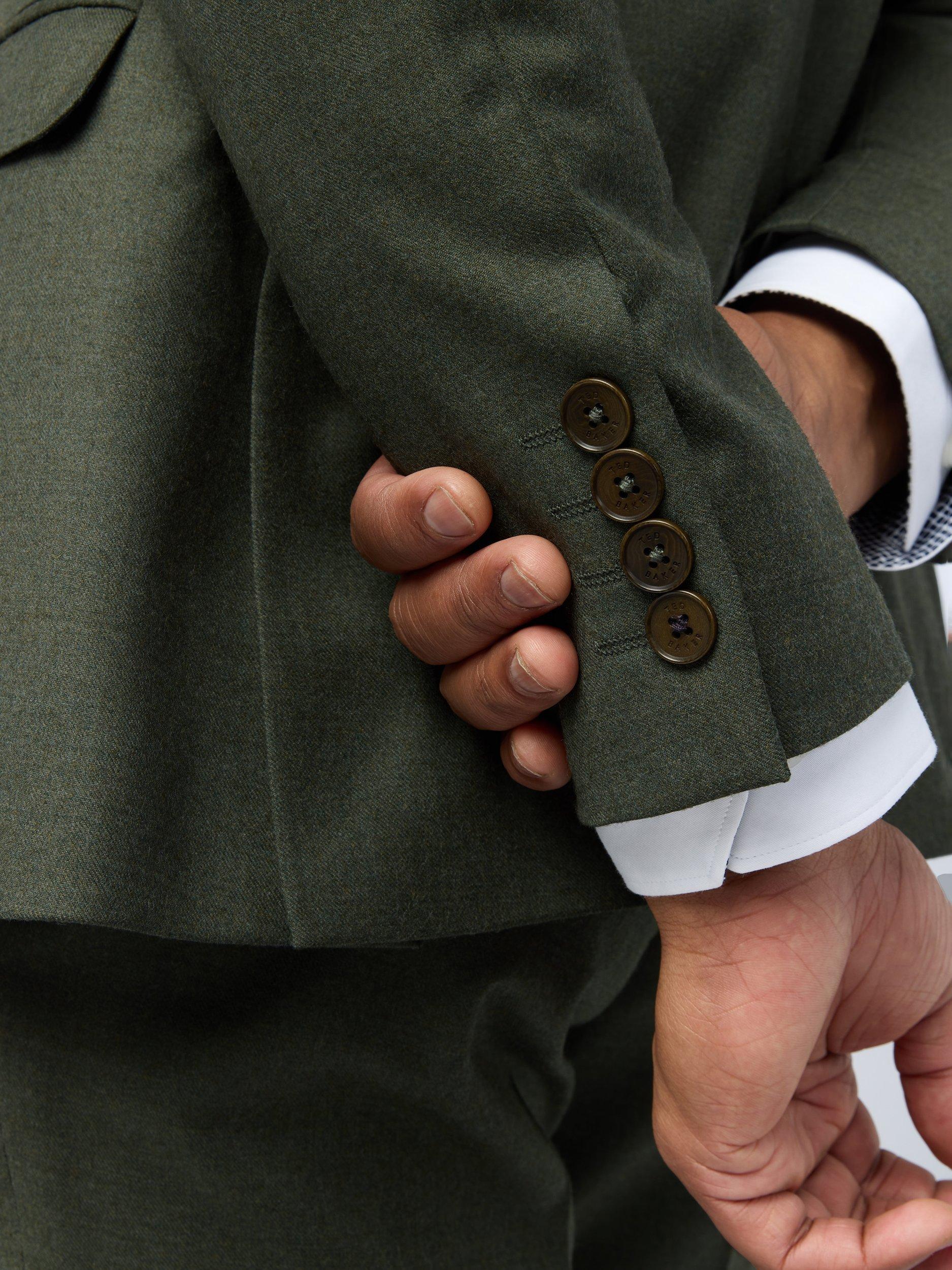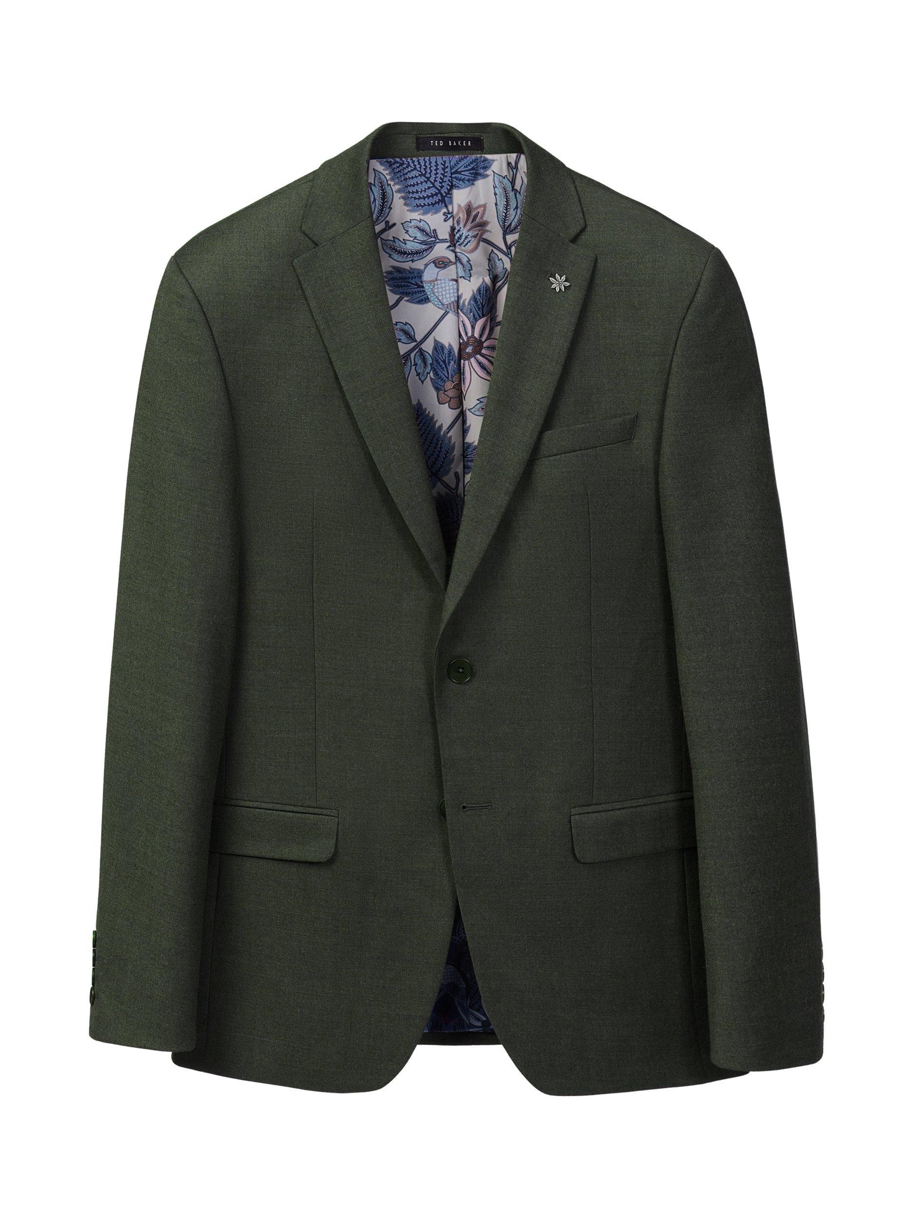 The Lear flannel suit jacket features a rich wool-blend with a hint of stretch for natural warmth and comfort. Soft touch flannel delivers a flattering drape across the body. Cut to a contemporary slim fit with an exclusive Ted Baker recycled bird print lining and premium curved facing, pair with the matching trousers and waistcoat for business meetings or a winter wedding. Finished with the signature flower lapel pin, the beautiful bird print lining also doubles up as a pocket square.