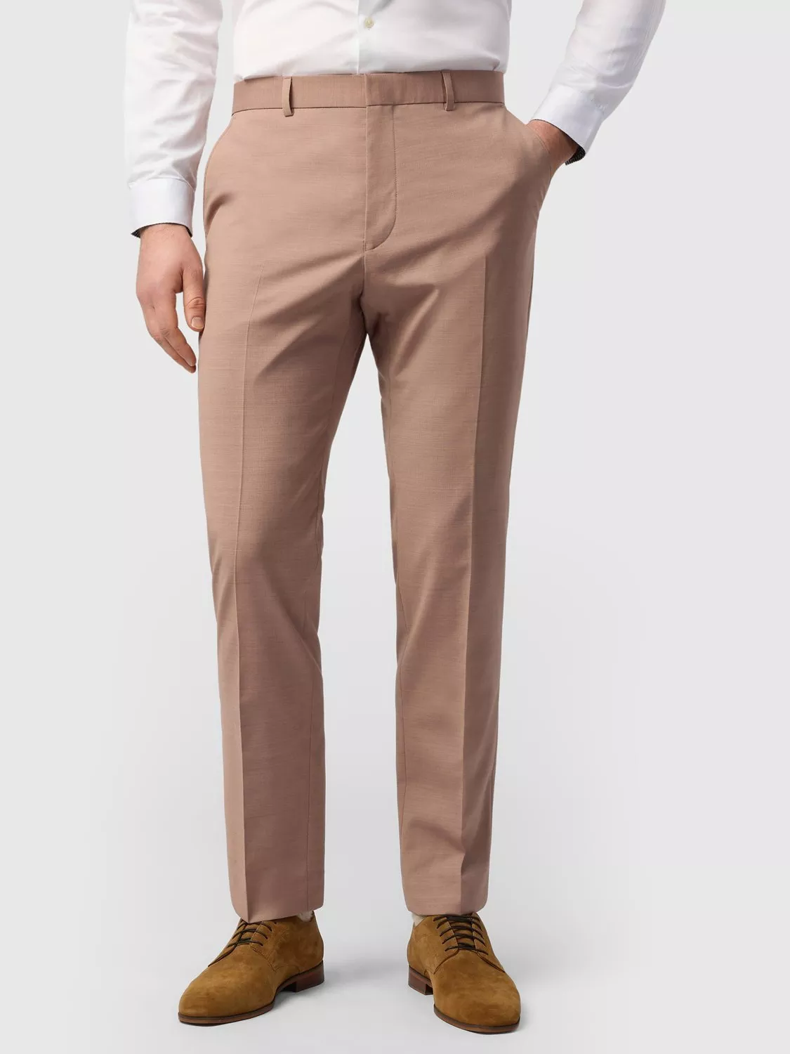 A pair of tailored trousers from Ted Baker. The lightweight panama weave wool blend offers comfort all day, while the slim fit sits close through the leg without feeling tight, so you stay comfortable through the day.