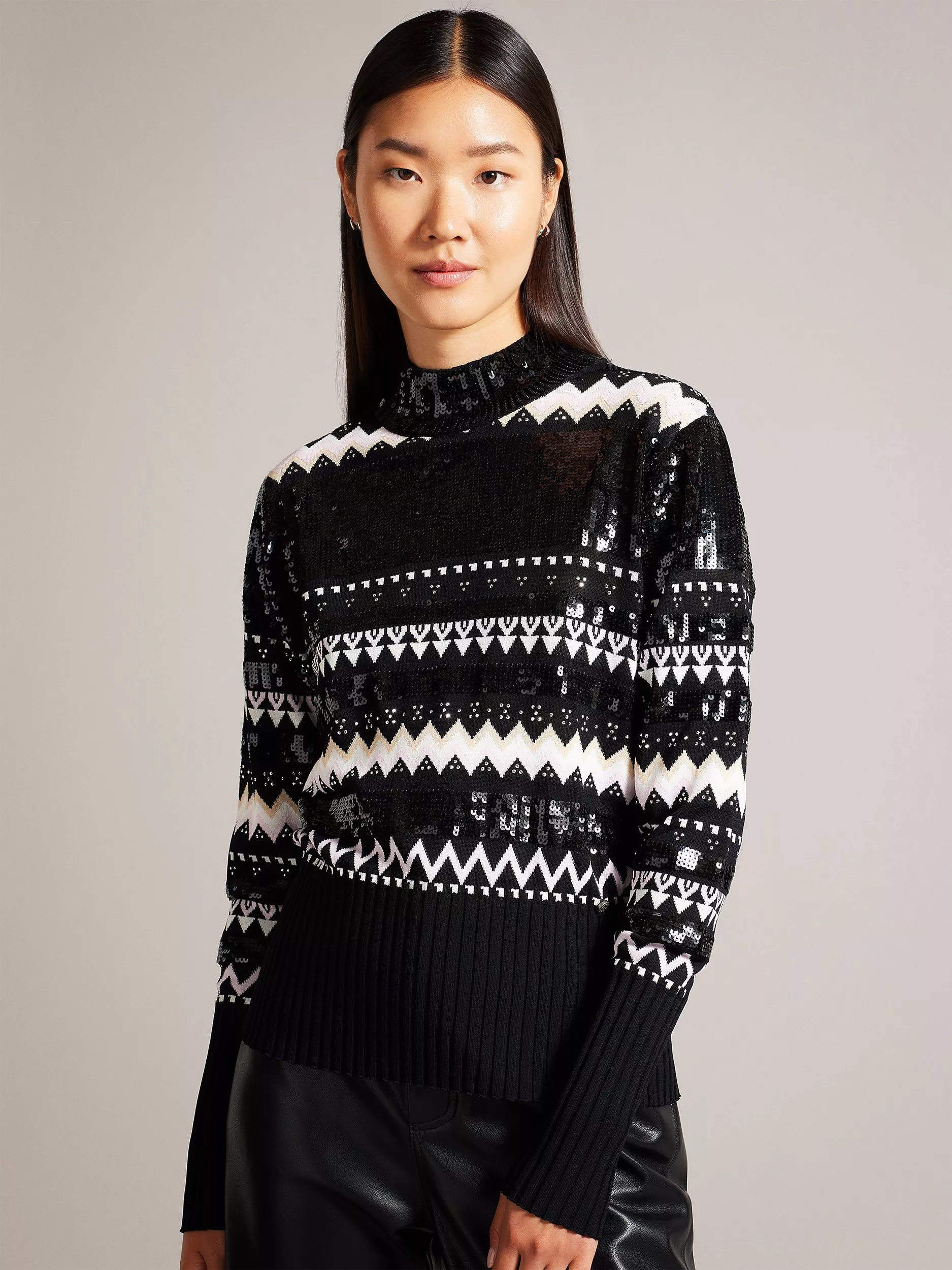 Sleek and elegant with its high neckline, this sweatshirt from Ted Baker is printed with timeless Fair Isle pattern and is made from a lightweight blended fabric.