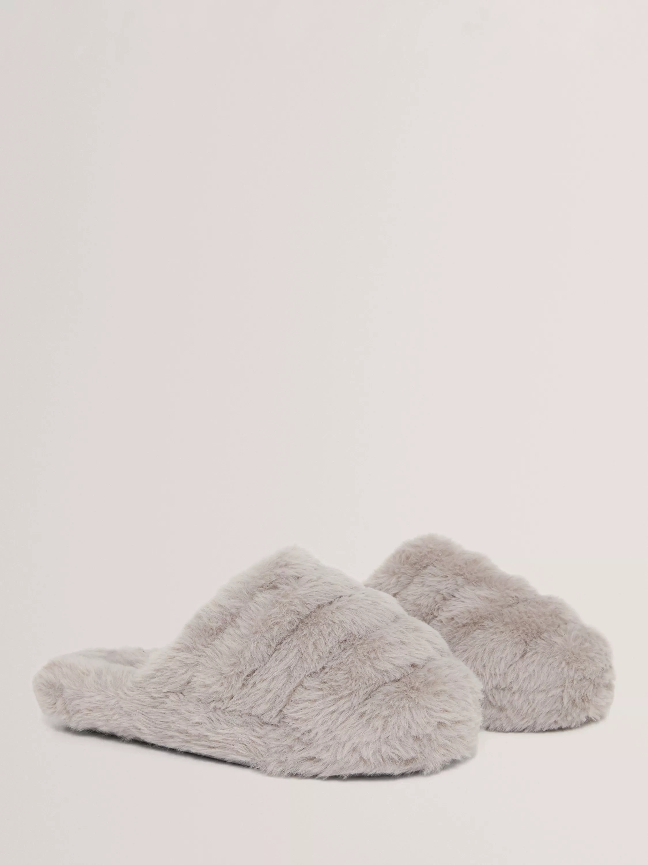 A pair of Ted Baker mules, crafted from ultra-soft faux fur. The textured finish and round toe deliver comfort and charm, while the flat sole keeps you ready for whatever your day brings at home.