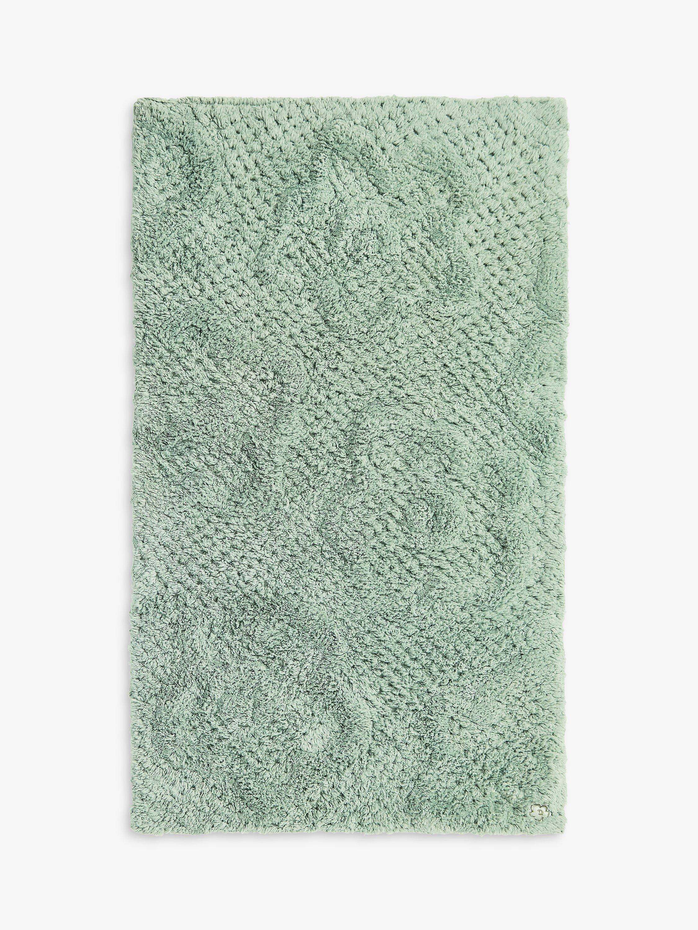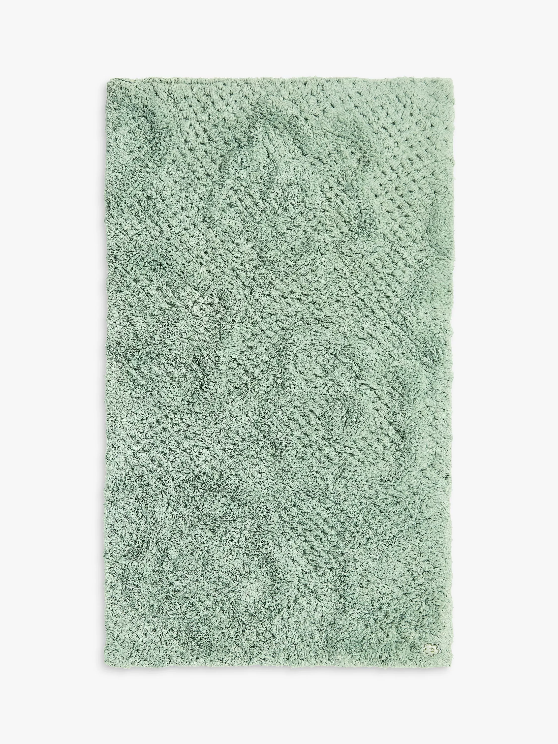 This tufted bath mat features a subtle oversized Magnolia floral pattern, woven into the textured cotton ground.