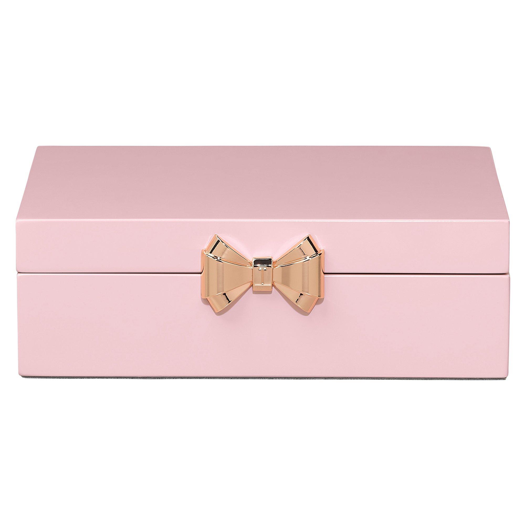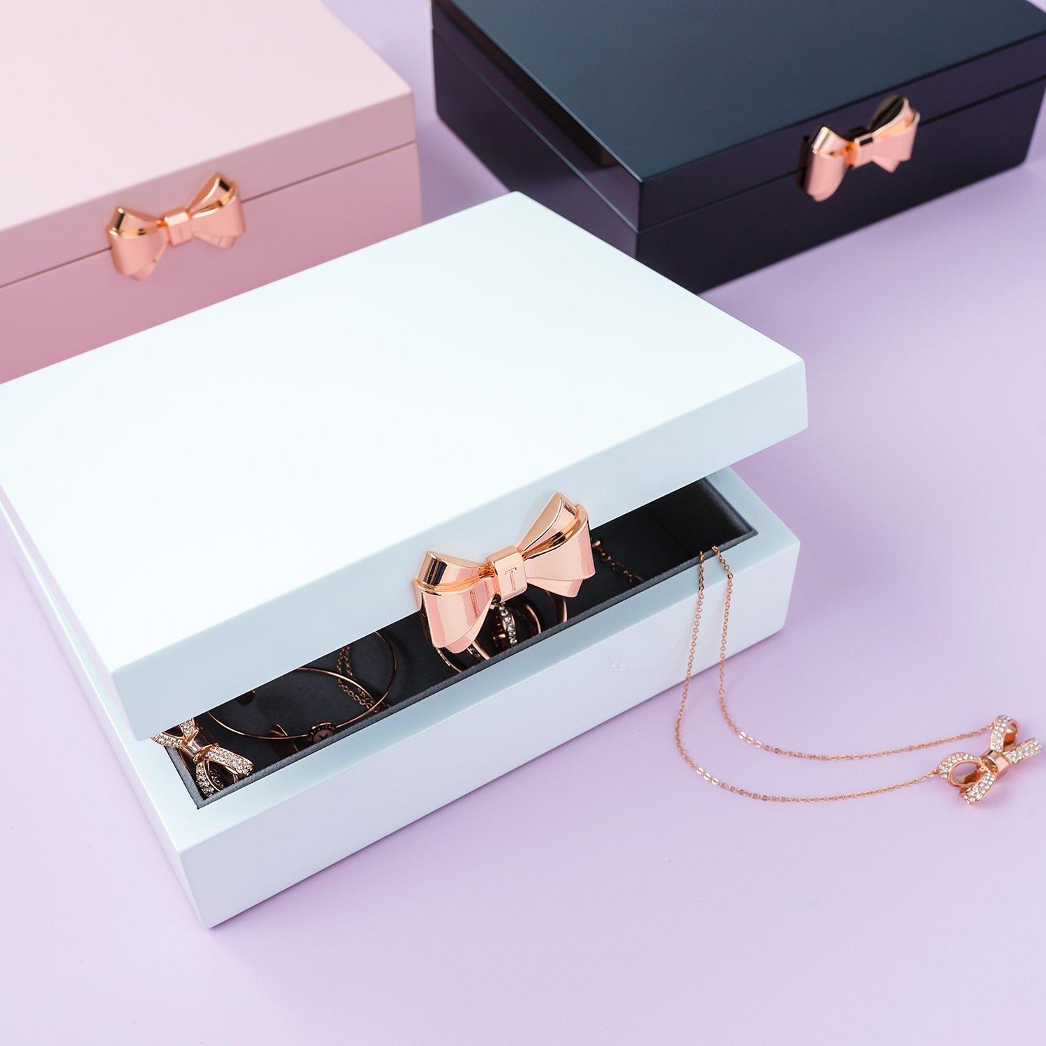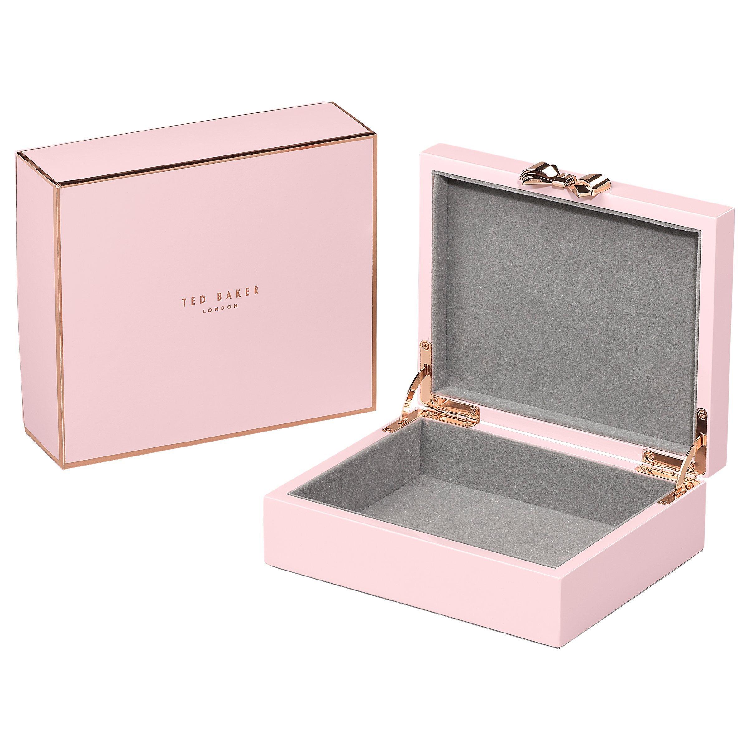 Hand lacquered, the sophisticated storage piece features a spacious interior with soft grey suedette lining, ideal for a host of trinkets and accessories. The premium storage accessory features soft close hinges, a rose gold bow detail with a branded 'T' at the close, and an embossed Ted Baker logo can be found on the reverse.