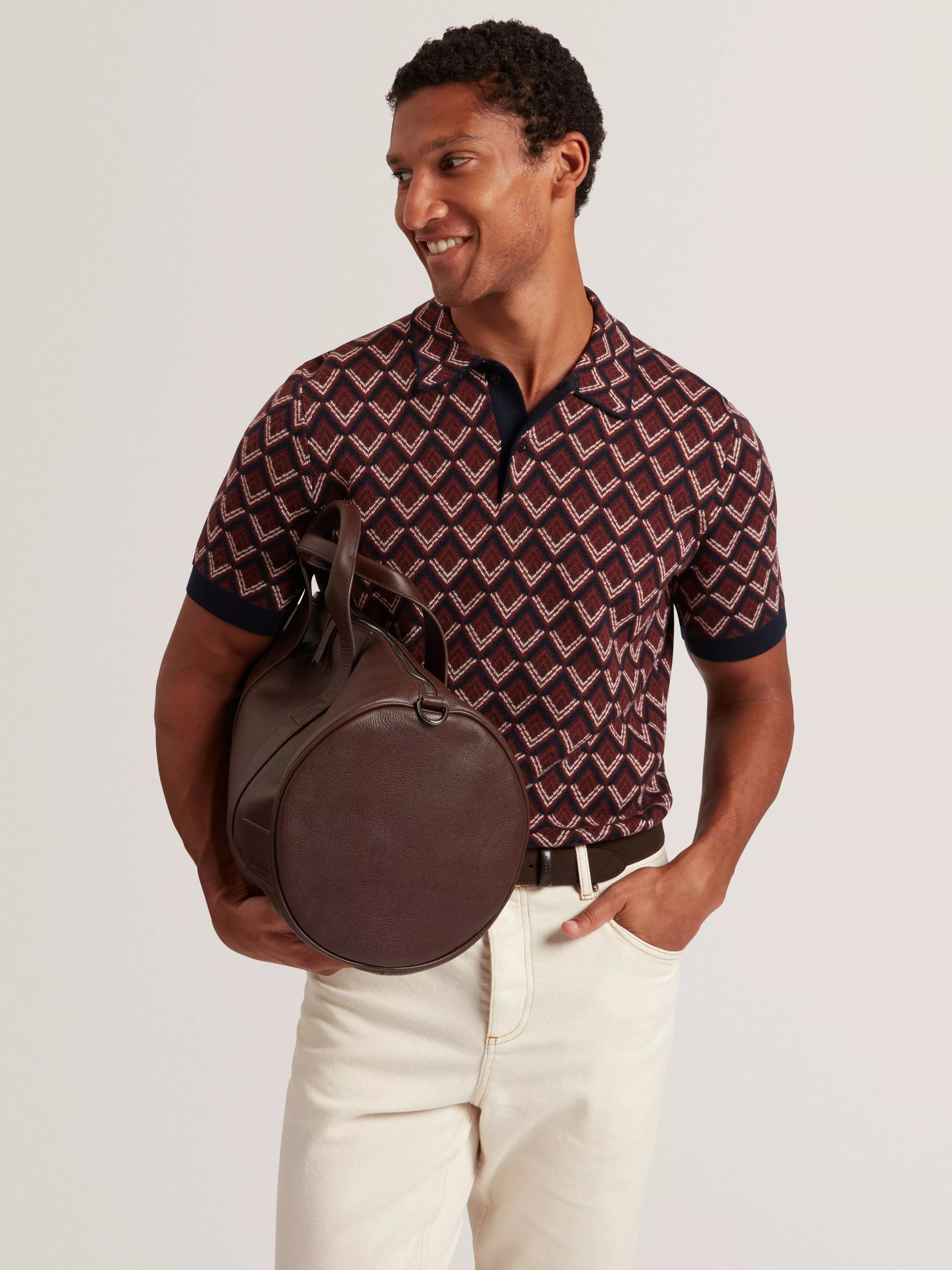 Bring a smart edge to your outfit with this fine-knit jersey cardigan. Its geometric pattern adds interest, while the collared design delivers both comfort and confidence for your day. A clever piece for layering in any setting.