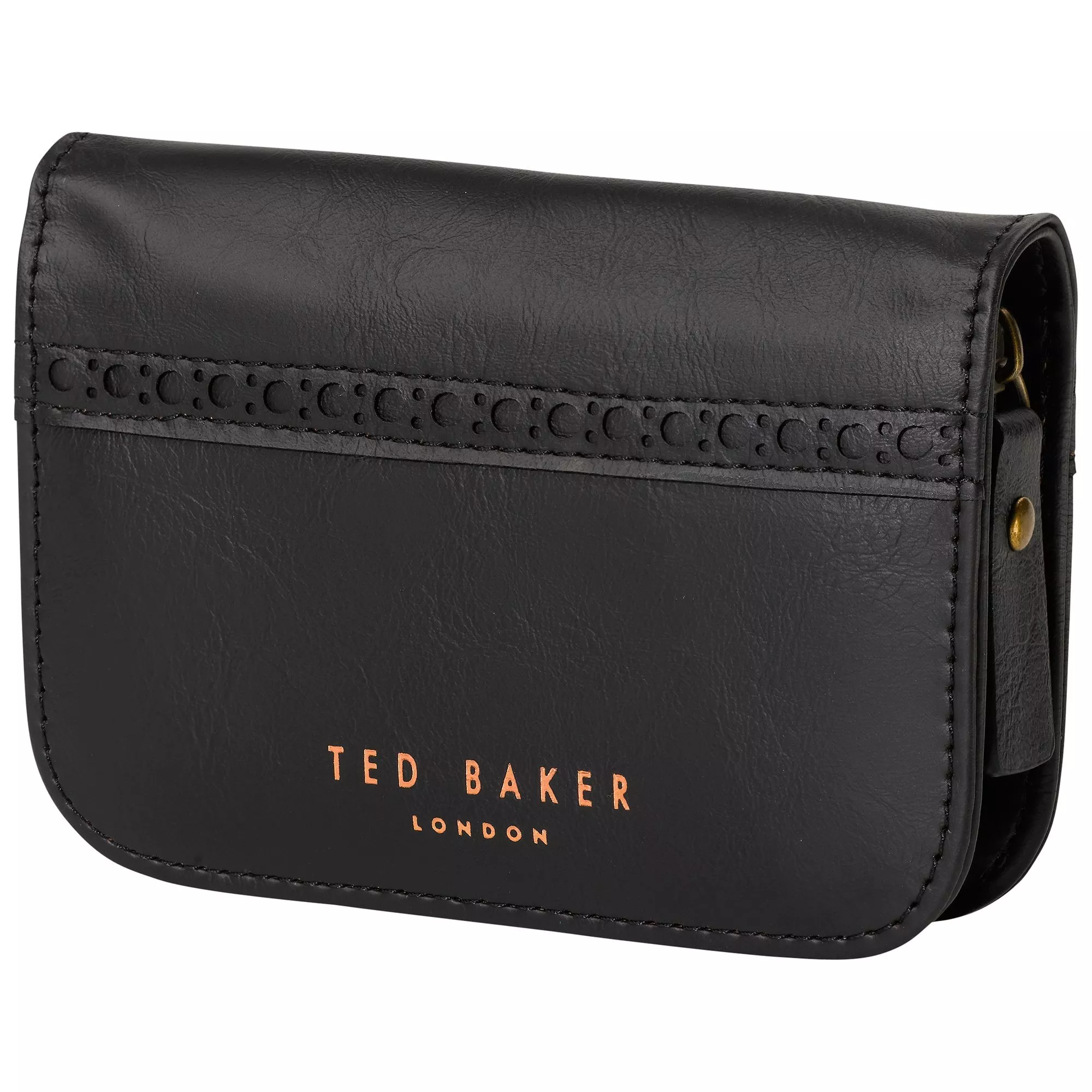 Give a show of hands for Ted Baker's black brogue faux-leather manicure set. Includes stainless steel scissors, nail clippers, nail file, cuticle pusher and tweezers, secured with zip fastener.