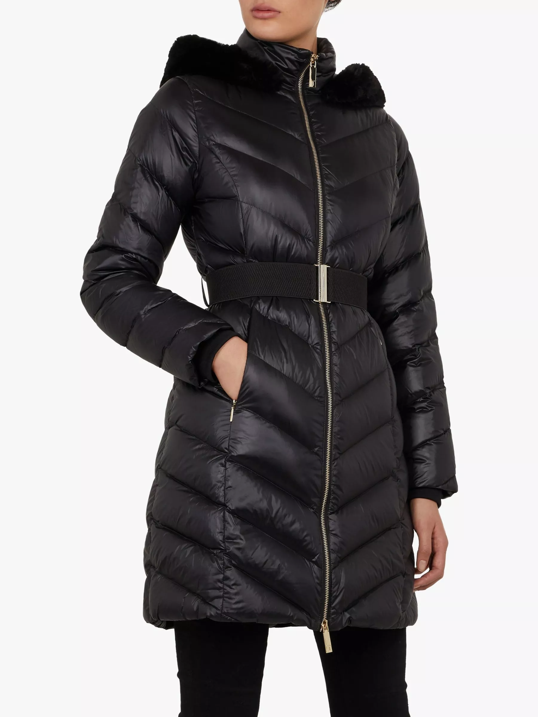 This Millsa puffer jacket from Ted Baker is sure to keep you cosy and warm on days when the temperature has dropped. Featuring a chevron design and a faux fur collar that add a stylish twist on a practical piece, the Millsa is equipped with a belted waist that ensures a form-flattering fit.