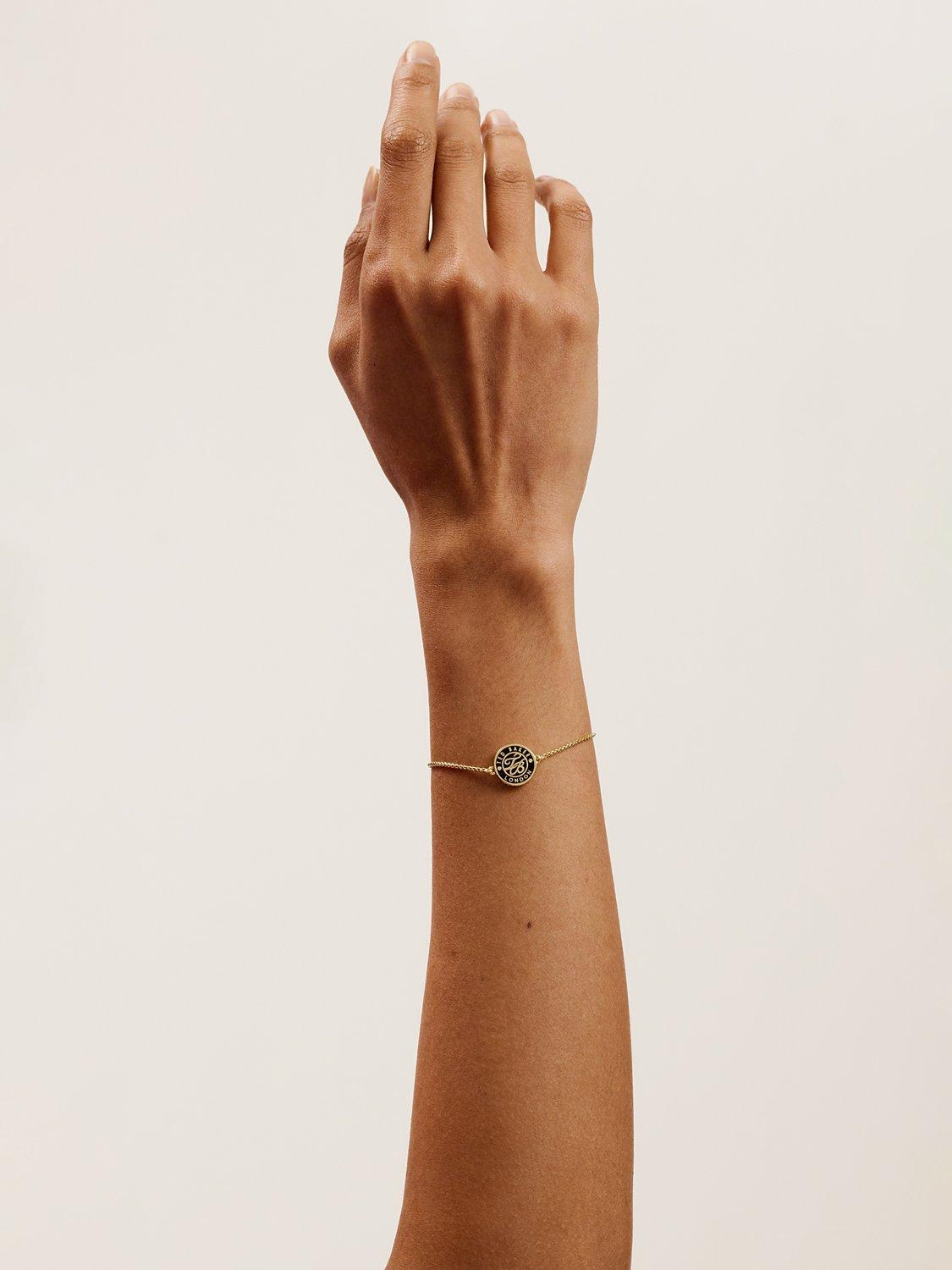 Spell out your style with Ted Baker's Monella Monogram Button Bracelet. The charm is a bespoke metal disc, featuring a logo design finished in toned plating and contrasting enamel. The disc sits in the centre of an adjustable slider chain.
