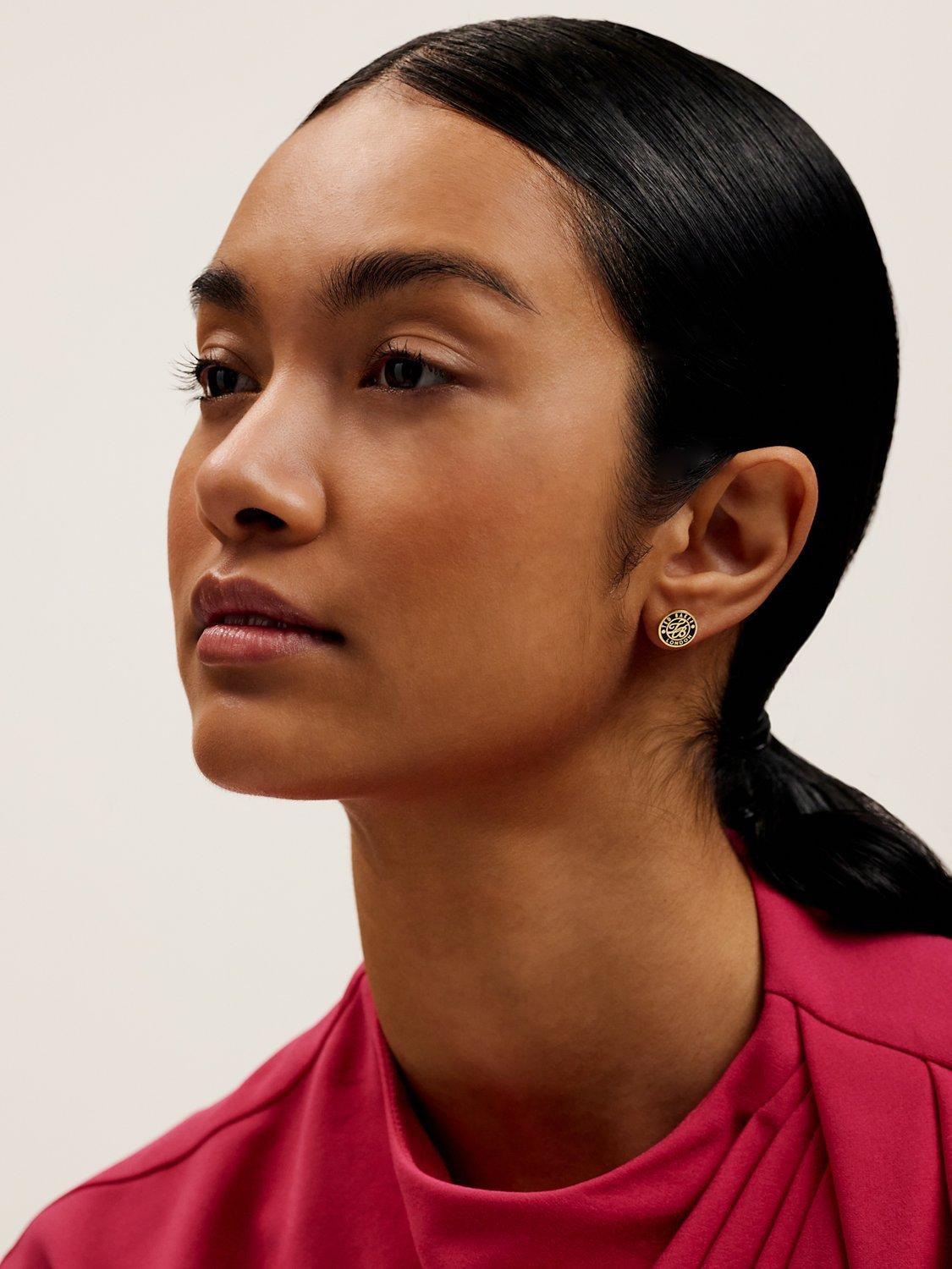 Spell out your style with Ted Baker's Monella Monogram Button Stud Earrings. A bespoke metal disc, featuring a logo design. The earrings are suitable for pierced ears only.