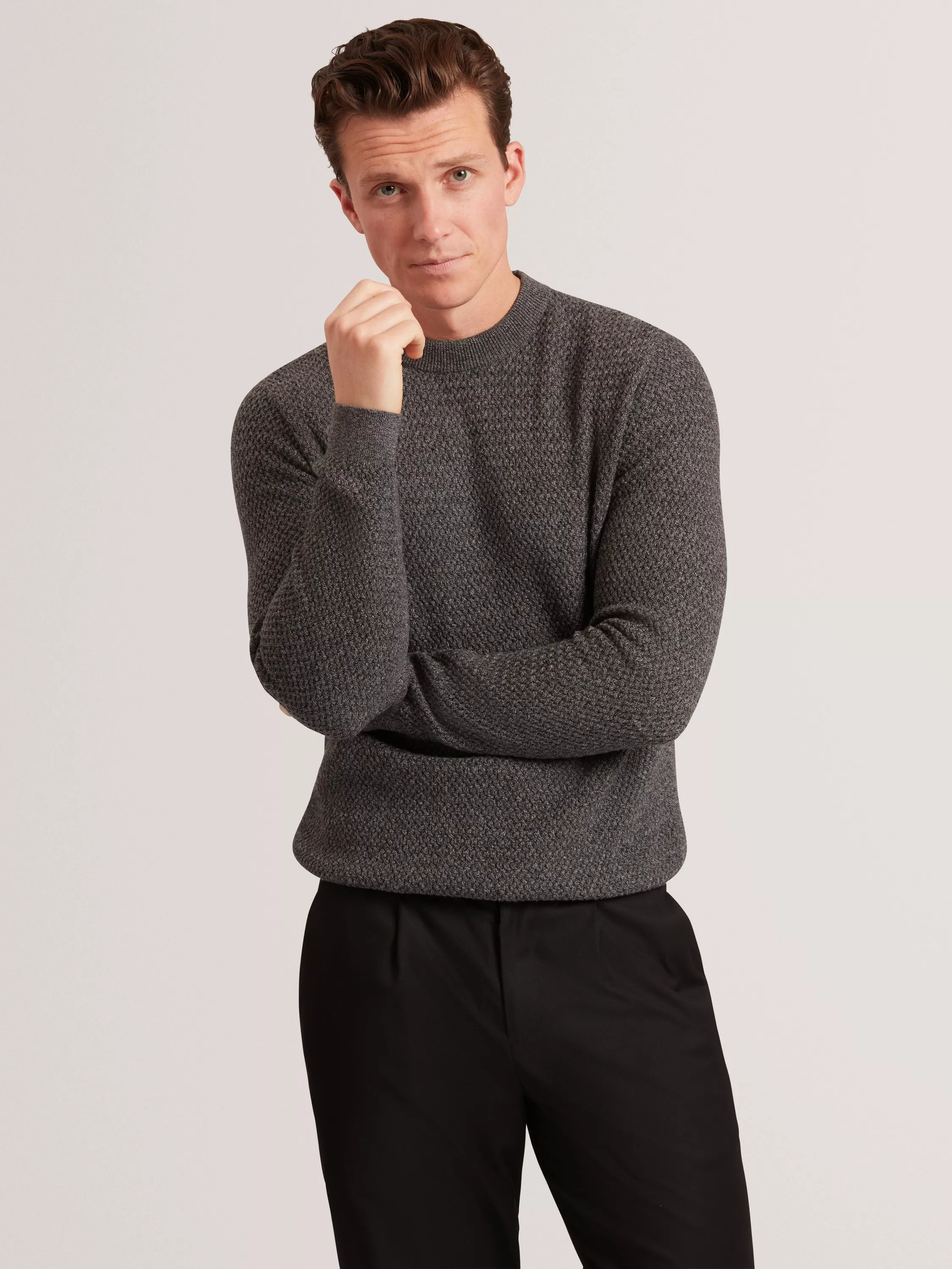 Keeping you comfortable and ready for anything, this crew neck knit from Ted Baker is rendered from a lightweight cotton blend for year-round appeal.