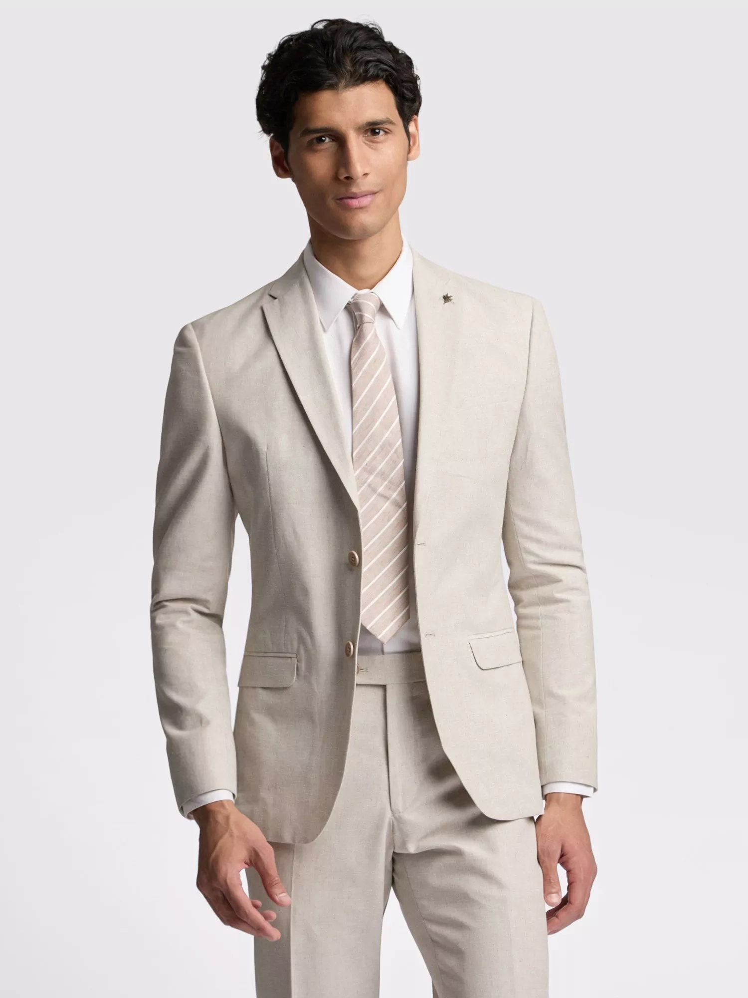 Update your formal wardrobe with the latest suit from Ted Baker. The slim fit Morris suit jacket is crafted in a breathable linen and cotton blend which is perfect for summer occasions.