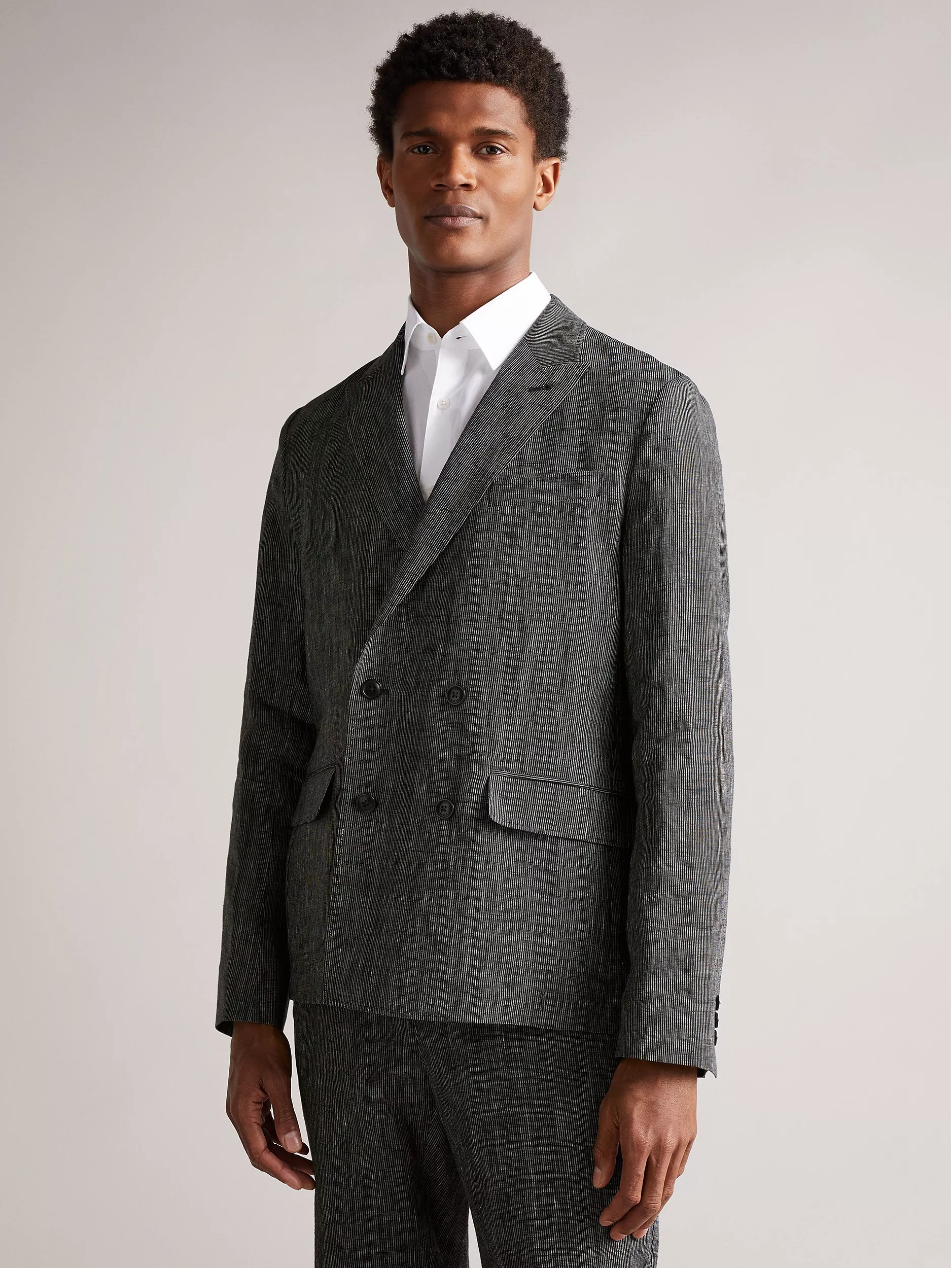 Ted BakerNaver Striped Linen Double Breasted Blazer, Black