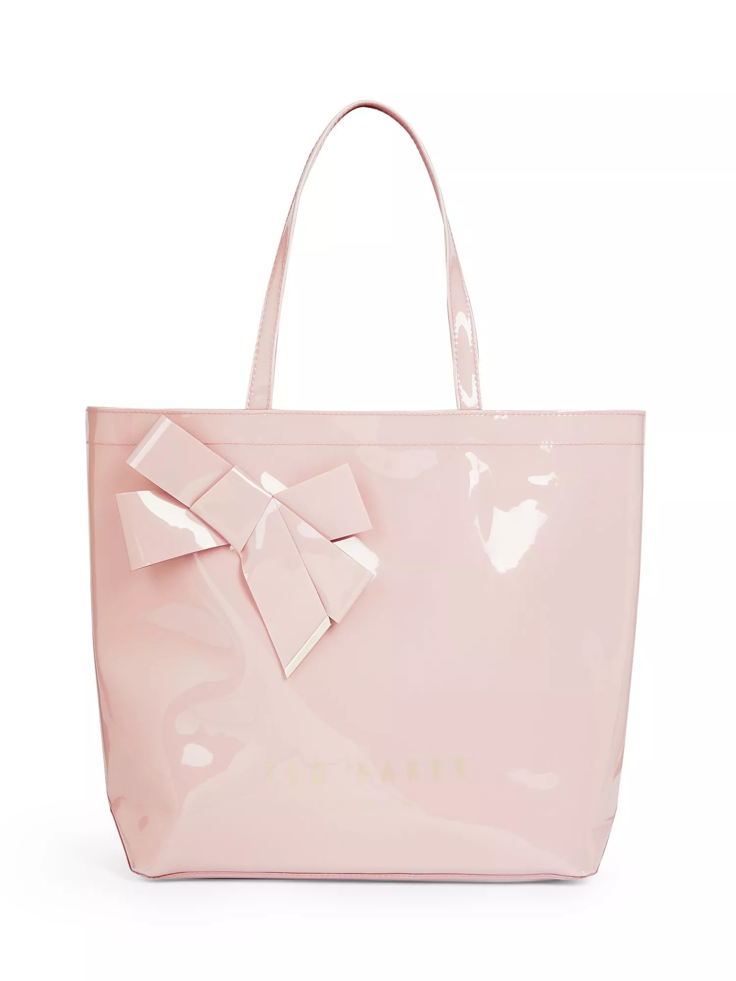 With Ted Baker's signature branding printed on a high-shine vinyl material and finished with a knot bow detail, this sweet bag will be the one you reach for time after time.