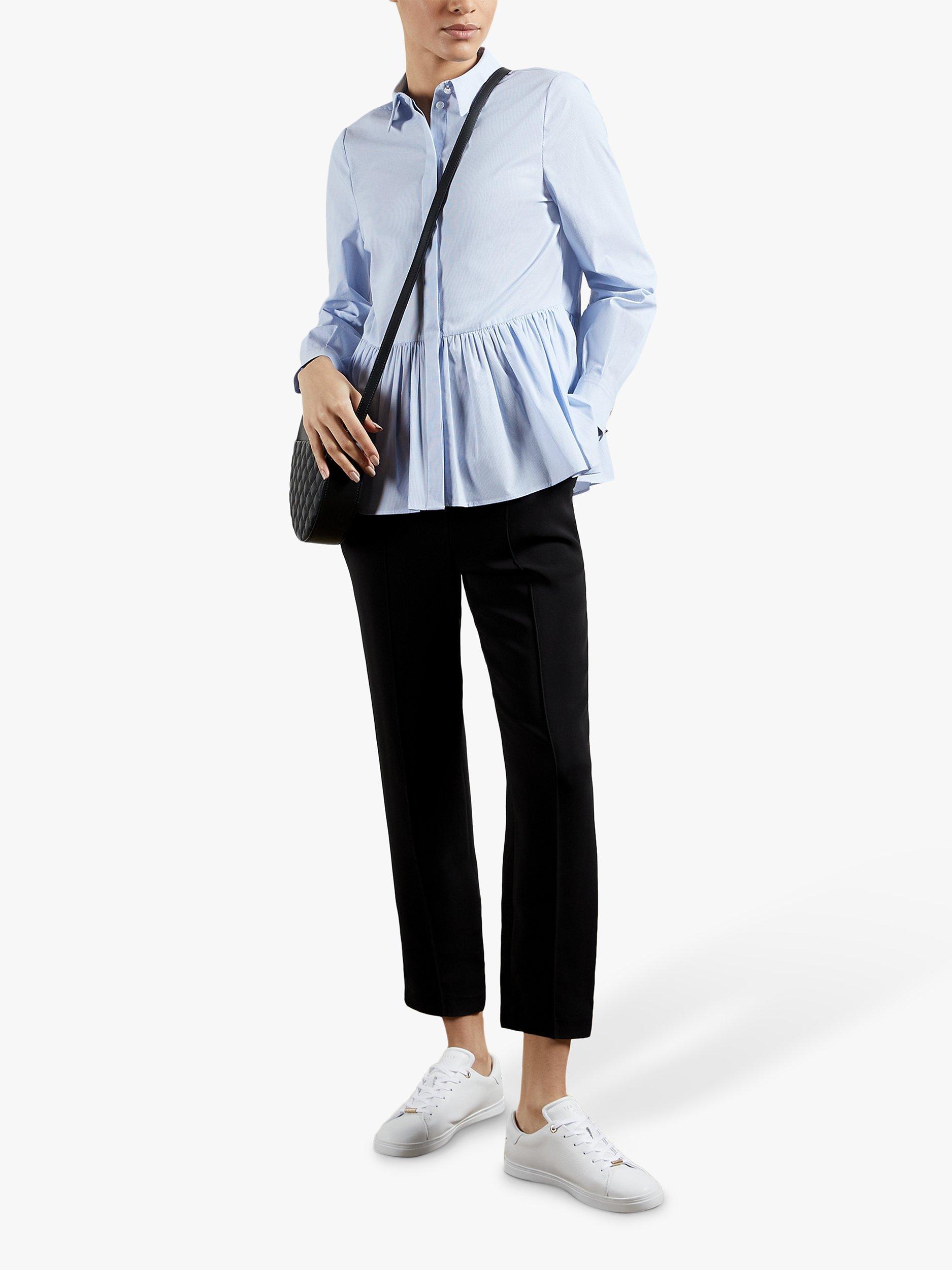 With a flared, peplum hem, this top from Ted Baker is plain for easy mixing and matching.