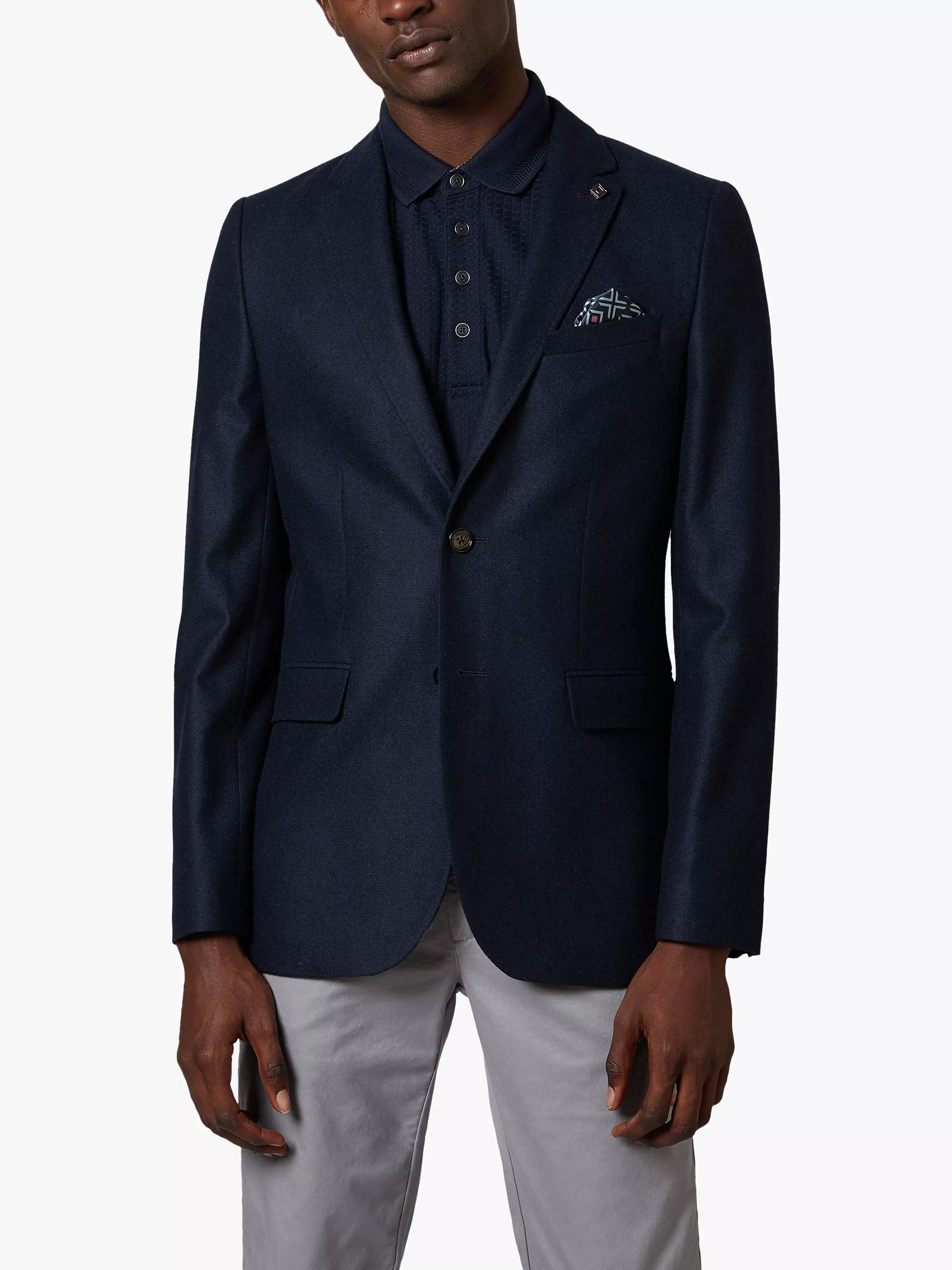 A more pared-back take on the classic blazer, the Padstoe jacket from Ted Baker is made from a warm wool blend suiting. Cut to a regular fit, it has smart lapels, flap pockets to the front as well as a welt pocket to the left chest with a colourful trim that matches the print lining.