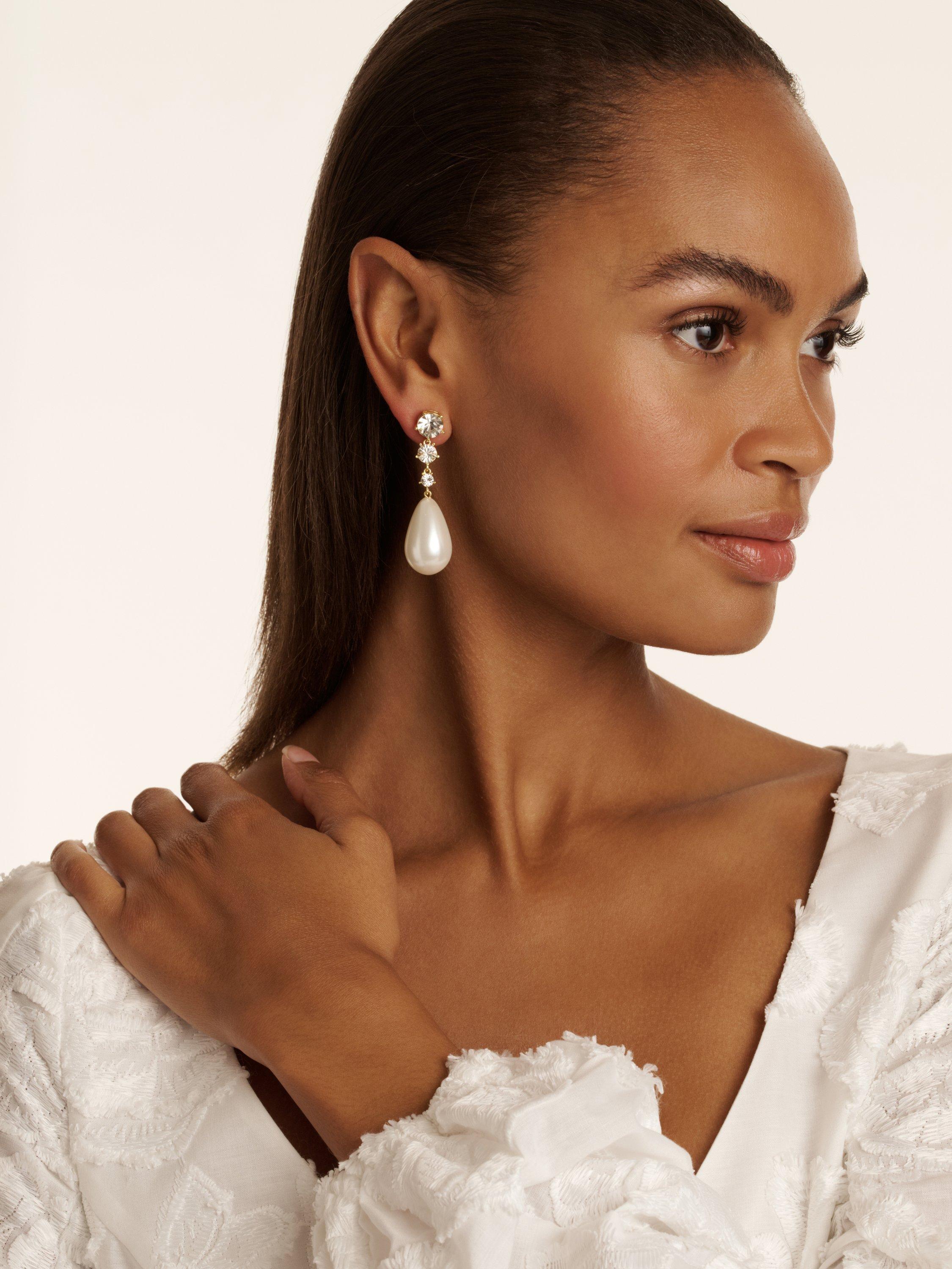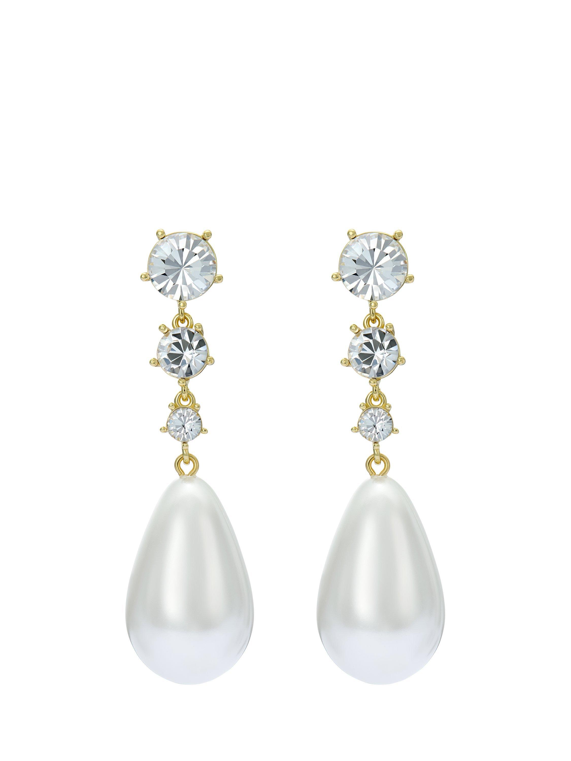 Indulge in luxury with Ted Baker's Pearsti statement earrings. These earrings feature a large pear-shaped faux pearl, elegantly suspended from a delicate row of fine European crystals.