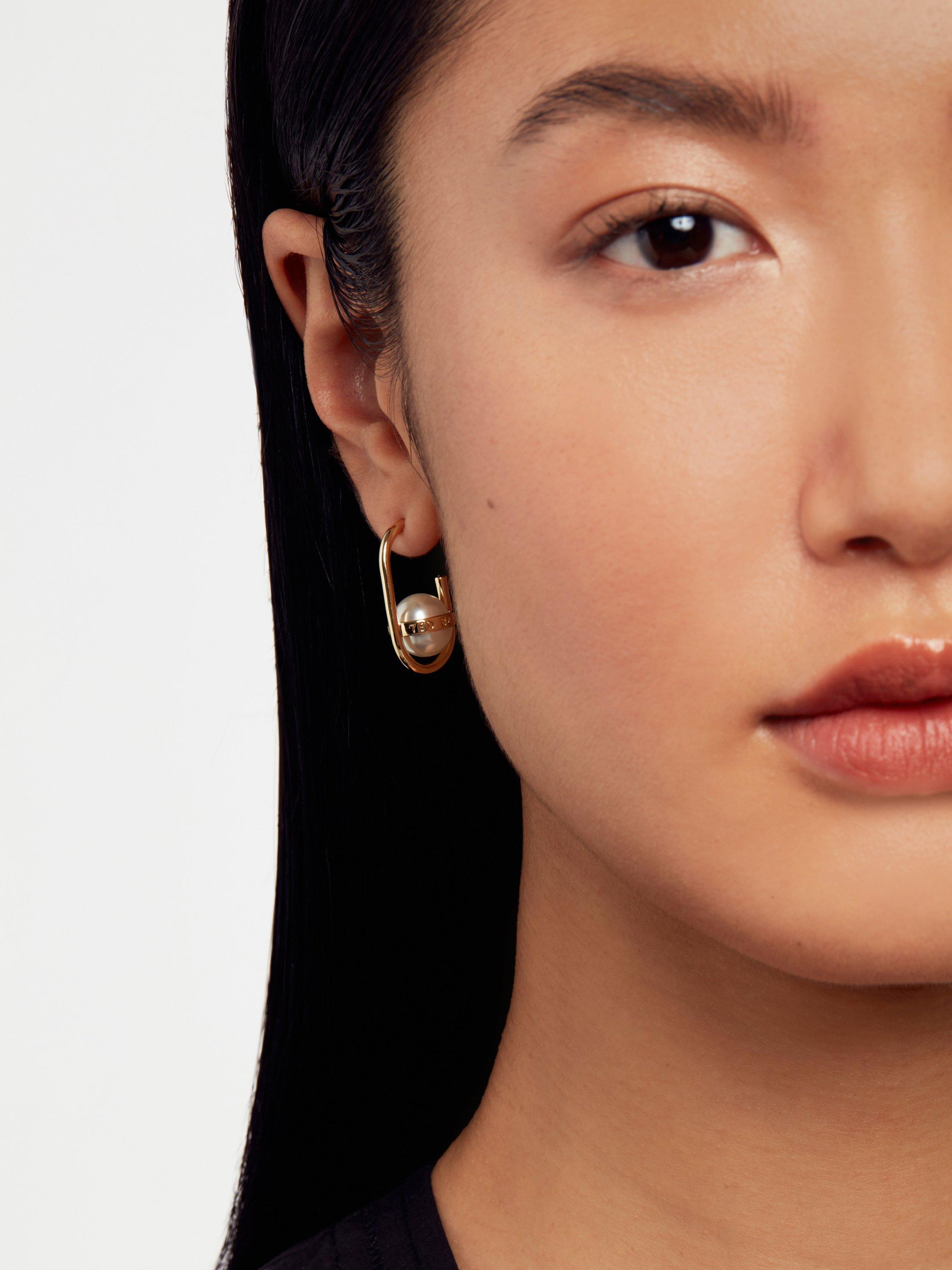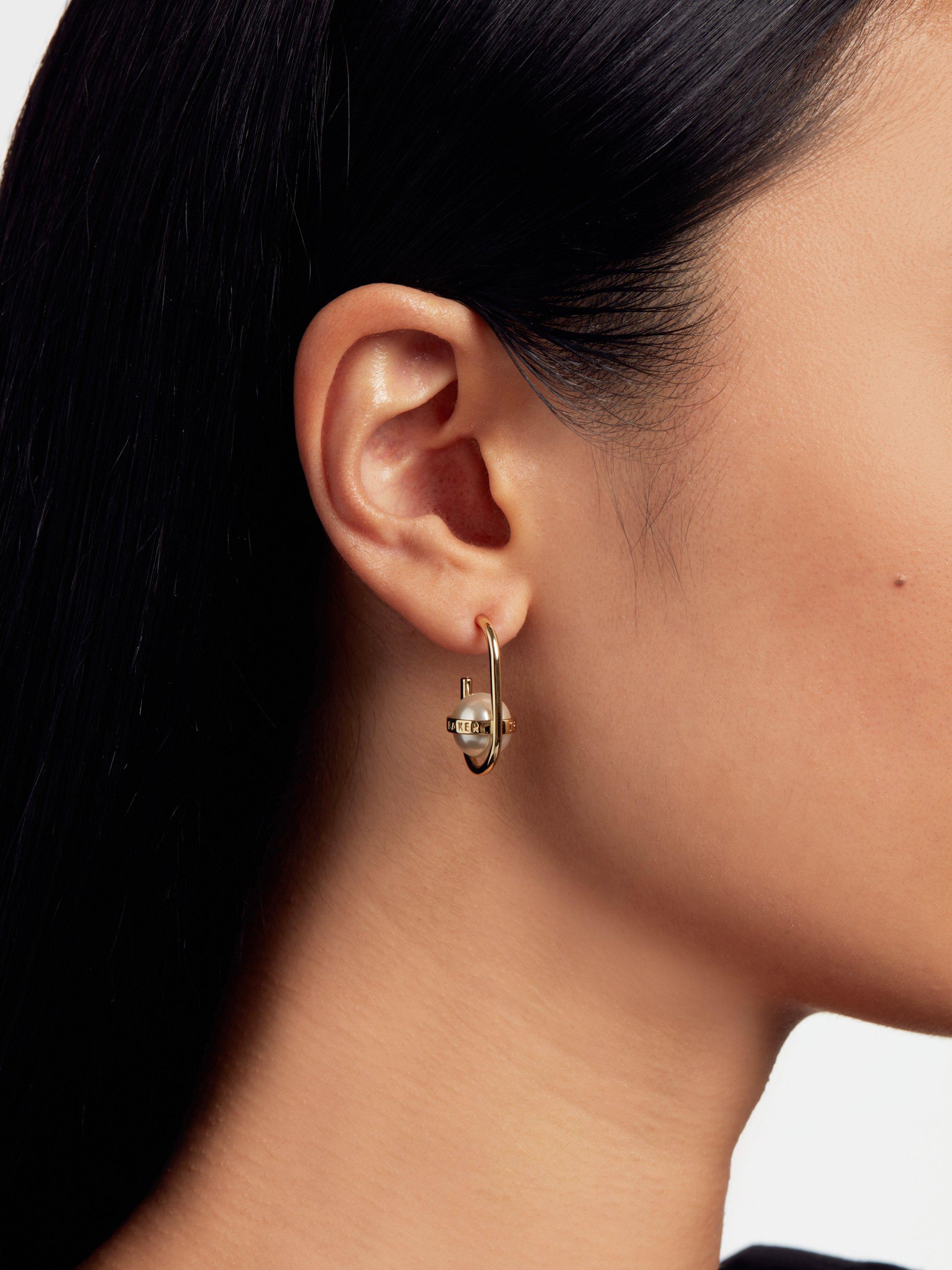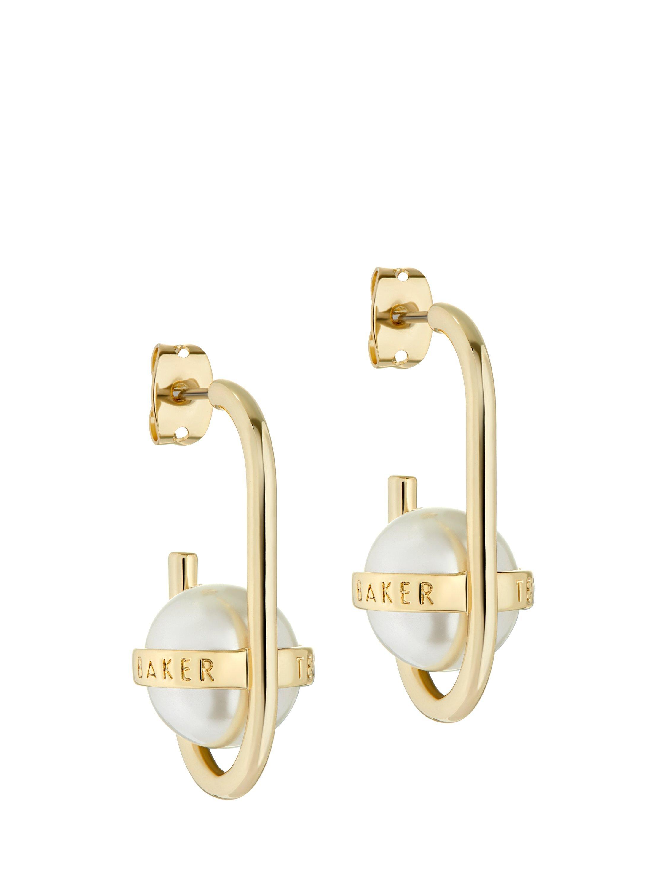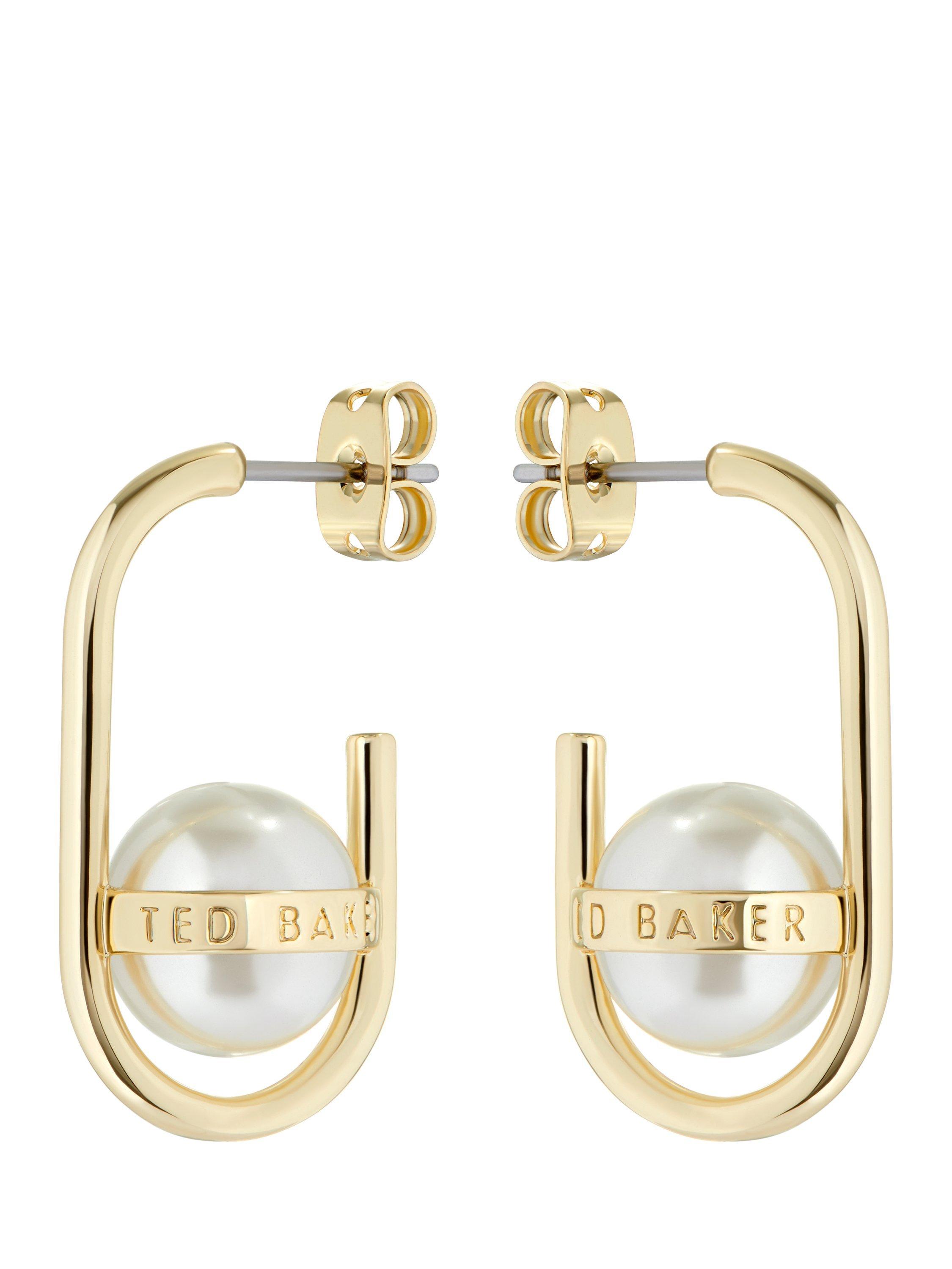 These elegant hoops feature a faux pearl suspended at the base of a sleek gold-tone hoop, creating a sophisticated look. Designed with hypoallergenic posts for comfortable all-day wear, they come packaged in a Ted Baker branded gift box making them a perfect gift or a chic addition to your jewellery collection.