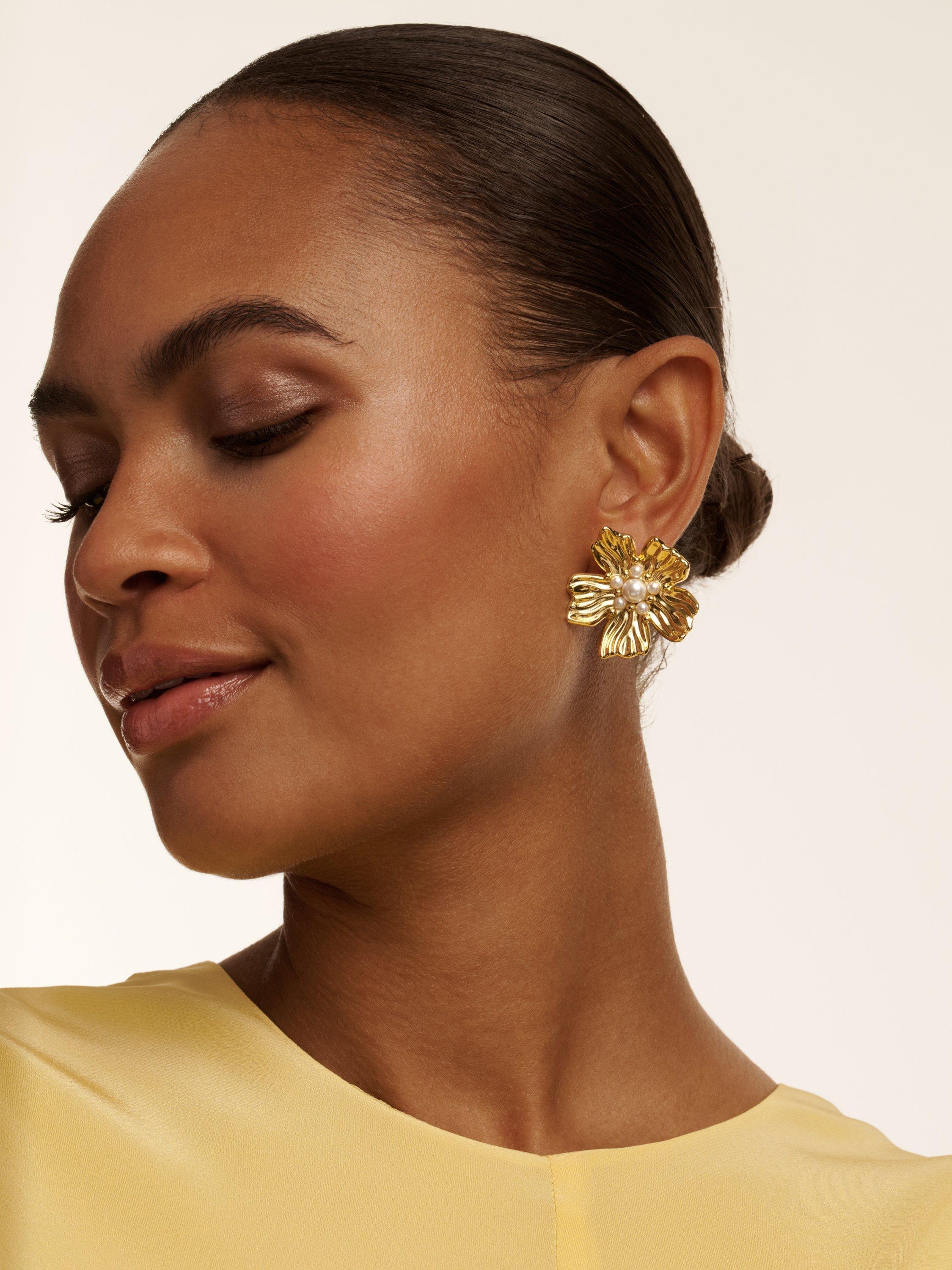 Make a Spring statement with Ted Baker's Petarie flower statement studs. These sculpted metal flowers are embellished with faux pearls and finished in gold-tone plating. They feature large stud backs for a secure and comfortable fit and are presented in an elegant Ted Baker branded gift box.