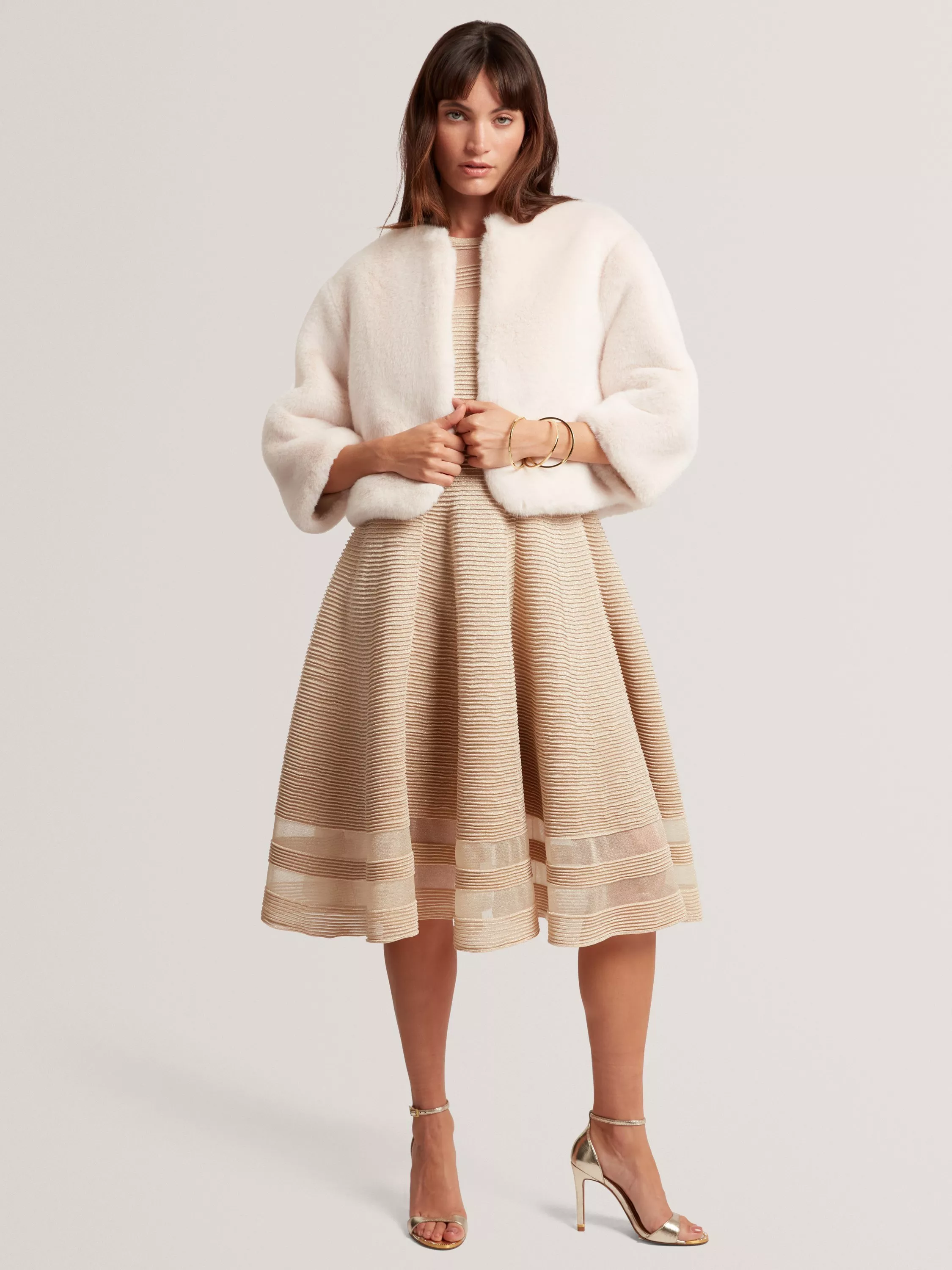 Stay warm with this cropped faux fur jacket from Ted Baker, designed for comfort and flair on winter days. The regular fit and long sleeves offer reliable coverage, making it a practical pick for your occasion needs.